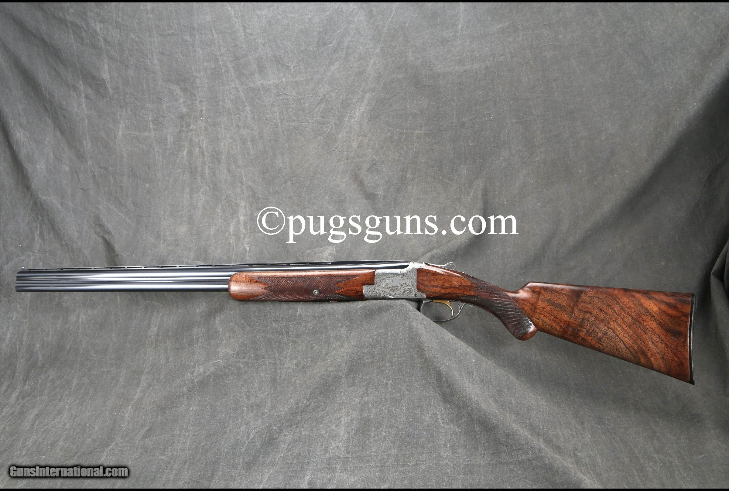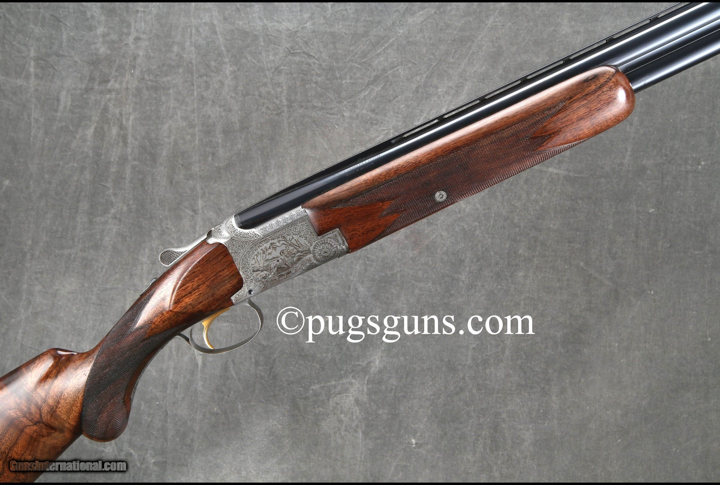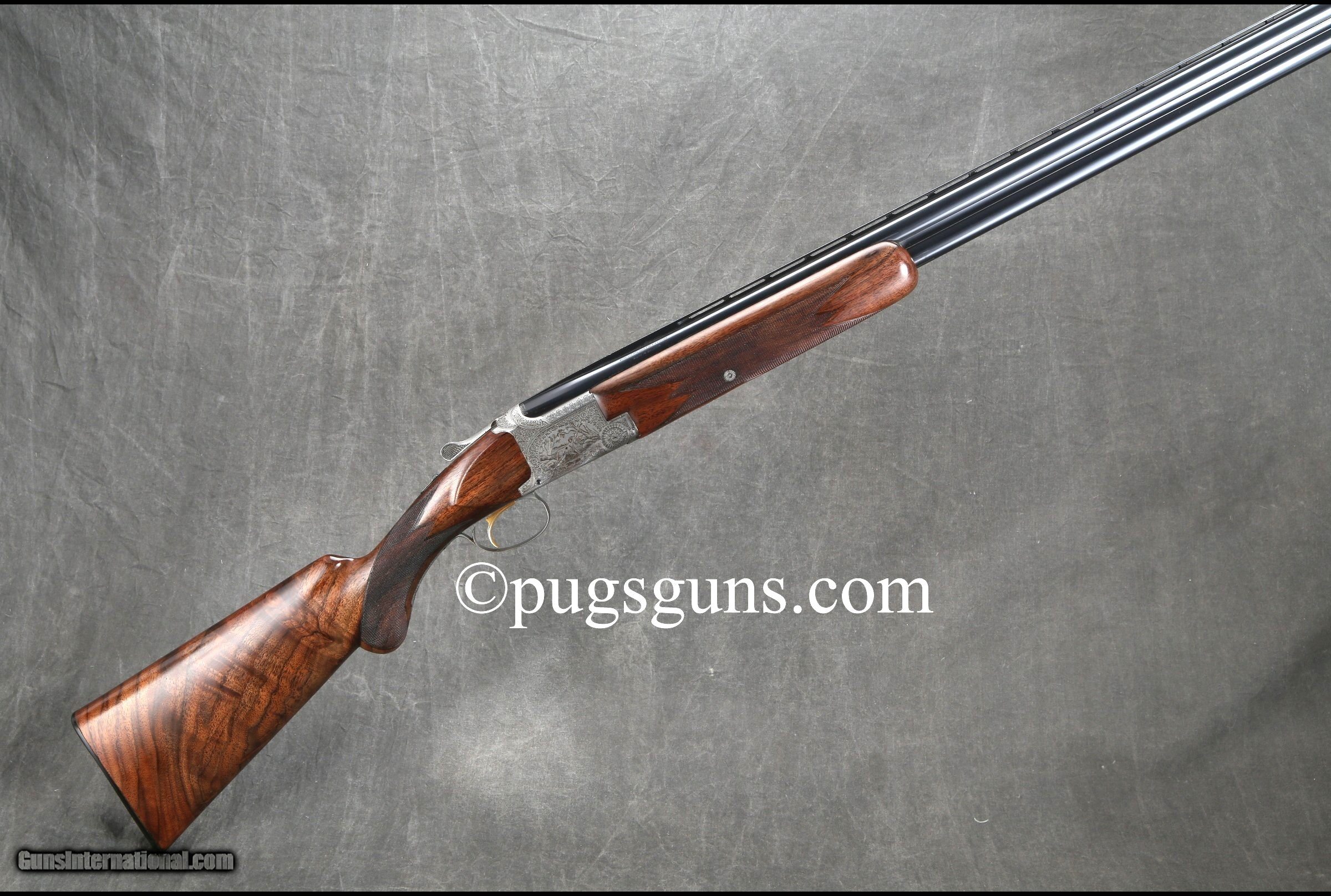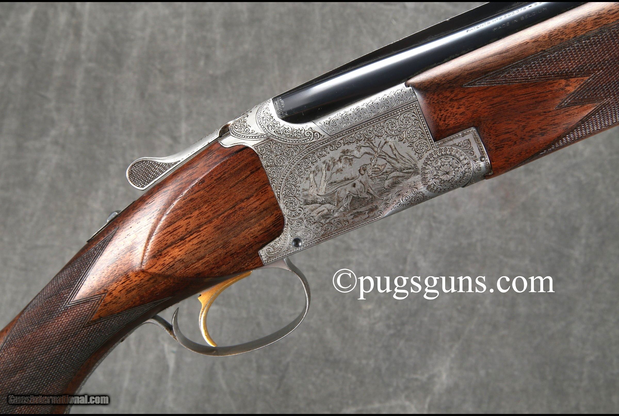 Description: "Cased SOLD Manufacturer: Bronwing Model: Pointer 2 Barrel Set (R. Risack Engraved) Serial Number: 98617 Ejectors: Yes Barrels: 26.5 inches/28 inches Triggers: Single Selective Trigger Gauge Info: 12 Gauge Stock Comb: 1 3/8 inches Stock Heel: 2 1/4 inches LOP: 14 1/4 inches Weight: 7 lbs. 9 oz. |