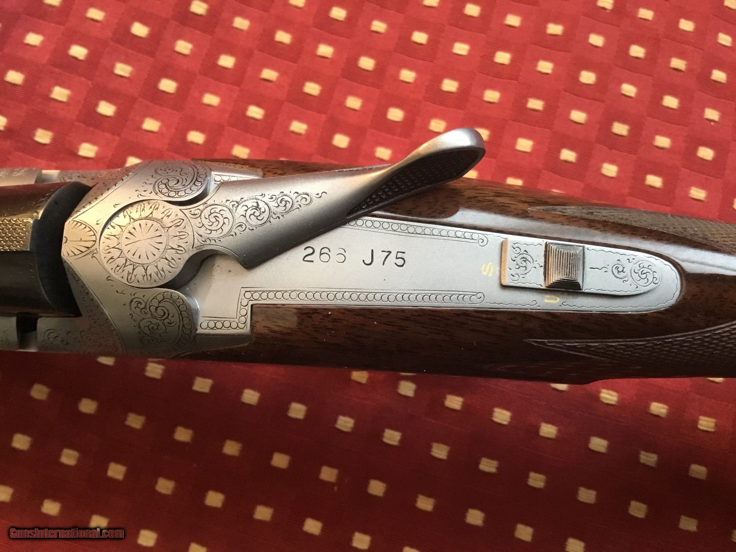 Description: Rare Pointer 410 ga. Superlite style, made 1975, engraved by J Lewanczyk. Barrels choked F & M, 261/2 in. Perfect, as new condition, probably unfired. Cased with manual and factory letter. SOLD |