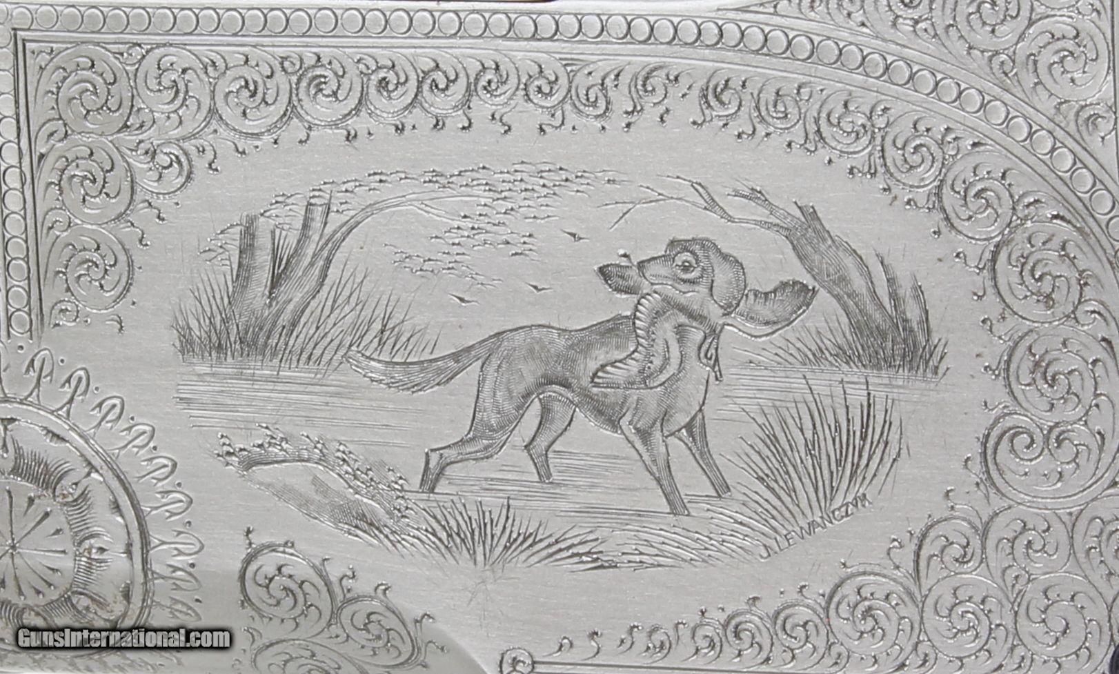 Description: BROWNING SUPERPOSED, "POINTER GRADE", .410, 26 3/8" Barrel, SN#266J75, MFG: 1975. Sorry No Box or Paperwork. One Owner, Gun has been in Safe for 42 Years. LOP: 14 1/4", DAC: 1 3/8", DAH: 2". Weight: 6lbs, 4ozs. Engraved by J. Lewanczvk. Grade 5 Wood. Slight Discoloration on top Tang, and Trigger Guard, Otherwise Excellent. Chokes: Full/MOD. Only 754 of the Pointer Grades were made. Ships to Lower 48, W/Insurance: $135.00 Price reduced to: $12, 000 SOLD Manufacturer: Browning Model: Pointer Grade Serial Number: 266J75 Caliber Info: .410 Bore: LNEW Condition: LNEW Metal Condition: LNEW Barrels: 26 3/8 Gauge Info: .410 |