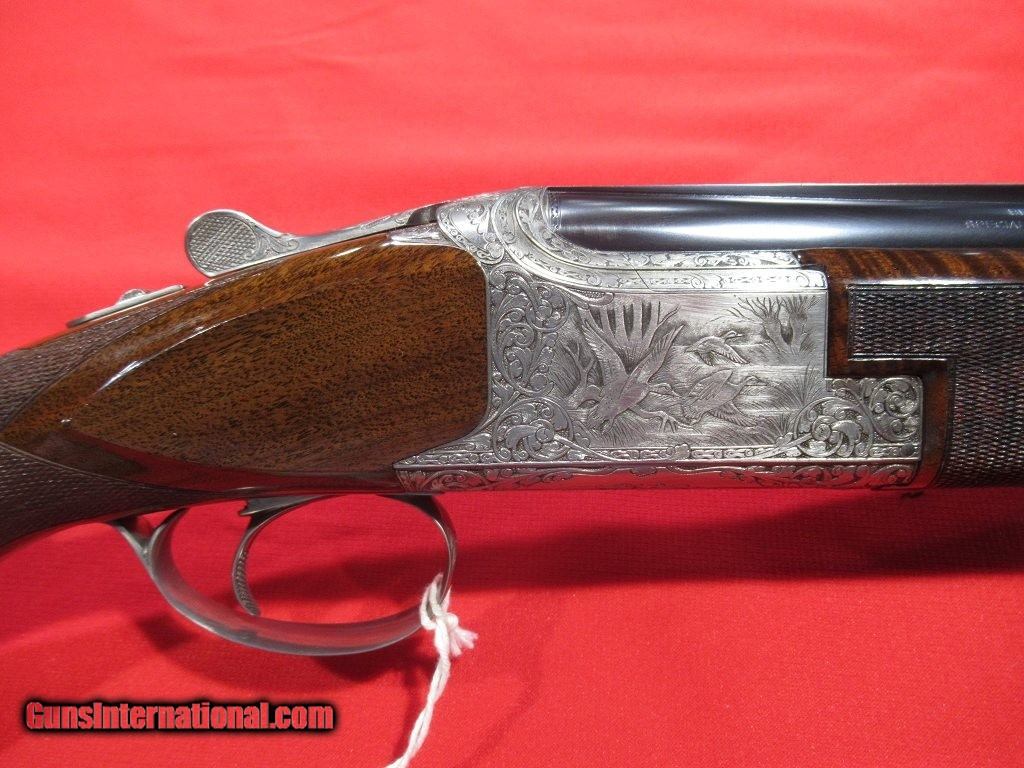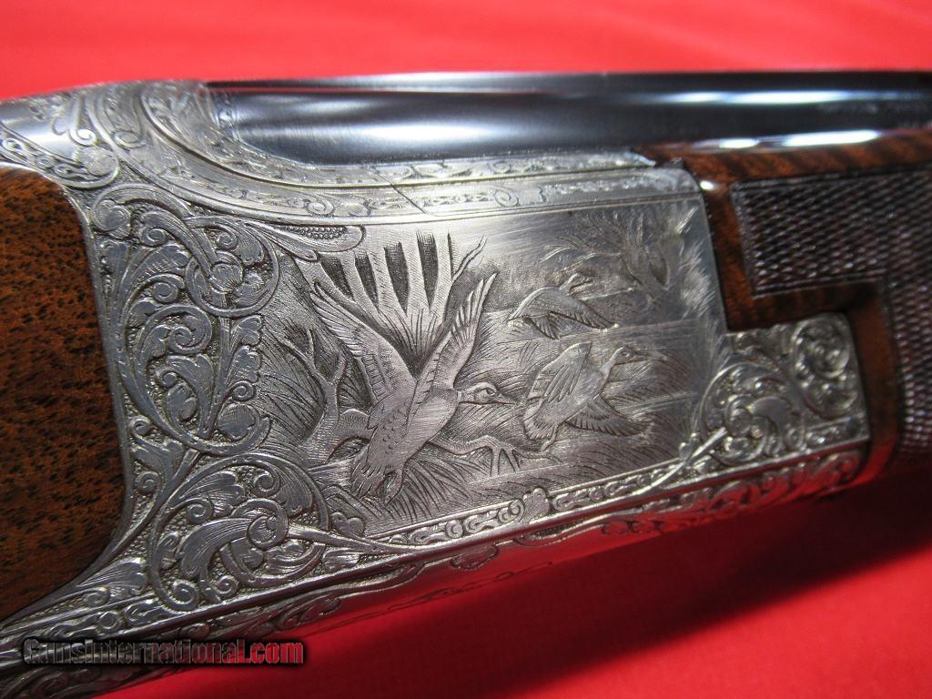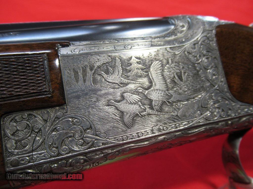 Description: Belgium Browning C Grade 20ga 28" SK/SK -- C Series Exhibition grade gun with D4G engraving pattern (signed by M. Bodson) -- This is a mid 70's gun with long tang, beavertail forend, and factory pad. It is in virtually new condition with a Browning luggage case. MINT condition. SOLD |