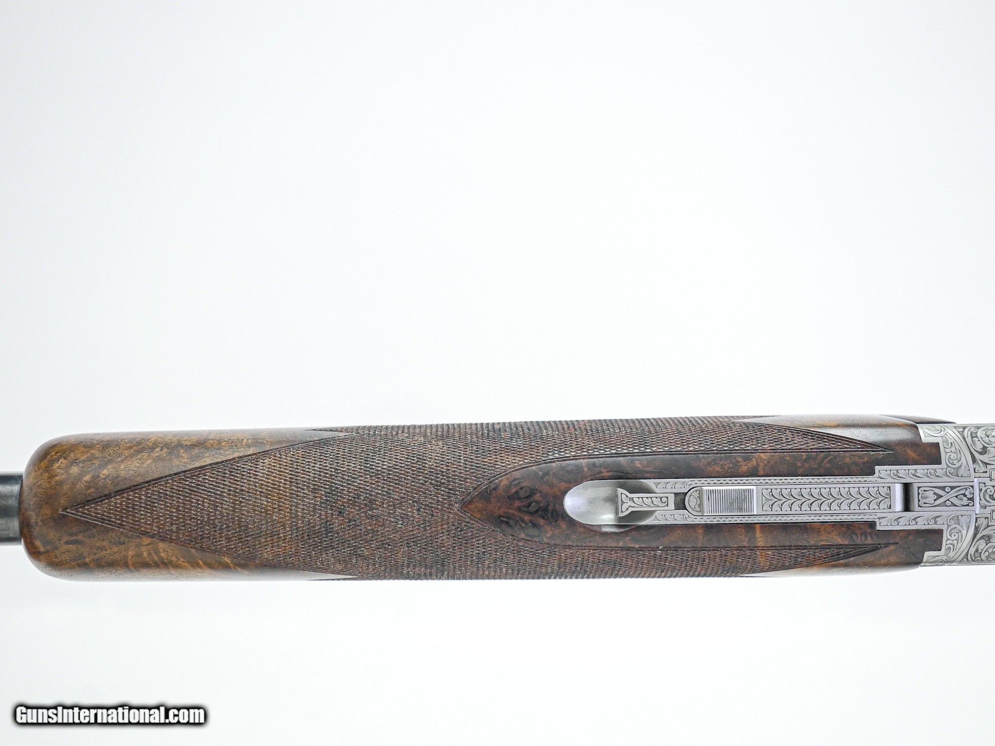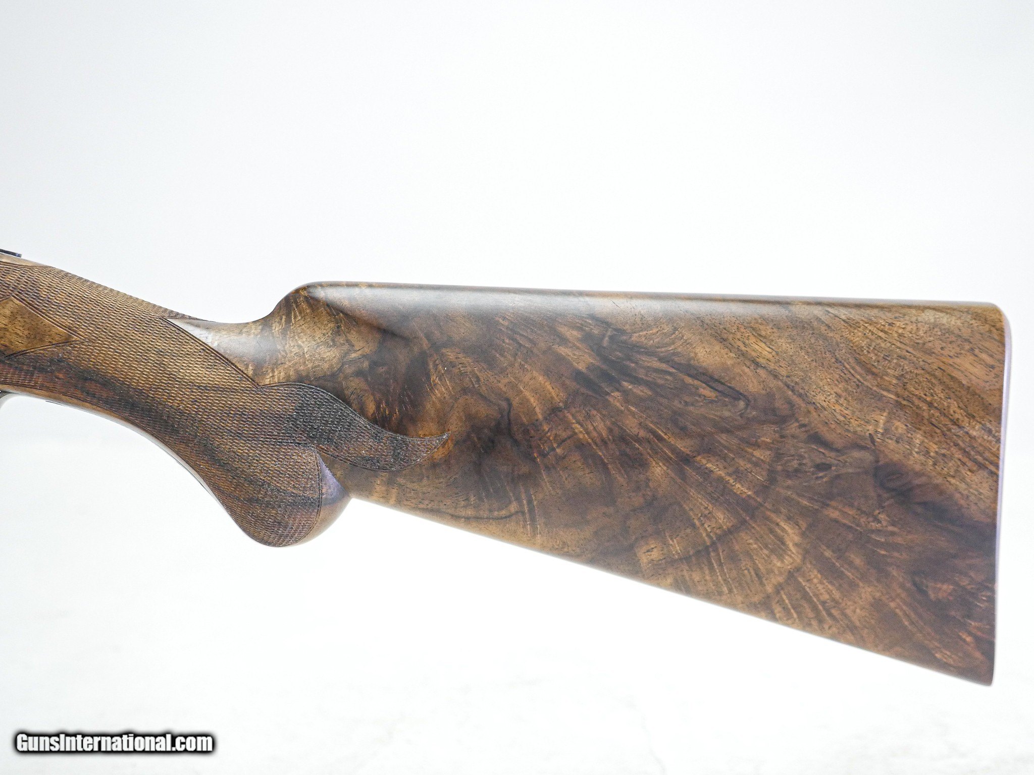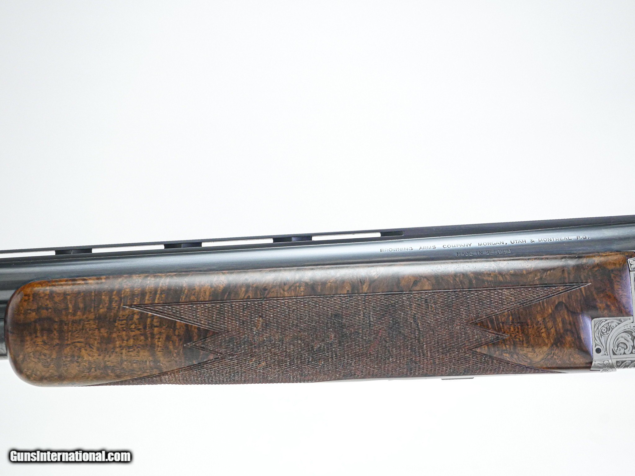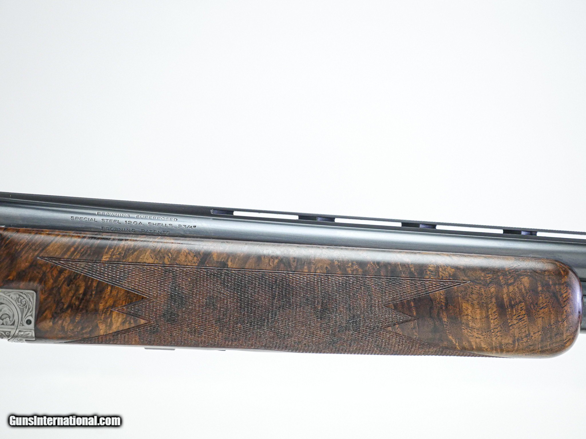 Description: Browning - American Mallard, 12ga. 28" Barrels Choked M/F. Most stunning wood imaginable, round knob long tang, oil finish, Midas pattern checkering, gold single selective trigger, automatic ejectors, vent rib, skip line checkered butt, field forend, round superlight frame, number 38 of 500, gold highly detailed inlays of mallards surrounded by full coverage acanthus scroll engraving over a French grayed finish, 100% as new and unfired, the finest collector grade example you will encounter, includes factory full length wooden case with red velveteen interior, $50 S&H, available for immediate delivery, this is the nicest one you will ever see, no excuses. Inv: 43978 7 lbs. 4 oz. 14 3/8" x 1 ½" x 2 3/8" MAKE OFFER SOLD |