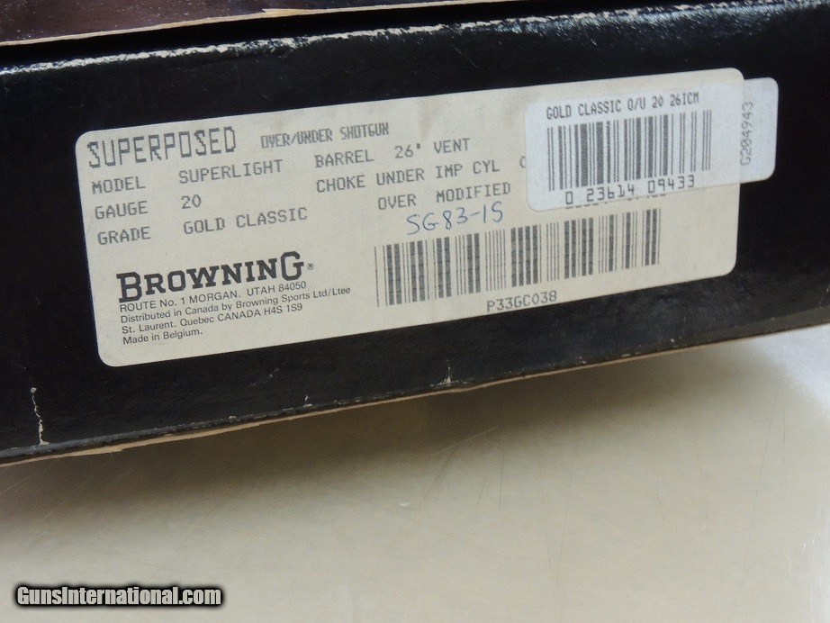 Browning Gold Classic 20 Gauge Superlight Superposed Shotgun in the Box (Inventory#10757)
