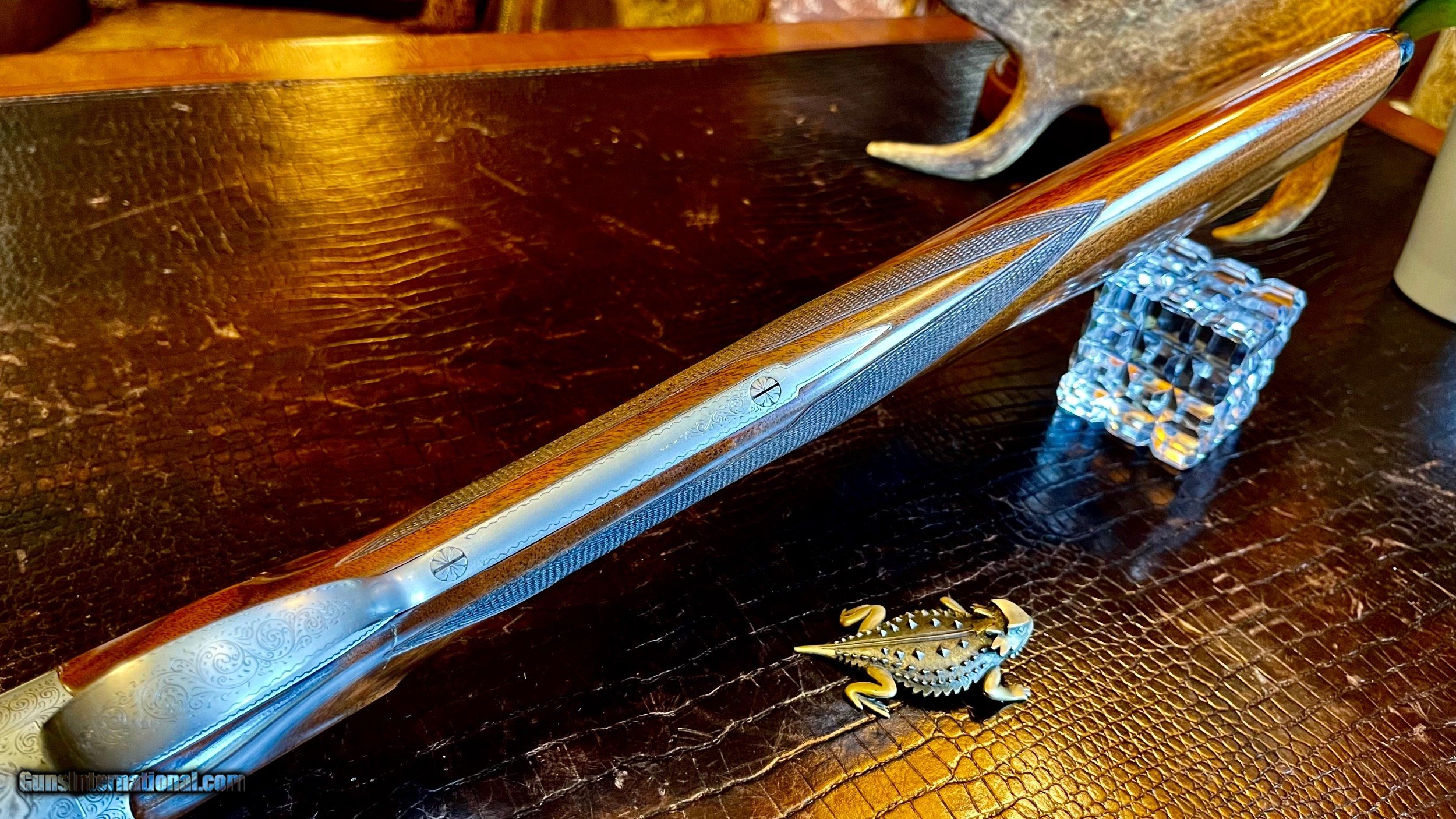 Description: *****SALE PENDING***** Browning Presentation Superlight P1K 20ga J. Baerten Engraved - 28” - 3” Shells - M/F - 99% Condition - ca. 1977 - Rare Gray Finish Presentation Grade IMPORTANT NOTE: This "P1K" is a "Rounded Frame Lighting" Model in "Superlight-Configuration". A true Superlight would have a tapered rib and a Schnabel style forend. This one has a field rounded forend with a straight grip. It is the 22nd presentation grade gun made in 1977 - the rarest of configurations with a signed - truly engraved P1K frame. It is estimated that 95% of the P1 frames were etched and not hand engraved. Jose Baerten engraved and signed this gun. **scroll down for specs** Quillen & Worfe Fine Guns Disclosures and Important Information: