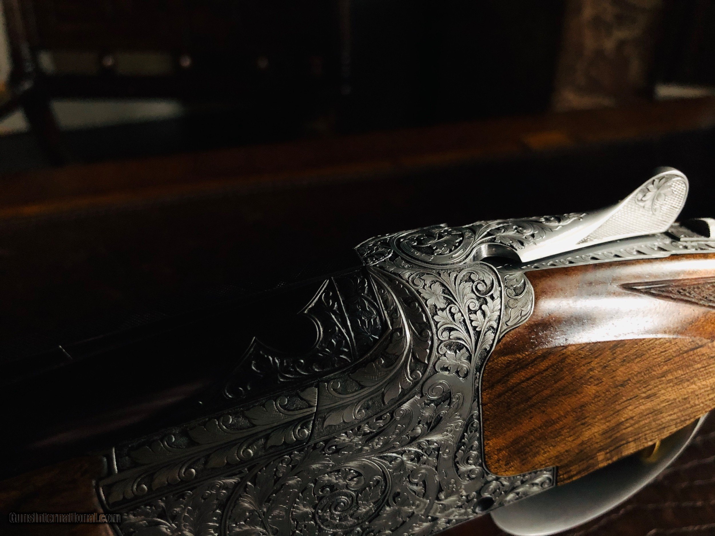 Description: Browning Superlight - 20 Gauge - D5G - Checkered Butt - Exhibition Walnut - IC/M - 26.5” Barrels - 14 5/8” x 1 3/8” x 2 3/8” - 6 lbs 6 ozs - Engraved By Master Engraver R. Hambrook - Oil Finish - 99% Condition with the ever so slightest of handling marks on wood. When you compare Hambrook's work to the earlier engravers - it is obvious, he is better in many degrees - but mainly, his ability to capture the detail like most others of earlier eras simply could not. Fine Wood. Fine Craftsmanship. The Essence of Class. *****SPECIAL NOTE***** 1. I am a reasonable man – I encourage you to make reasonable offers on my listings. At times, there is some flexibility in pricing – other times there is not. I have been collecting guns since 1988 – so I have amassed quite a covey of what I consider to be some very fine guns and some utility guns. Feel free to call me, unlike most gun dealers – I am easy to talk to and will answer the phone on weekends and late evenings (not after 9PM CST). 2. I DO NOT ACCEPT TRADES 3. I do provide LAY-A-WAY plan, please inquire about my terms if you have a need – glad to do it when I can. 4. My collection consists of many guns that were bought from individuals – that means **I BUY GUNS** but I only buy clean used guns with collectibility. In particular - **I BUY SHOTGUNS** 5. ALL OF MY TRANSACTIONS ARE DONE THROUGH MY FFL with whom I have a very solid relationship. If you buy a guns from me, you’ll pay them, they will ship to your FFL of choice and all dealings will be with them post receipt of funds. They are a high end boutique gun dealer in the Texas Hill Country and can accommodate the entire transaction. If you live in Texas and want to drive to see one of my guns, reach out to me to discuss making an appointment with my FFL – I do not show guns at my home nor do I meet guys at public locations for viewings or sales. ALL GUNS ARE LEGALLY TRANSFERRED through my FFL – there are NO EXCEPTIONS. 6. Certified funds are preferred – if you send a personal check for payment the FFL ships one week after receipt. Certified funds payments – shipments are done next business day. NO CREDIT CARD payments are accepted. 7. I encourage you to shoot the guns you buy from me – so during your 3 day inspection – shoot the gun. Make sure it is operating in the manner you expected. If you are not happy – return the gun for a full refund except shipping costs SOLD |