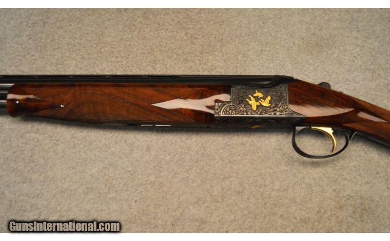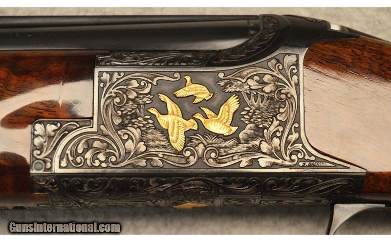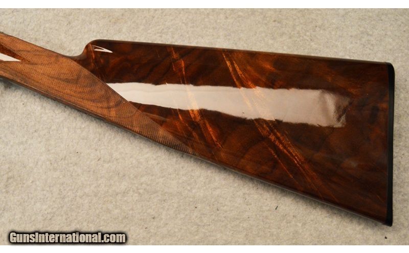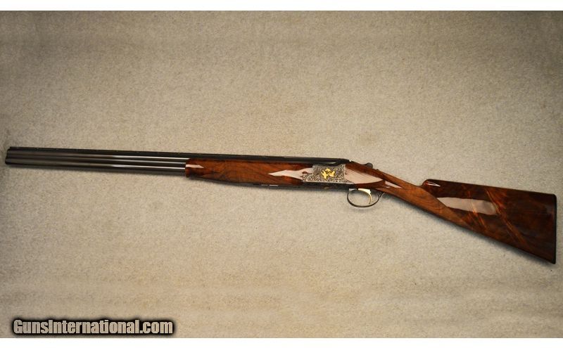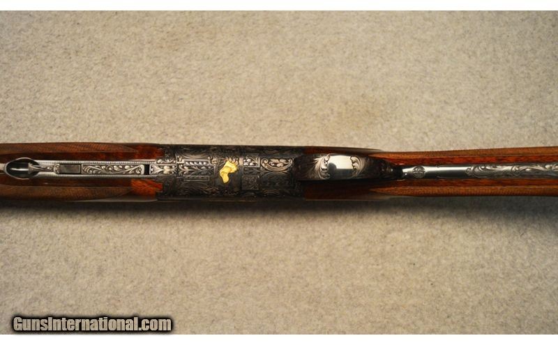 Description: Fantastic Browning Superposed shotgun chambered in 20 ga. with 26 inch blued barrels. This gun is superbly engraved, and includes gold accents with gold inlays done by Jose Baerten 20 Gauge SOLD Wood Condition: Very good condition with some minor handling marks Barrels: 26.5 Triggers: Single Stock Dimensions: 14" LOP Butt Pad: Original Browning Chokes: FULL & MOD Item Location: Fort Worth, TX |