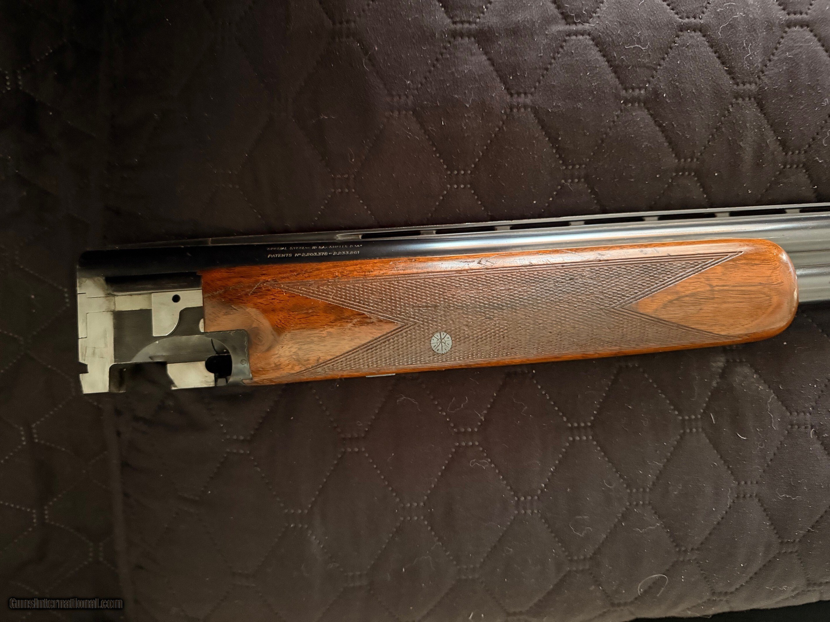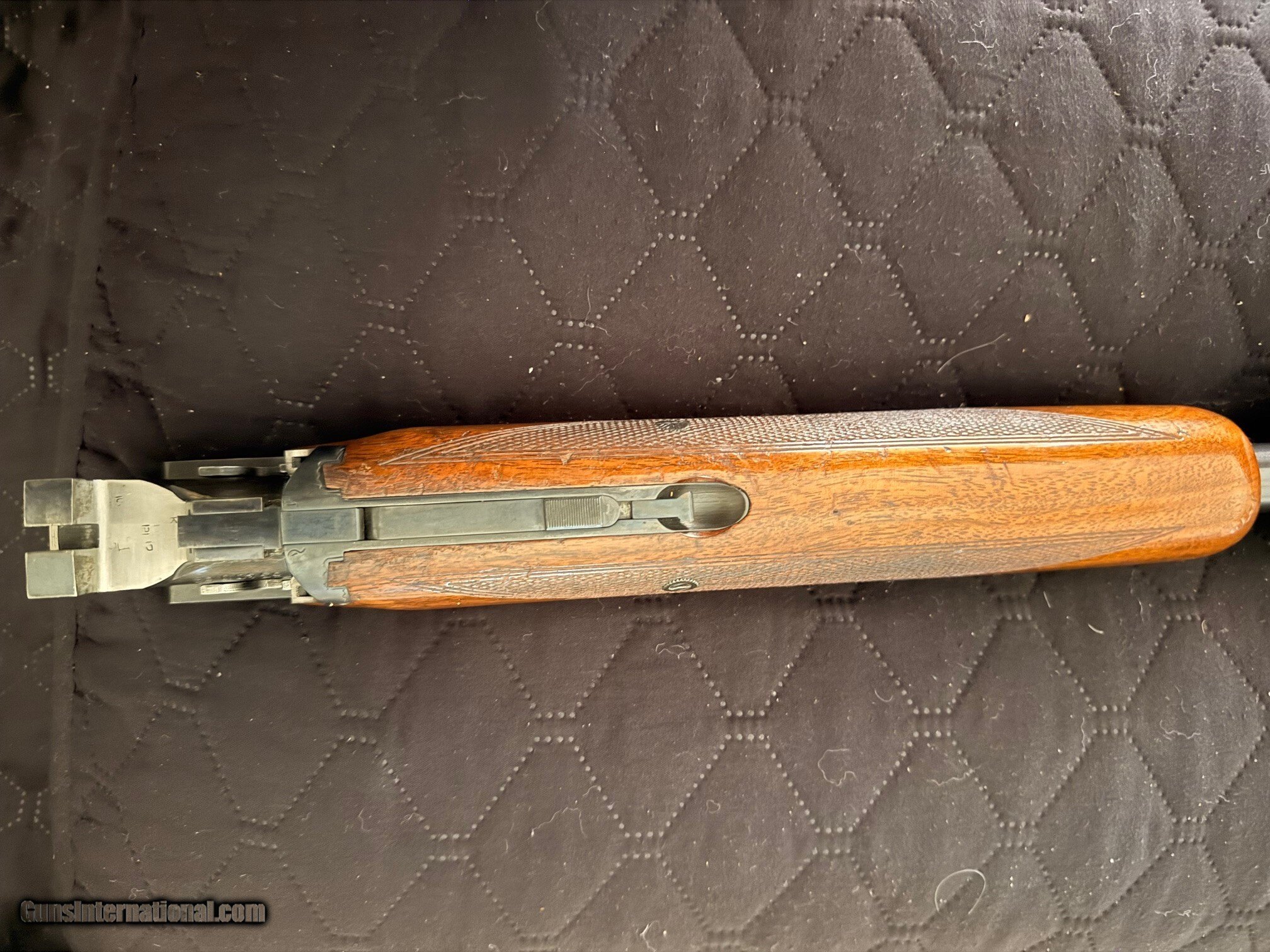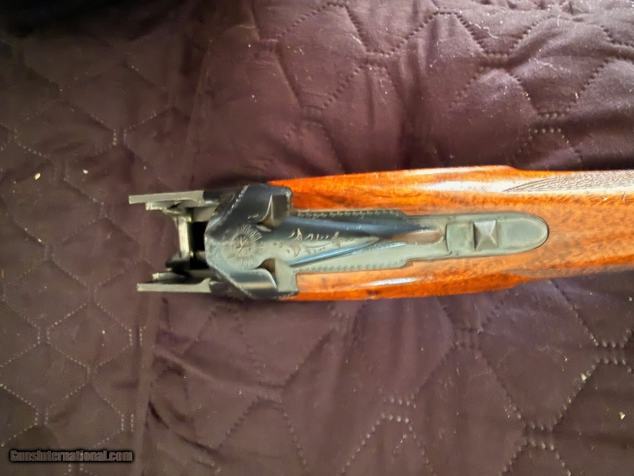 Description: 1956 Browning Superposed Grade I O/U 12 Gauge LT w/Original Box 26.5" Vent Barrels M over IC Description: 1956, Belgium made Superposed Grade I Field with a long tang, and modified over IC fixed choking. Has a 26.5" vented barrel for a lightning swing on fast flying birds. The furniture has a couple of handling marks, but is still in excellent condition. The metal shows some slight thinning on the edges. The bore is bright and shiny. It comes with its original box, paperwork, and manual. History of the Browning Superposed Over/Under John M. Browning’s last design before his passing, the Browning Superposed, is a fine over/under shotgun that holds a good deal of collector value. What makes the Browning Superposed a collectible item?