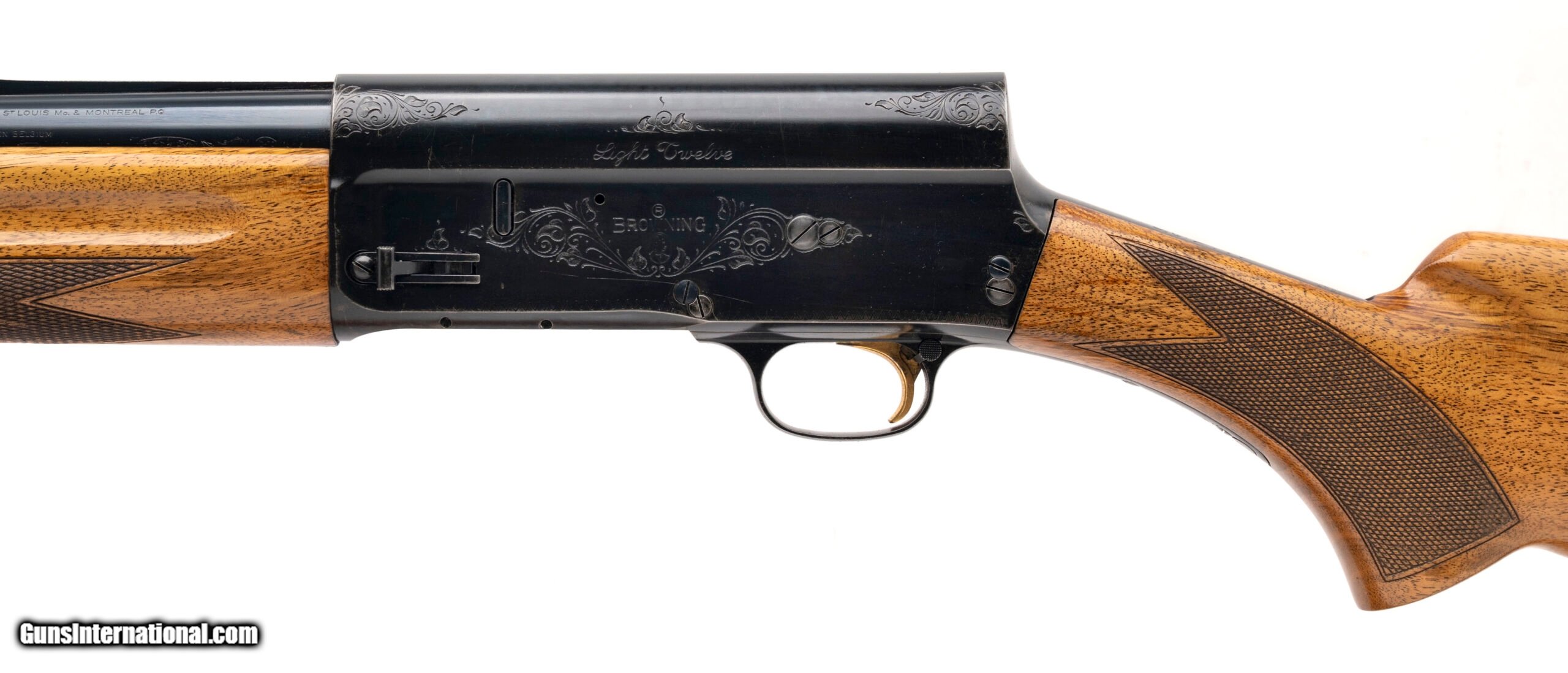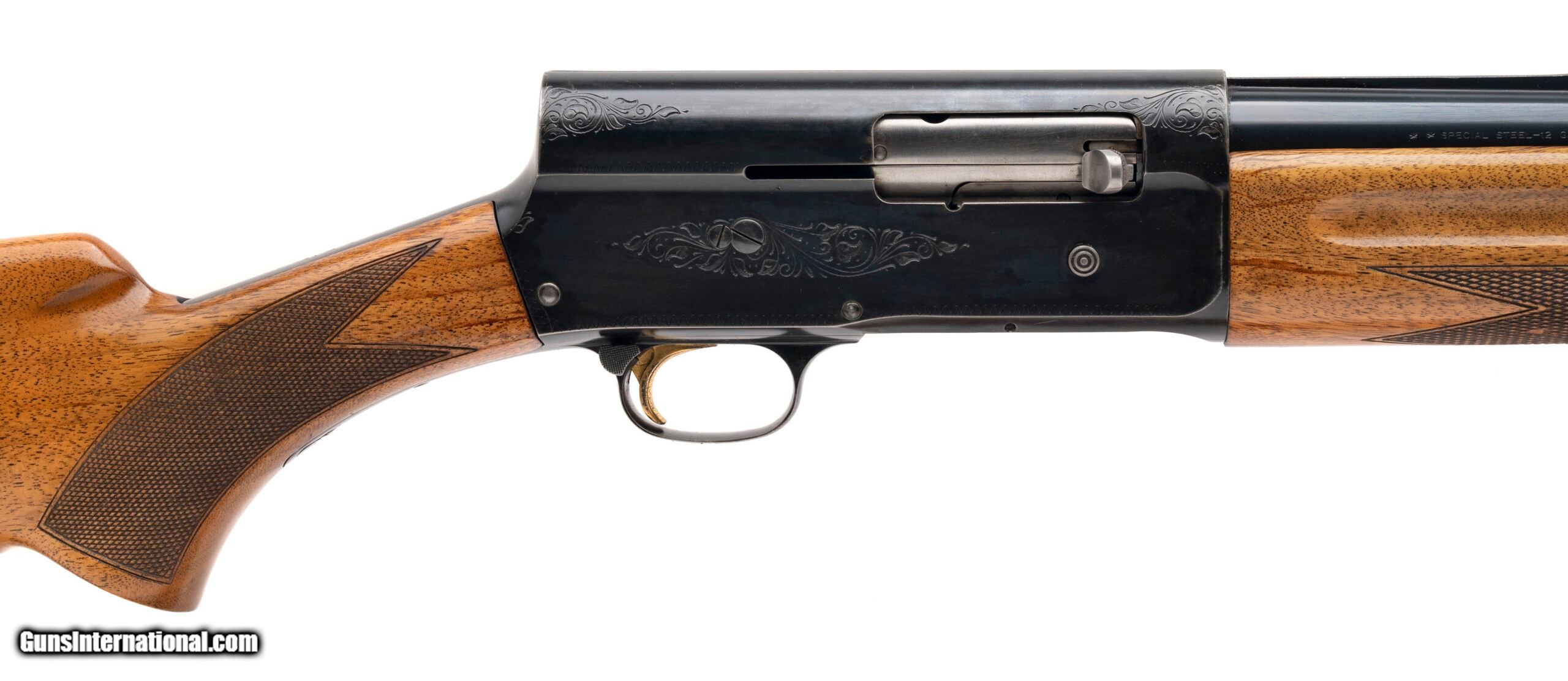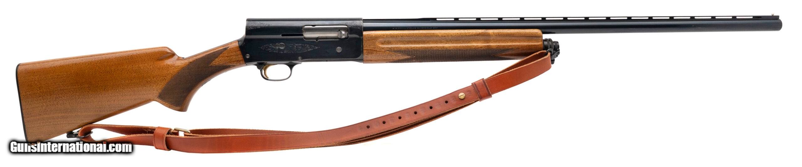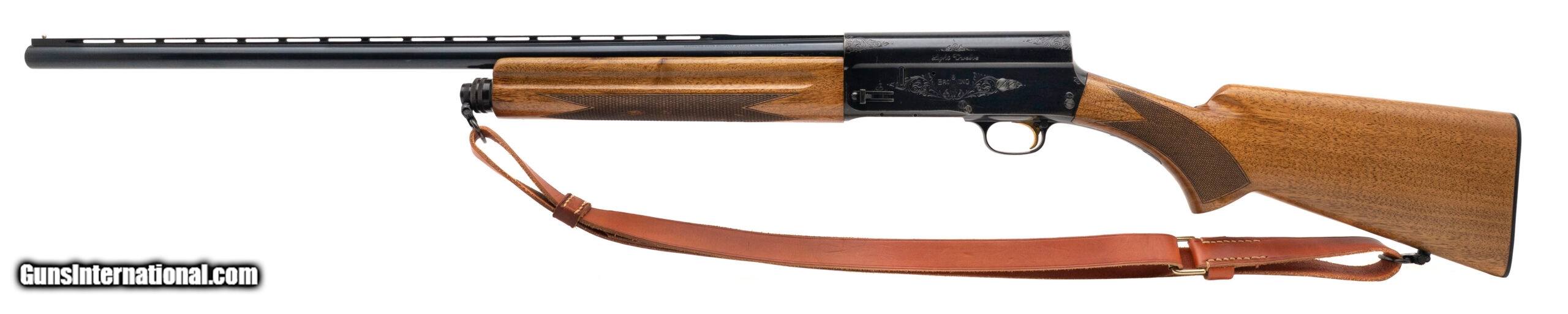 "SN: 69G16755 made in Belgium in 1969. Semi auto 12 gauge shotgun with a 27.5" vent rib barrel with 2 ¾" chamber and fixed Modified choke. Blued metal finish with a gold plated trigger and checkered walnut furniture with a 14.5" LOP to the original butt plate. Overall condition is very good as professionally restored with a small scar visible from a repaired crack in the forearm. Bore is excellent. Comes with sling.