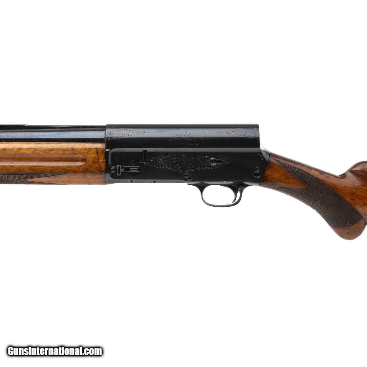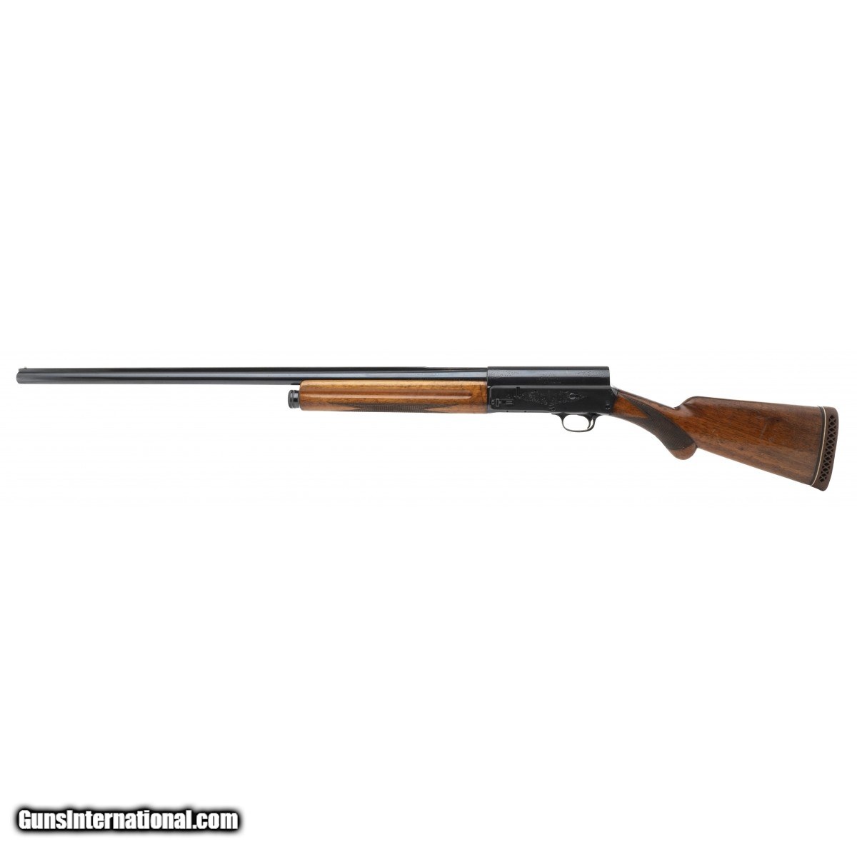 Description: "SN: L11282. Semi-automatic shotgun made by FN for Browning in 1954. 28"" integrally ribbed barrel chambered for 2.75"" 12-gauge shells. 13"" length of pull. Good condition overall with some noticeable handling marks in the wood. Has 90+% of blue with scattered surface rust on the receiver and patches on the rib and barrel. Austin location. SOLD Curio/Relic: Yes |
