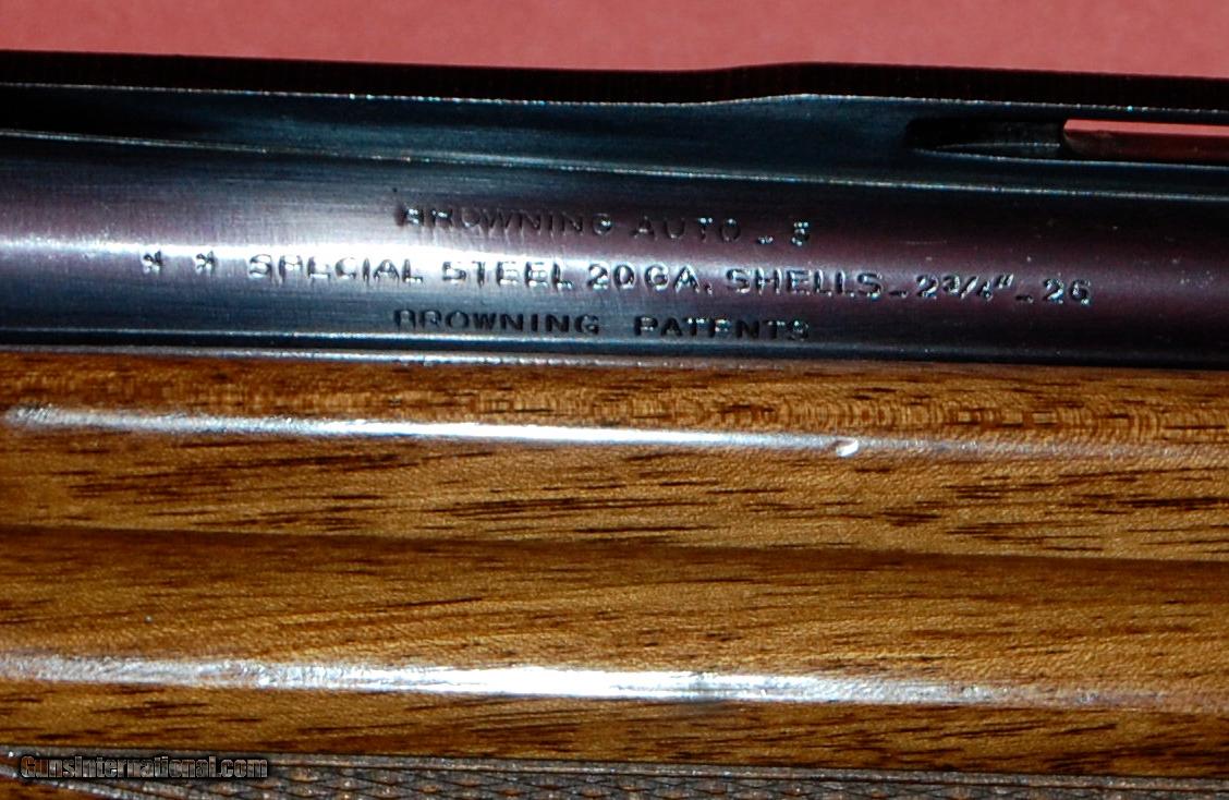 Description: Belgian Browning 20ga. A5.Built in 1972,this gun has a 26"vent rib barrel choked modified.It retains 98%of the original blue and wood finish and is all original.It is chambered for 23/4"shells and is the same gun as the "light" twenty.A great Belgian Browning for the shooter or collector. SOLD Manufacturer: Browning Model: A5 Twenty Serial Number: 72Z66855 Bore: excellent Chambers: 23/4 Action: semi auto Gauge Info: 20ga Rib: ventilated Manufacture Date: 1972 Chokes: modified |