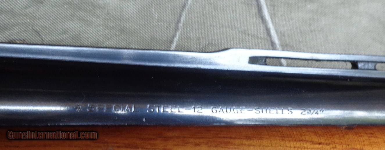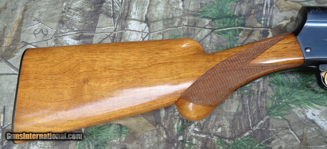 Description: *** SOLD *** SOLD *** 1963 Auto 5 Light 12, made in Belgium, 2 3/4" chambered 12 gauge, with a gorgeous blonde wood round knob pistol grip stock and forearm, having a 30" full choke vent rib barrel, remaining in excellent condition, shiny bore. If you have been waiting for a really nice A5 12 gauge to come along, this may be it. LOP at 14 1/4" and DAH at 2 3/8". Look at the pictures, and then call or e-mail to make it yours! $50 S&H to most of the 48. $60 S&H to the far west eight states. Post office money orders preferred for payment, but I will accept personal or cashier's checks with 2 or 3 days to clear. No warranty, stated or implied by the seller. Consignment gun-no return. SOLD Curio/Relic: Yes Shotgun Gauge: 12 Gauge Manufacturer: Browning Model: Auto 5 Serial Number: 3G-16760 Chambers: 2 3/4 Metal Condition: excellent Wood Condition: excellent Bore Condition: excellent Stock Heel: 2 3/8 LOP: 14 1/4 Rib: vent Sights: single bead Manufacture Date: 1963 Chokes: fixed full choke Engraving: yes, factory engraving Extras: desirable Belgium round knob |