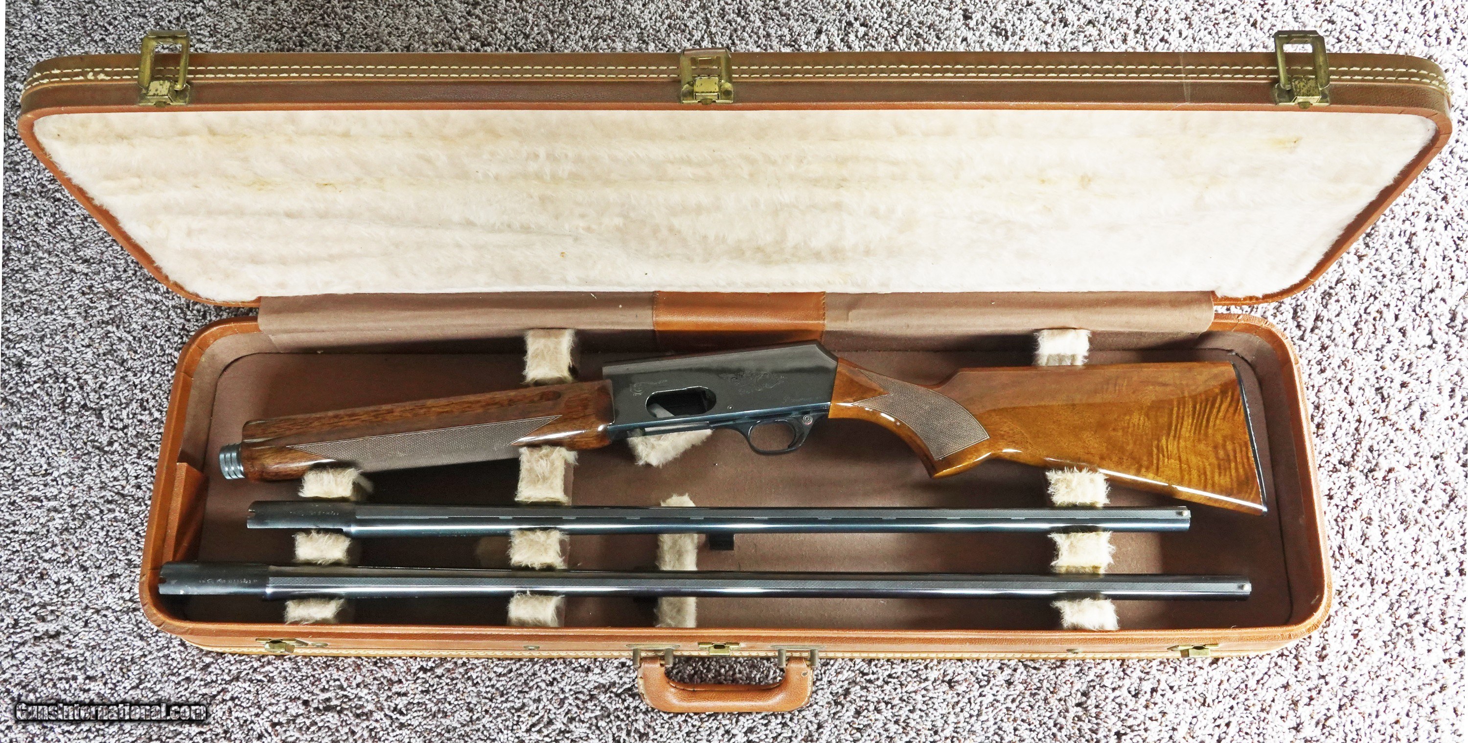 Description: BROWNING 2000 - 12 GA. 30"- 3" - F BARREL AND A 26" - 2 3/4" - IC BARREL . CONDITION - GUN AND BARRELS NEAR 100% - BORES MINT - STOCK 98% WITH A LITTLE BETTER FIGURE THAN MOST 2000'S. COMES WITH A TWO BARREL HARTMAN CASE. SOLD |