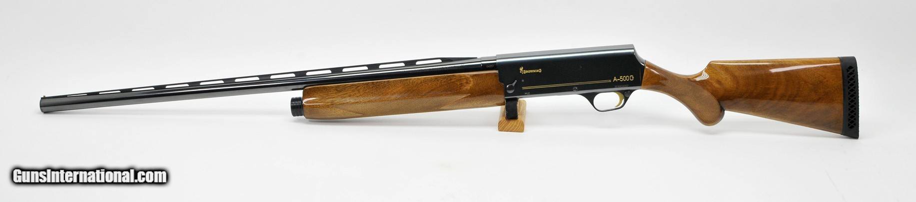Description: Browning A-500G 12 Gauge Shotgun. Excellent Condition AVAILABLE FOR PURCHASE AT OUR ON-LINE STORE The Browning A-500G shotgun was introduced in 1990 and discontinued in 1993. This was a gas-operated model made in Belguim and assembled in Portugal. It is capable of firing 5 shots (with the magazine plug removed) in rapid succession with each pull of the trigger. This firearm is in excellent condition. No box
