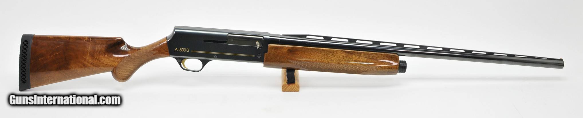 Description: Browning A-500G 12 Gauge Shotgun. Excellent Condition AVAILABLE FOR PURCHASE AT OUR ON-LINE STORE The Browning A-500G shotgun was introduced in 1990 and discontinued in 1993. This was a gas-operated model made in Belguim and assembled in Portugal. It is capable of firing 5 shots (with the magazine plug removed) in rapid succession with each pull of the trigger. This firearm is in excellent condition. No box