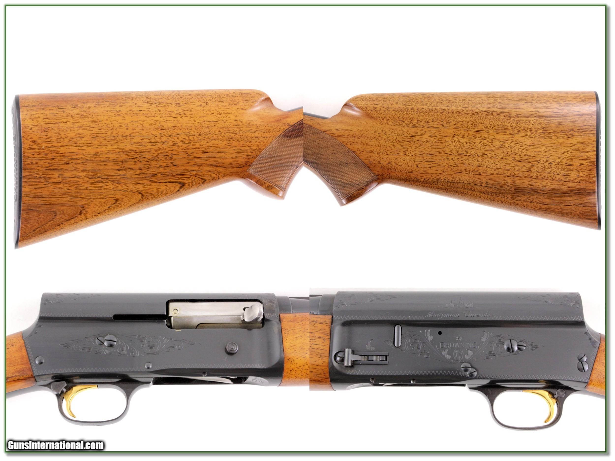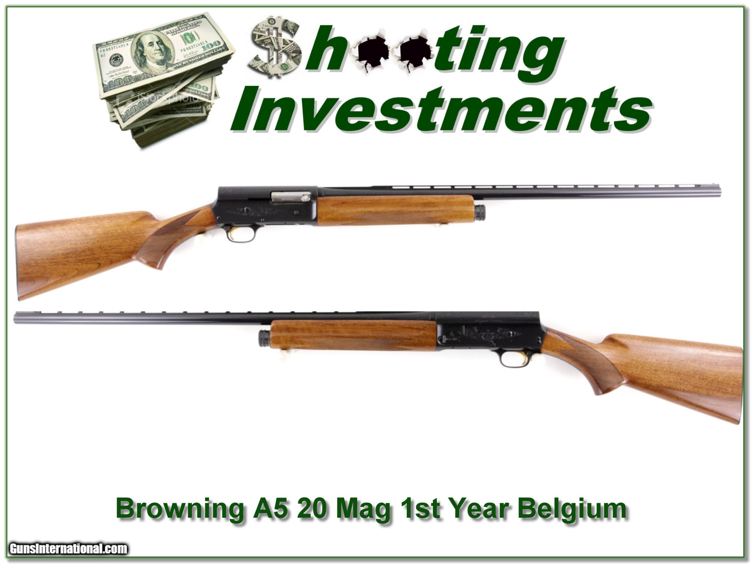 Description: Collectors, this is a first year 1967 Belgium made Browning A5 Magnum 20 Gauge. The blue is as new with no edge, recoil or gold trigger wear. The wood is a very nice honey color with just a couple handing marks. The barrel is a 28in Vent Rib full. This one will make a fine addition to your collection and they just don’t make them like this anymore! Shipping with insurance is $39. Please email me with any questions or larger pictures. (Consign your quality firearms with Shooting Investments for only 12%! Let me know if you have any you would like to sell!) 19-0105 Payment: Payment is by Money Order, Cashiers Check or Personal Check. I can now also accept Credit Cards (MasterCard, Visa, Discover & American Express) with a 3% convenience fee. PayPal can be used for some items but never for firearms. Shipping: The shipping charge will be listed in each description. It is $39 for most firearms. Some heavy guns or those insured for over $2000 will be higher. Shipments to Alaska and Hawaii are higher because air shipment is required. Most firearms are shipped on Tuesday and Thursday and usually in 5 days of receipt of payment. We package all shipments carefully and insure them. Optics are shipped Priority Mail and most other non-firearm shipments are shipped First Class. Returns: Our return policy is simple. If for any reason you are not pleased with your purchase, you may return your item for a full refund of purchase price. Ammunition cannot be returned. It is important to us that you are happy. Guns cannot be fired or dissembled before returning them and they must be returned in the same condition as received. Notification of a return must occur with-in 3 days of receipt at your dealer. Shipping, convenience and dealer fees are not refundable and are the responsibility of the buyer. Lay-a-way: If needed, we offer a 60 day lay-a-way option on most firearms. It is 1/3 now, 1/3 in 30 days and 1/3 in 60 days. Lay-a-way firearm sales are final and if not completed the first payment cannot be returned. Consigning your firearms with Shooting Investments: We will help you get top dollar for your firearms. While most local guns shops charge 20% or more, our fee is only 12% with a minimum of $75. At your local gun shop it might take months to sell. Selling on-line provides instant access to thousands of interested buyers. You won’t find any other on-line dealer willing to sell your firearms for only 12% or listing every gun on 3 separate s. Selling through an House typically costs the seller 15% and the buyer an addition 15% (so 30%) and you have to wait several months to sell and longer to receive funds. If properly priced, we will sell your firearms in a few weeks. Send us an email or give us a call and we’ll explain how easy it is for you to get top dollar. Trading: Trading for use is really just buying your gun to re-sell. If you have a gun you want to trade, please email a picture and we will let you know what we can give or it. You will always get more if we sell it for you on consignment. Help for California Buyers: We are happy to ship to California. It is the buyer’s responsibility to make sure any item you buy is legal in your state. We are also happy to help with your purchase of a firearm from someone other than us. If you see a gun you would like to buy but the seller can’t or won’t ship to California they can ship to use and we’ll then ship it to your California dealer. The cost for this service is only $30 + shipping. Let us know if we can help! SOLD |