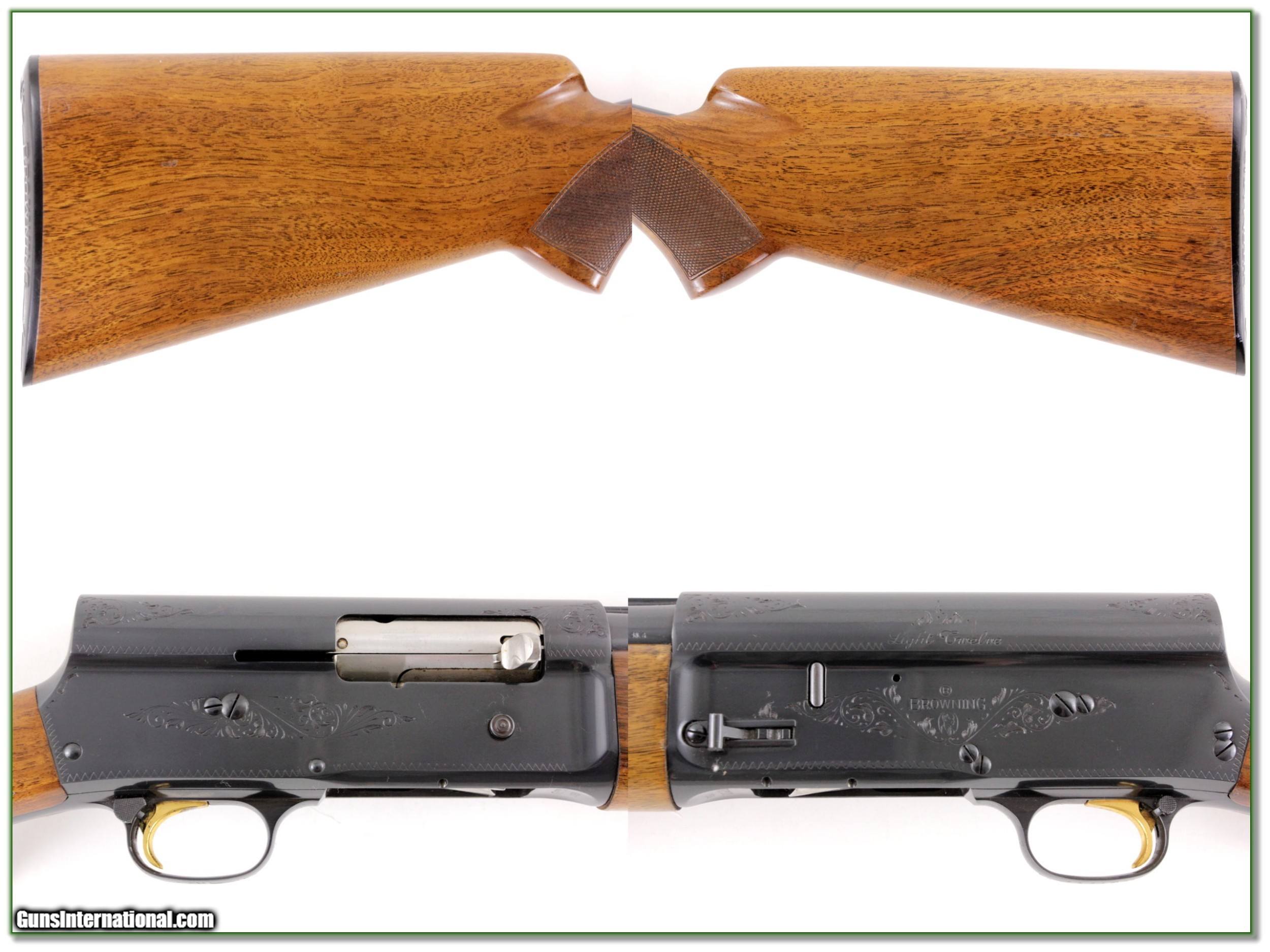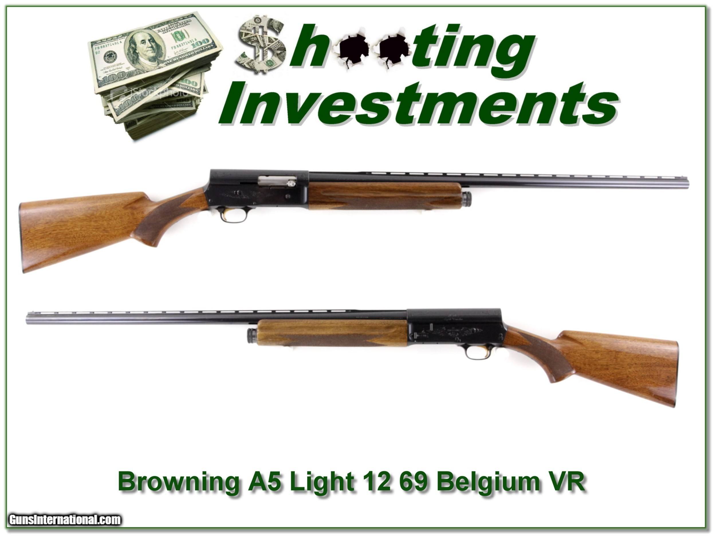 Description: This is a 1969 Belgium made Browning A5 Light 12. The blue is excellent with just one mark on the left upper receiver. Otherwise I see no edge or gold trigger wear. The wood has a few marks here and there and the barrel is a 30in Vent Rib full. It will make a classic field gun and they just don’t make them like this anymore. Shipping with insurance is $39. Please email me with any questions or larger pictures. (Consign your quality firearms with Shooting Investments for only 12%! Let me know if you have any you would like to sell!) 19-0245 Payment: Payment is by Money Order, Cashiers Check or Personal Check. I can now also accept MasterCard and Visa with a 3% convenience fee. PayPal can be used for some items but never firearms. Please let us know if you would like to pay via PayPal. Shipping: The shipping charge will be listed in each description. It is $39 for most long guns and $29 for most handguns. Some heavy guns or those insured for over $2000 will be higher. Shipments to Alaska and Hawaii are higher because air shipment is required. Most firearms are shipped on Tuesday and Thursday and usually in 5 days of receipt of payment. We package all shipments carefully and insure them. For long guns you can purchase a new Plano case for $19. They now cost us $22 when buying 100 at a time. Optics are shipped Priority Mail and most other non-firearm shipments are shipped First Class. Returns: Our return policy is simple. If for any reason you are not pleased with your purchase, you may return your item for a full refund of purchase price. Ammunition cannot be returned. It is important to us that you are happy. Guns cannot be fired or dissembled before returning them and they must be returned in the same condition as received. Notification of a return must occur with-in 3 days of receipt at your dealer. Shipping, convenience and dealer fees are not refundable and are the responsibility of the buyer. Lay-a-way: If needed, we offer a 60 day lay-a-way option on most firearms. It is 1/3 now, 1/3 in 30 days and 1/3 in 60 days. Lay-a-way firearm sales are final and if not completed the first payment cannot be returned. Consigning your firearms with Shooting Investments: We will help you get top dollar for your firearms. While most local guns shops charge 20% or more, our fee is only 12% with a minimum of $75. At your local gun shop it might take months to sell. Selling on-line provides instant access to thousands of interested buyers. You won’t find any other on-line dealer willing to sell your firearms for only 12% or listing every gun on 3 separate s. Selling through an House typically costs the seller 15% and the buyer an addition 15% (so 30%) and you have to wait several months to sell and longer to receive funds. If properly priced, we will sell your firearms in a few weeks. Send us an email or give us a call and we’ll explain how easy it is for you to get top dollar. Trading: Trading for use is really just buying your gun to re-sell. If you have a gun you want to trade, please email a picture and we will let you know what we can give or it. You will always get more if we sell it for you on consignment. Help for California Buyers: We are happy to ship to California. It is the buyer’s responsibility to make sure any item you buy is legal in your state. We are also happy to help with your purchase of a firearm from someone other than us. If you see a gun you would like to buy but the seller can’t or won’t ship to California they can ship to use and we’ll then ship it to your California dealer. The cost for this service is only $30 + shipping. Let us know if we can help! SOLD |