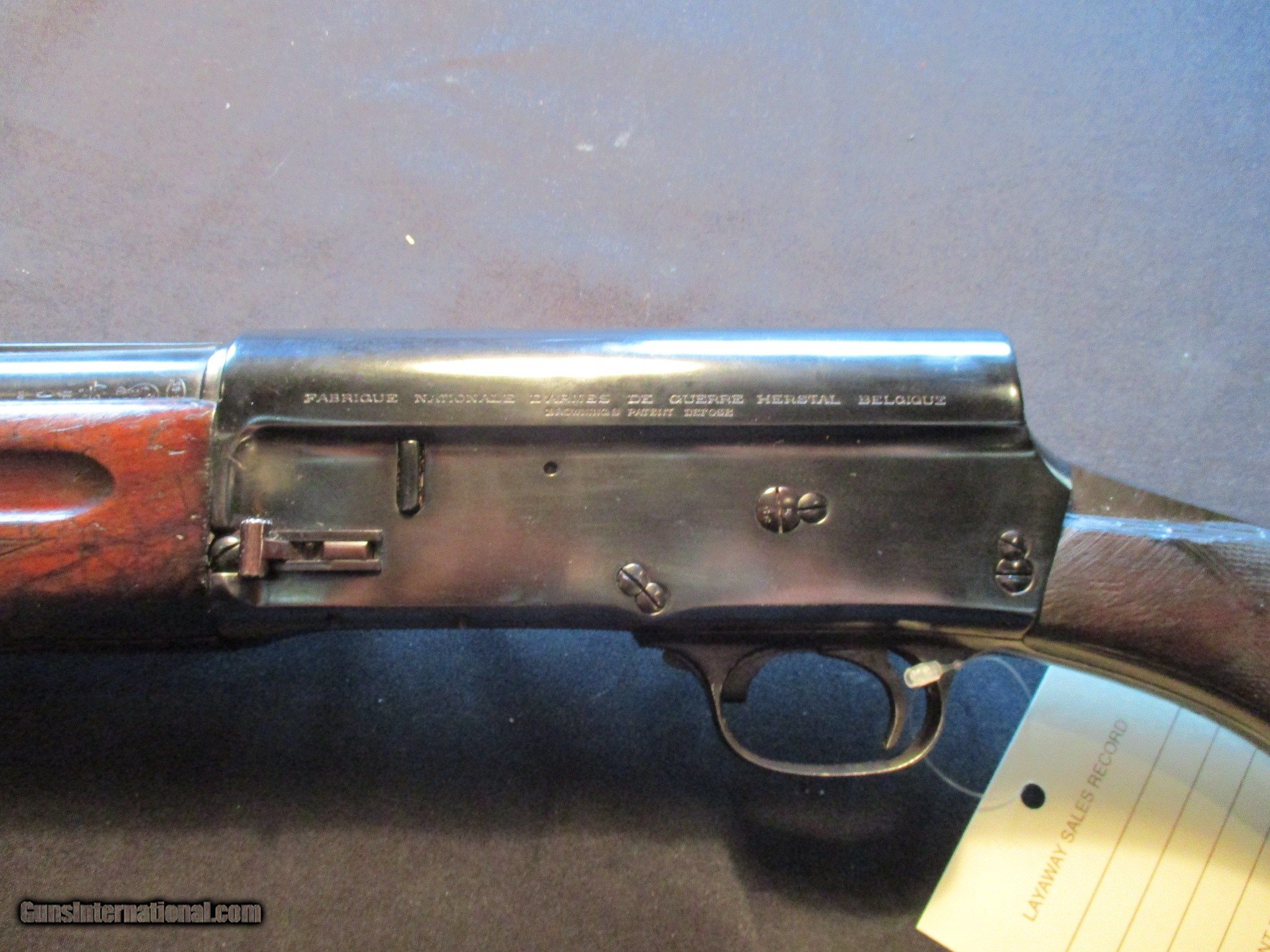 Description: Browning Auto 5, 16ga, 28" barrel, factory solid rib. fixed full choke. Gun has been nicely re-blued. Sn is 534xx. Email me if you would like these pics sent to you, they will come through bigger and better than on the listing page here. We do offer Lay-A-Way. Our standard terms are 25% down, 90 days. Initial deposit is not refundable. Email me with any questions. I am a store front dealer, and I will close s if the gun sells locally. Once it has aI will pull it from my shelves. Please check your local laws to confirm it is legal to own in your state! Buyer pays $25 shipping and insurance to your FFL in the lower 48. AK, HI or PR is extra. I will ship to California, NO PROBLEM! All my guns come with a non-firing, 3 day unconditional return privilege, from the day UPS delivers to your dealer. Buyer pays shipping both ways if the gun comes back. I can add a new hard case by PLANO for secure shipping for $25 if the buyer wishes (highly recommended, cheap insurance, really helps keep the UPS monster from eating my guns!). No sales tax on guns ship out of Kansas, guns sold in Kansas are subject to Kansas sales tax. I am a licensed FFL, and will include a copy of my FFL with the gun for your dealer’s records. I will ship to a C&R if the gun is eligible. I will ship to California, but you need to confirm the gun is legal where you are, California or other. WE BUY AND CONSIGN GUNS AND GUN COLLECTIONS! We will travel to pick up collections! I am always looking for good clean, old original Winchesters to buy, consign, or trade, especially Pre '64's model 70's and model 54's. WE ALSO TRADE FOR CLASSIC CARS AND TRUCKS! Email me with any questions, and good luck! SOLD |