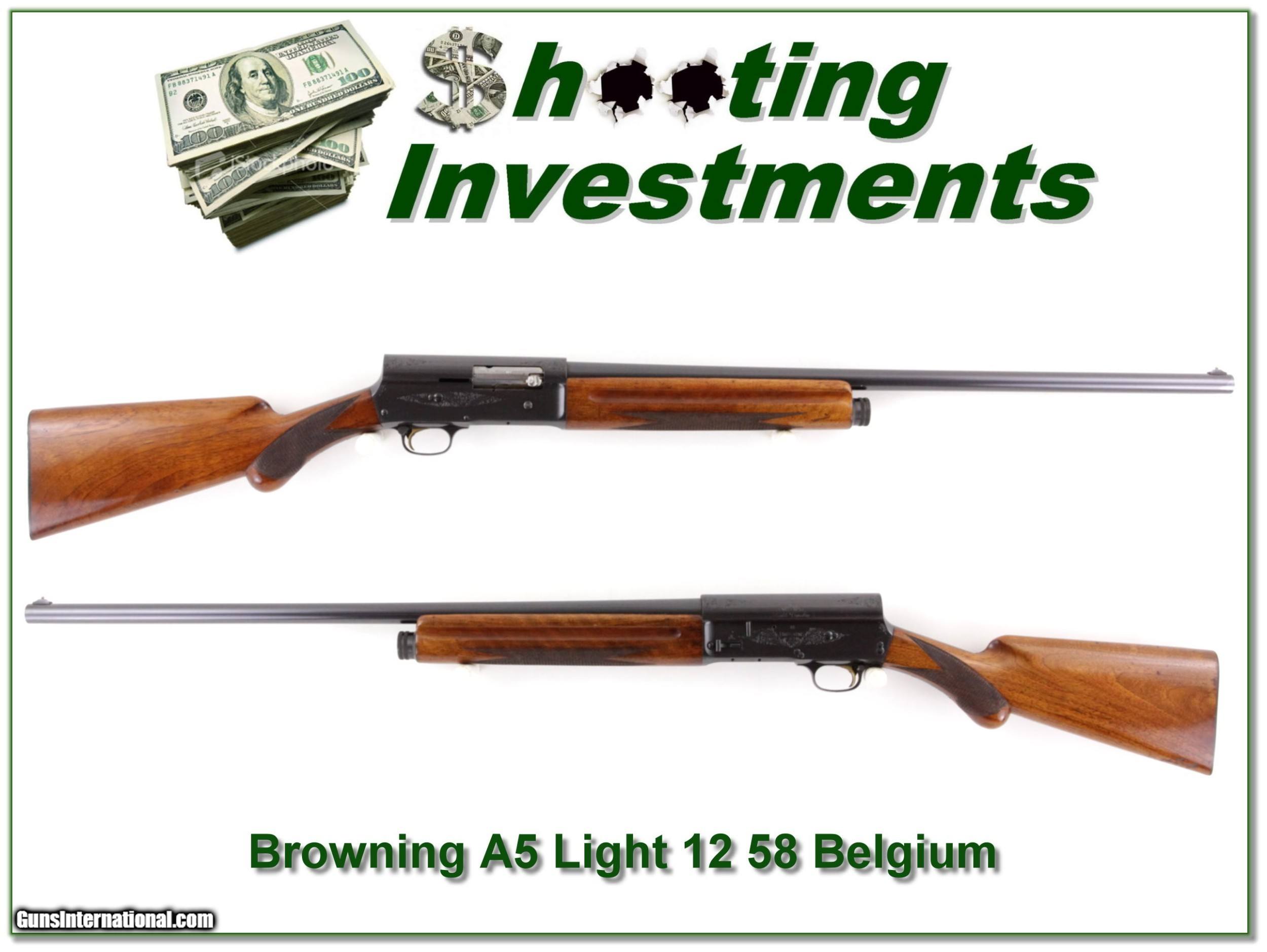 Description: This is a 1958 Belgium made Browning Light 12. It is all original with beautiful rust blue and it’s original 28in Modified St. Louis barrel. There is no edge or recoil wear on the blue and just light marks on the wood. It will make a classic hunting gun or nice addition to your collection. Shipping with insurance is $39. Please email me with any questions or larger pictures. (Consign your quality firearms with Shooting Investments for only 12%! Let me know if you have any you would like to sell!) 19-0450 Payment: Payment is by Money Order, Cashiers Check or Personal Check. I can now also accept Credit Cards (MasterCard, Visa, Discover & American Express) with a 3% convenience fee. PayPal can be used for some items but never for firearms. Shipping: The shipping charge will be listed in each description. It is $39 for most firearms. Some heavy guns or those insured for over $2000 will be higher. Shipments to Alaska and Hawaii are higher because air shipment is required. Most firearms are shipped on Tuesday and Thursday and usually in 5 days of receipt of payment. We package all shipments carefully and insure them. Optics are shipped Priority Mail and most other non-firearm shipments are shipped First Class. Returns: Our return policy is simple. If for any reason you are not pleased with your purchase, you may return your item for a full refund of purchase price. Ammunition cannot be returned. It is important to us that you are happy. Guns cannot be fired or dissembled before returning them and they must be returned in the same condition as received. Notification of a return must occur with-in 3 days of receipt at your dealer. Shipping, convenience and dealer fees are not refundable and are the responsibility of the buyer. Lay-a-way: If needed, we offer a 60 day lay-a-way option on most firearms. It is 1/3 now, 1/3 in 30 days and 1/3 in 60 days. Lay-a-way firearm sales are final and if not completed the first payment cannot be returned. Consigning your firearms with Shooting Investments: We will help you get top dollar for your firearms. While most local guns shops charge 20% or more, our fee is only 12% with a minimum of $75. At your local gun shop it might take months to sell. Selling on-line provides instant access to thousands of interested buyers. You won’t find any other on-line dealer willing to sell your firearms for only 12% or listing every gun on 3 separate s. Selling through an House typically costs the seller 15% and the buyer an addition 15% (so 30%) and you have to wait several months to sell and longer to receive funds. If properly priced, we will sell your firearms in a few weeks. Send us an email or give us a call and we’ll explain how easy it is for you to get top dollar. Trading: Trading for use is really just buying your gun to re-sell. If you have a gun you want to trade, please email a picture and we will let you know what we can give or it. You will always get more if we sell it for you on consignment. Help for California Buyers: We are happy to ship to California. It is the buyer’s responsibility to make sure any item you buy is legal in your state. We are also happy to help with your purchase of a firearm from someone other than us. If you see a gun you would like to buy but the seller can’t or won’t ship to California they can ship to use and we’ll then ship it to your California dealer. The cost for this service is only $30 + shipping. Let us know if we can help! SOLD |