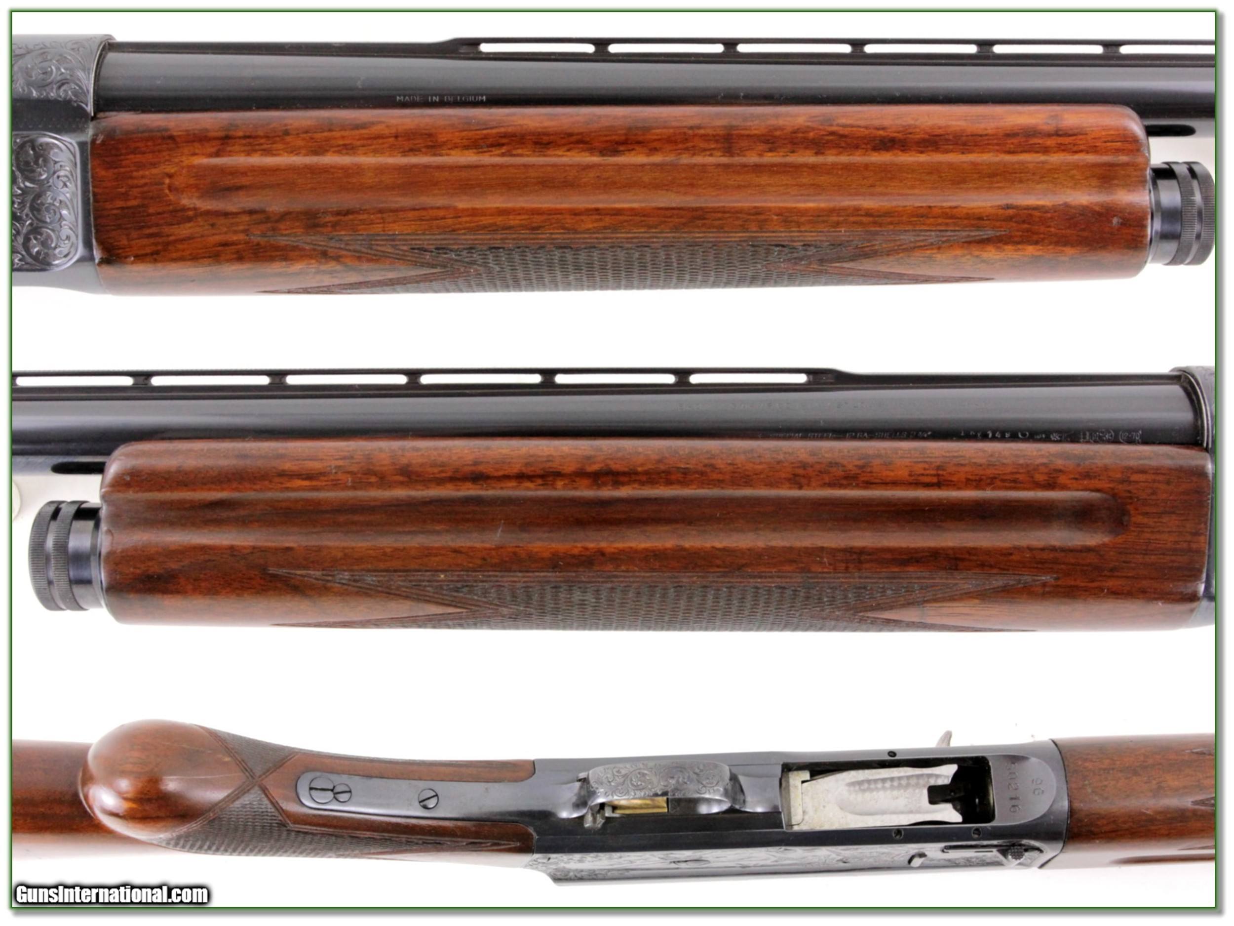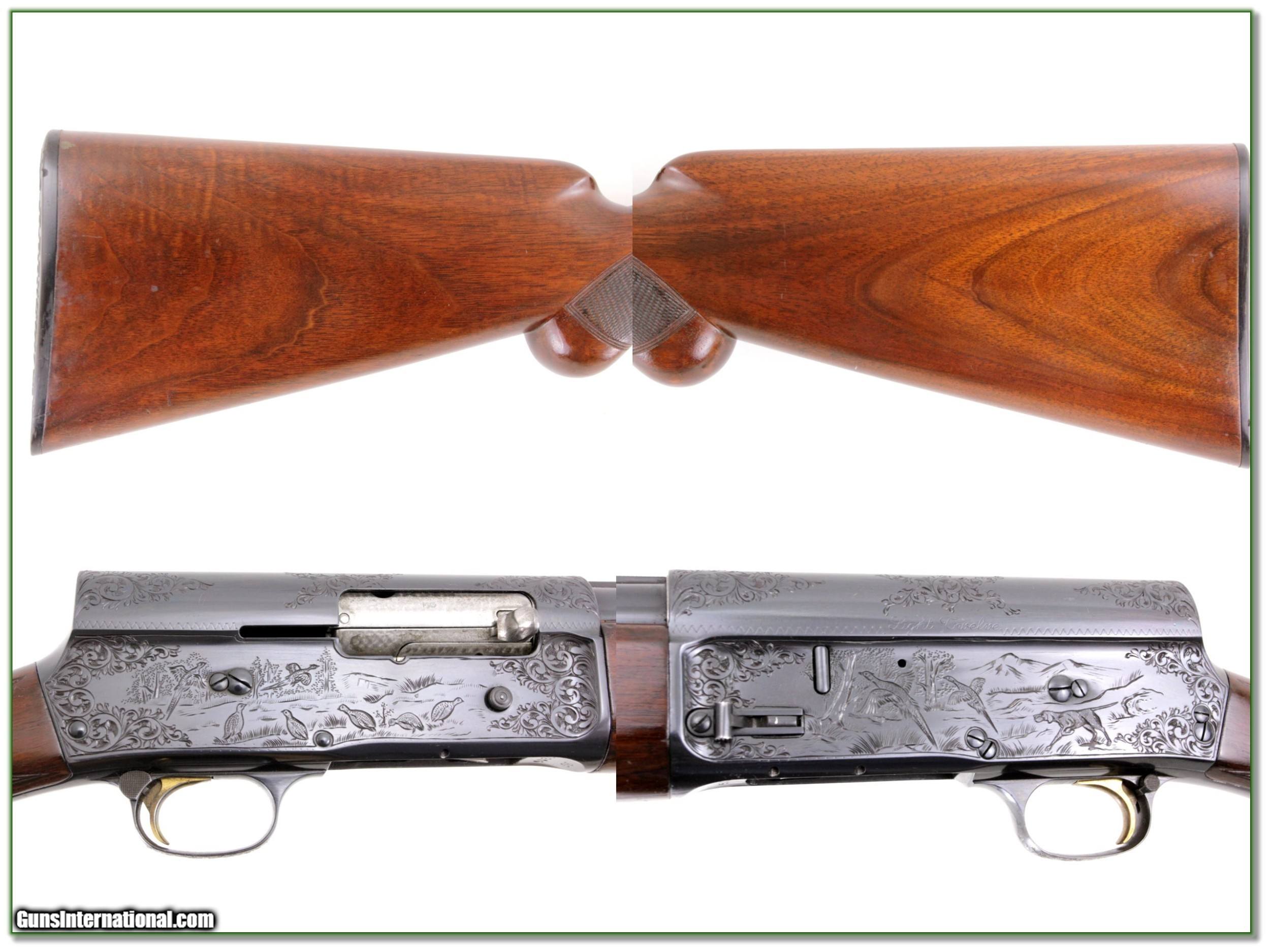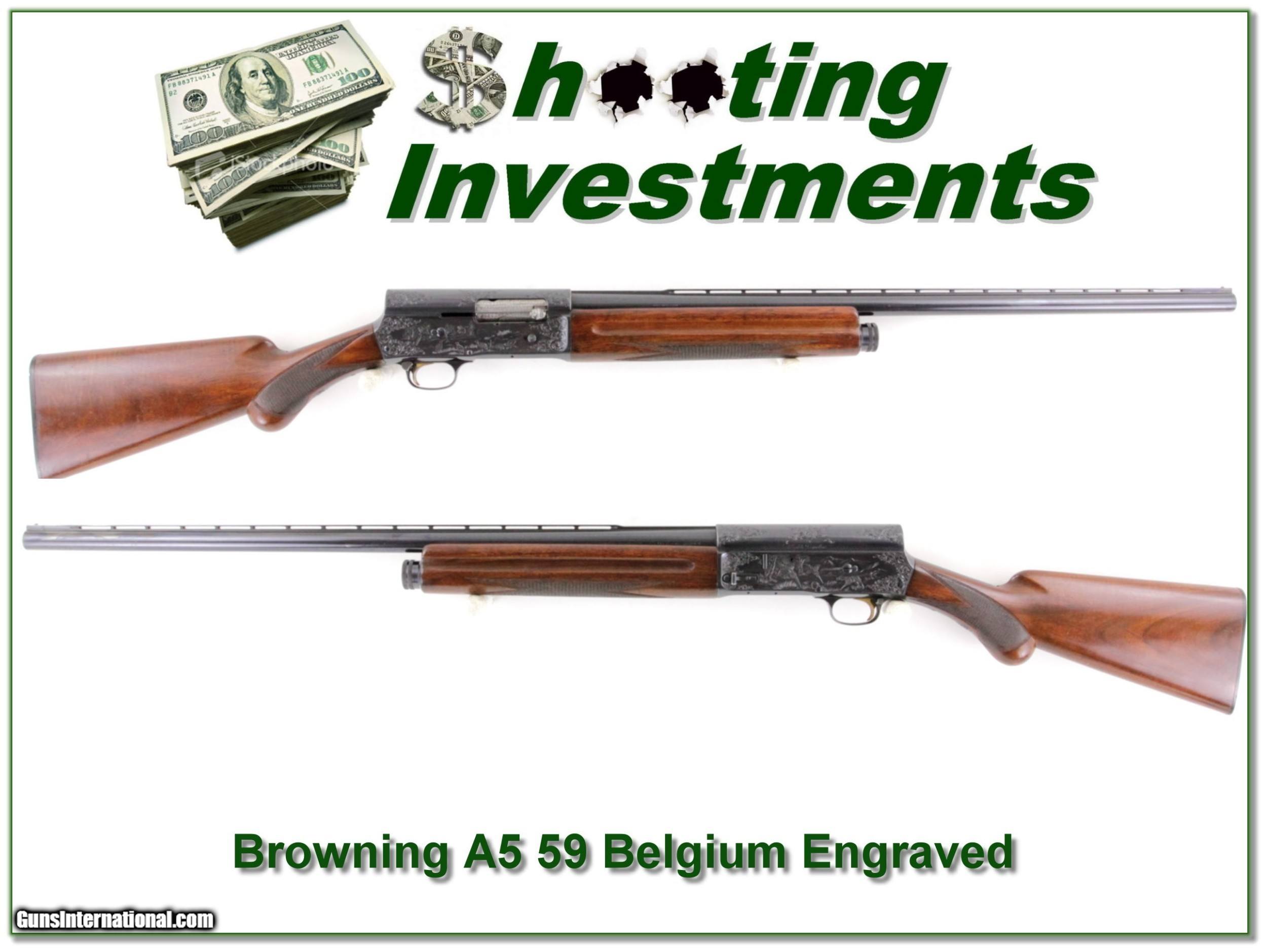 Description: Collectors, this is a beautiful and excellent condition 1959 Belgium made Browning Light 12. At some point it was expertly engraved. See details, I don’t think this was done in the factory but the engraving looks like many of the factory engravers of that era. The wood is excellent with only light handing marks. The barrel is a 28in Vent Rib full choke. This is a one of a kind A5 that would cost thousands to duplicate! Shipping with insurance is $39 (includes shipping ammo separate). Please email me with any questions or larger pictures. (Consign your quality firearms with Shooting Investments for only 12%! Let me know if you have any you would like to sell!) 19-0111 Payment: Payment is by Money Order, Cashiers Check or Personal Check. I can now also accept MasterCard and Visa with a 3% convenience fee. PayPal can be used for some items but never firearms. Please let us know if you would like to pay via PayPal. Shipping: The shipping charge will be listed in each description. It is $39 for most long guns and $29 for most handguns. Some heavy guns or those insured for over $2000 will be higher. Shipments to Alaska and Hawaii are higher because air shipment is required. Most firearms are shipped on Tuesday and Thursday and usually in 5 days of receipt of payment. We package all shipments carefully and insure them. For long guns you can purchase a new Plano case for $19. They now cost us $22 when buying 100 at a time. Optics are shipped Priority Mail and most other non-firearm shipments are shipped First Class. Returns: Our return policy is simple. If for any reason you are not pleased with your purchase, you may return your item for a full refund of purchase price. Ammunition cannot be returned. It is important to us that you are happy. Guns cannot be fired or dissembled before returning them and they must be returned in the same condition as received. Notification of a return must occur with-in 3 days of receipt at your dealer. Shipping, convenience and dealer fees are not refundable and are the responsibility of the buyer. Lay-a-way: If needed, we offer a 60 day lay-a-way option on most firearms. It is 1/3 now, 1/3 in 30 days and 1/3 in 60 days. Lay-a-way firearm sales are final and if not completed the first payment cannot be returned. Consigning your firearms with Shooting Investments: We will help you get top dollar for your firearms. While most local guns shops charge 20% or more, our fee is only 12% with a minimum of $75. At your local gun shop it might take months to sell. Selling on-line provides instant access to thousands of interested buyers. You won’t find any other on-line dealer willing to sell your firearms for only 12% or listing every gun on 3 separate s. Selling through an House typically costs the seller 15% and the buyer an addition 15% (so 30%) and you have to wait several months to sell and longer to receive funds. If properly priced, we will sell your firearms in a few weeks. Send us an email or give us a call and we’ll explain how easy it is for you to get top dollar. Trading: Trading for use is really just buying your gun to re-sell. If you have a gun you want to trade, please email a picture and we will let you know what we can give or it. You will always get more if we sell it for you on consignment. Help for California Buyers: We are happy to ship to California. It is the buyer’s responsibility to make sure any item you buy is legal in your state. We are also happy to help with your purchase of a firearm from someone other than us. If you see a gun you would like to buy but the seller can’t or won’t ship to California they can ship to use and we’ll then ship it to your California dealer. The cost for this service is only $30 + shipping. Let us know if we can help! SOLD |