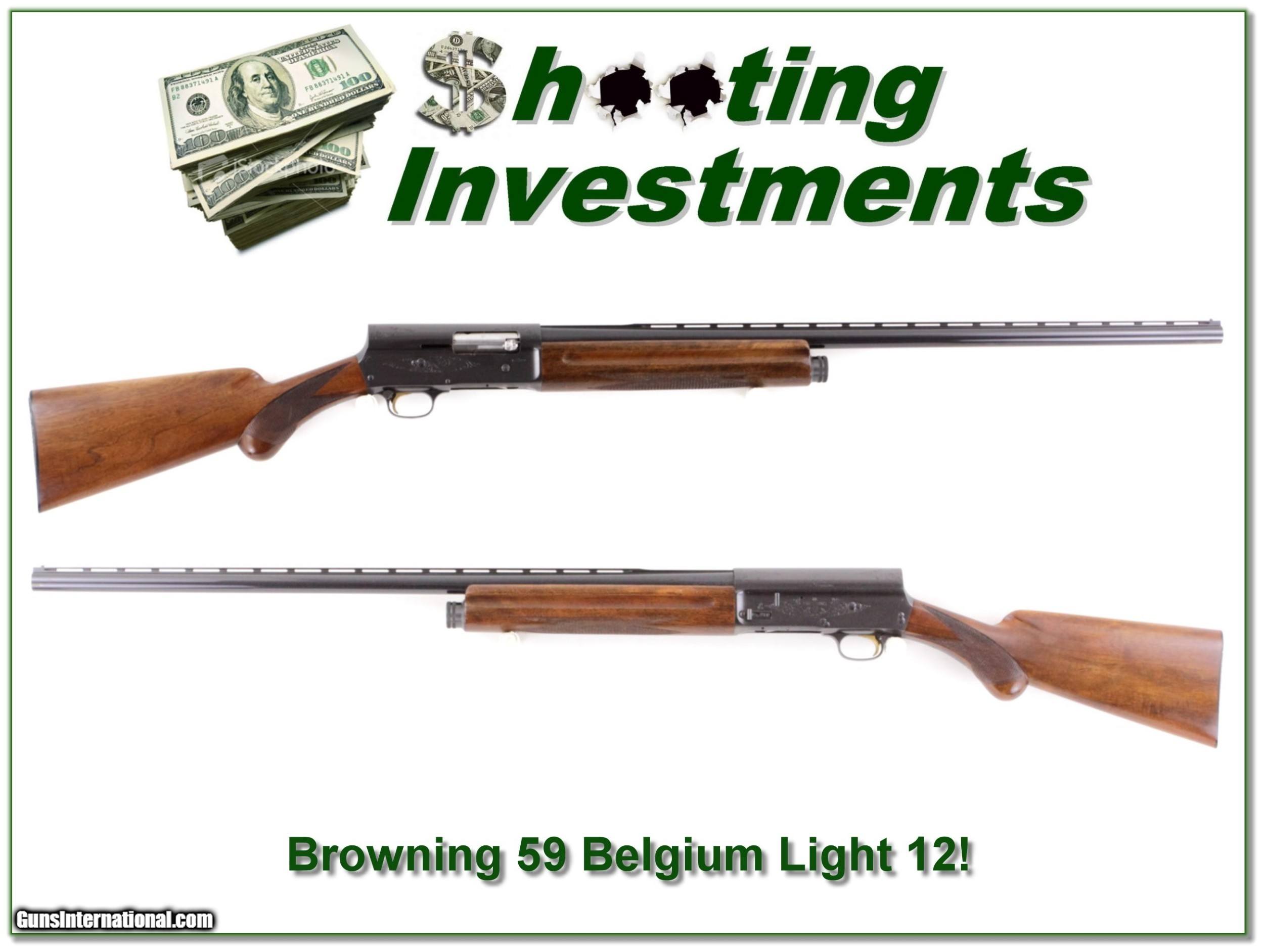 Description: Collectors, this is a near new all-original 1959 Belgium made Browning Light 12! It has no edge, recoil or gold trigger wear. I’m sure only a few shells fired at most! It has a Vent Rib 30in full barrel. The wood has no marks of note! You will look hard to find another as nice. Shipping with insurance is $39. Please email me with any questions or larger pictures. (Consign your quality firearms with Shooting Investments for only 12%! Let me know if you have any you would like to sell!) 18-0982 Payment: Payment is by Money Order, Cashiers Check or Personal Check. I can now also accept MasterCard and Visa with a 3% convenience fee. PayPal can be used for some items but never firearms. Please let us know if you would like to pay via PayPal. Shipping: The shipping charge will be listed in each description. It is $39 for most long guns and $29 for most handguns. Some heavy guns or those insured for over $2000 will be higher. Shipments to Alaska and Hawaii are higher because air shipment is required. Most firearms are shipped on Tuesday and Thursday and usually in 5 days of receipt of payment. We package all shipments carefully and insure them. For long guns you can purchase a new Plano case for $19. They now cost us $22 when buying 100 at a time. Optics are shipped Priority Mail and most other non-firearm shipments are shipped First Class. Returns: Our return policy is simple. If for any reason you are not pleased with your purchase, you may return your item for a full refund of purchase price. Ammunition cannot be returned. It is important to us that you are happy. Guns cannot be fired or dissembled before returning them and they must be returned in the same condition as received. Notification of a return must occur with-in 3 days of receipt at your dealer. Shipping, convenience and dealer fees are not refundable and are the responsibility of the buyer. Lay-a-way: If needed, we offer a 60 day lay-a-way option on most firearms. It is 1/3 now, 1/3 in 30 days and 1/3 in 60 days. Lay-a-way firearm sales are final and if not completed the first payment cannot be returned. Consigning your firearms with Shooting Investments: We will help you get top dollar for your firearms. While most local guns shops charge 20% or more, our fee is only 12% with a minimum of $75. At your local gun shop it might take months to sell. Selling on-line provides instant access to thousands of interested buyers. You won’t find any other on-line dealer willing to sell your firearms for only 12% or listing every gun on 3 separate s. Selling through an House typically costs the seller 15% and the buyer an addition 15% (so 30%) and you have to wait several months to sell and longer to receive funds. If properly priced, we will sell your firearms in a few weeks. Send us an email or give us a call and we’ll explain how easy it is for you to get top dollar. Trading: Trading for use is really just buying your gun to re-sell. If you have a gun you want to trade, please email a picture and we will let you know what we can give or it. You will always get more if we sell it for you on consignment. Help for California Buyers: We are happy to ship to California. It is the buyer’s responsibility to make sure any item you buy is legal in your state. We are also happy to help with your purchase of a firearm from someone other than us. If you see a gun you would like to buy but the seller can’t or won’t ship to California they can ship to use and we’ll then ship it to your California dealer. The cost for this service is only $30 + shipping. Let us know if we can help! SOLD |