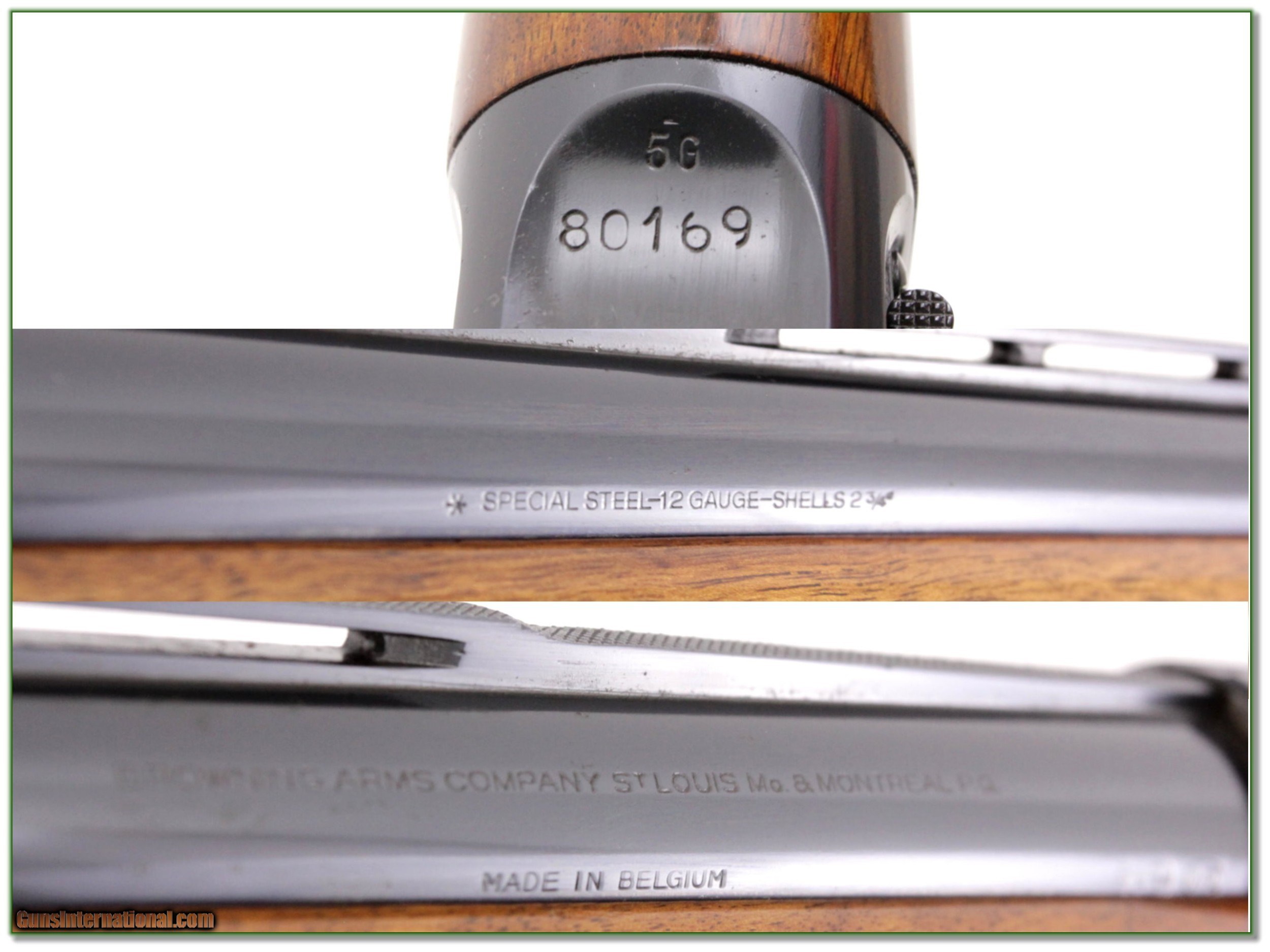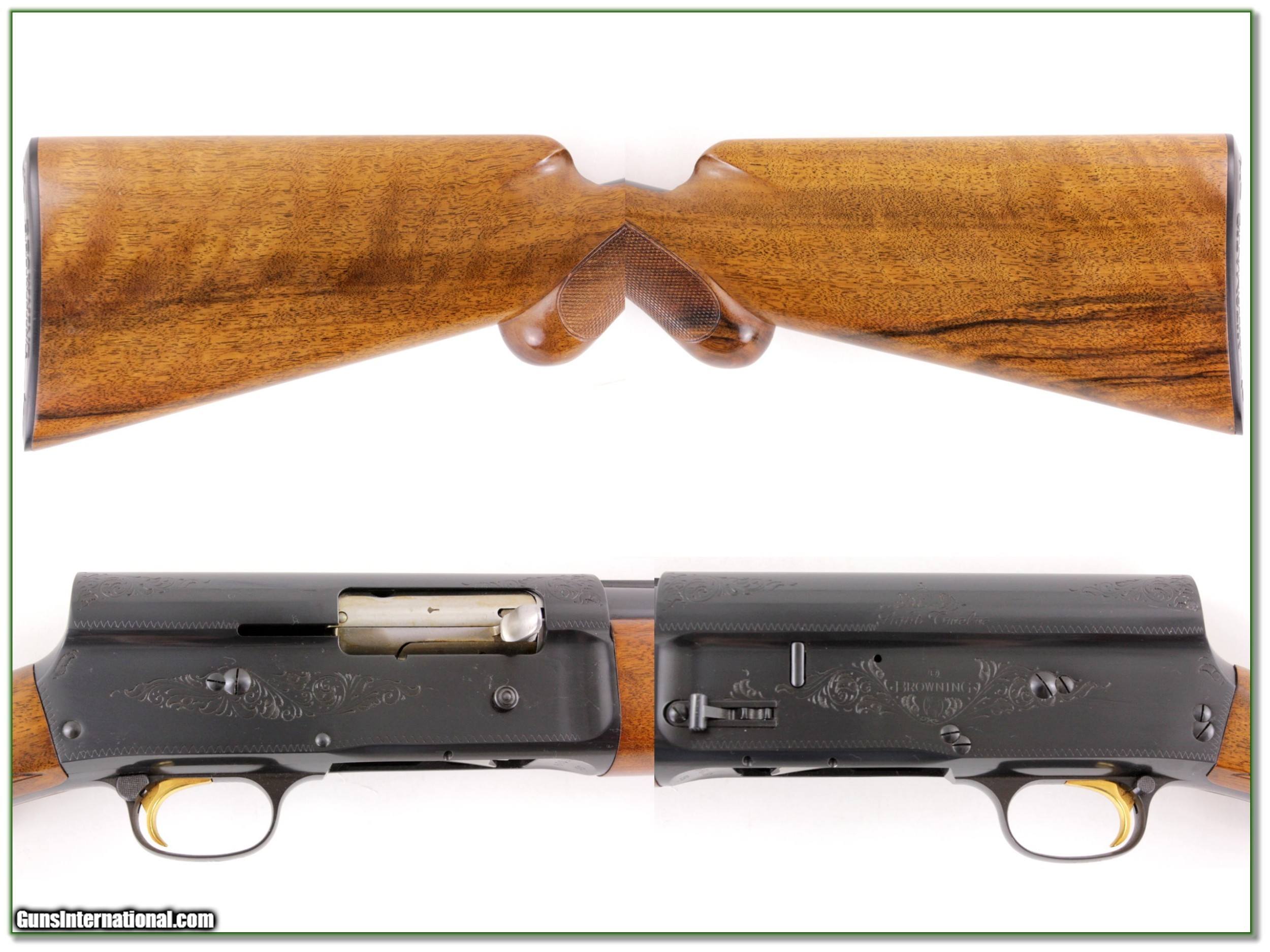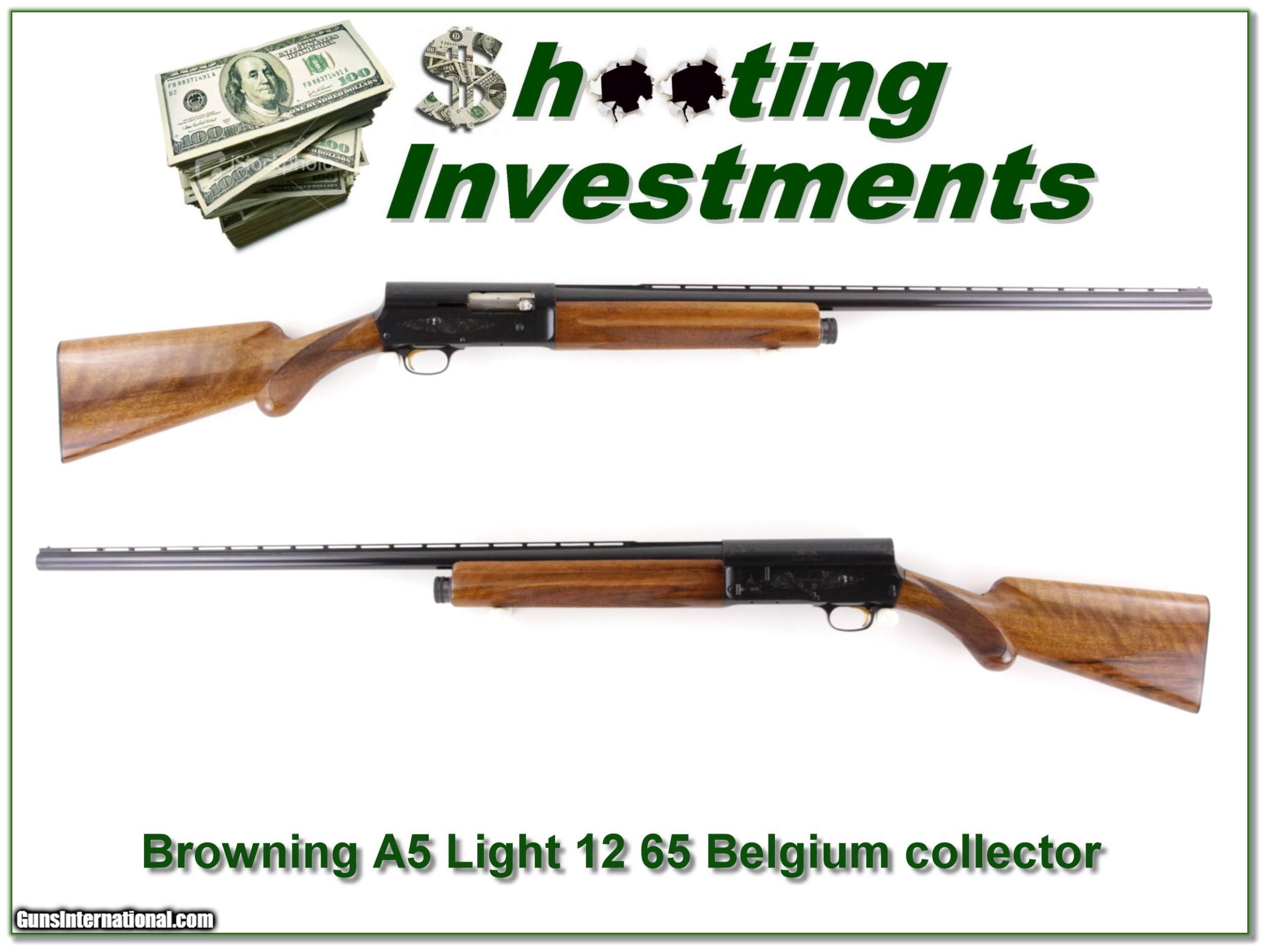 Description: This is a beautiful 1965 Belgium made Browning A5 Light 12. It has outstanding wood colors and grain and from the bolt face looks unfired. Blue and wood are as new with no marks of note. The barrel is a Vent Rib 30in full. I am selling this one on consignment and as such lay-a-way can’t be used. It does of course have the standard 3-day inspection. Shipping with insurance is $39. Please email me with any questions or larger pictures. (Consign your quality firearms with Shooting Investments for only 12%! Let me know if you have any you would like to sell!) 19-0425 Payment: Payment is by Money Order, Cashiers Check or Personal Check. I can now also accept Credit Cards (MasterCard, Visa, Discover & American Express) with a 3% convenience fee. PayPal can be used for some items but never for firearms. Shipping: The shipping charge will be listed in each description. It is $39 for most firearms. Some heavy guns or those insured for over $2000 will be higher. Shipments to Alaska and Hawaii are higher because air shipment is required. Most firearms are shipped on Tuesday and Thursday and usually in 5 days of receipt of payment. We package all shipments carefully and insure them. Optics are shipped Priority Mail and most other non-firearm shipments are shipped First Class. Returns: Our return policy is simple. If for any reason you are not pleased with your purchase, you may return your item for a full refund of purchase price. Ammunition cannot be returned. It is important to us that you are happy. Guns cannot be fired or dissembled before returning them and they must be returned in the same condition as received. Notification of a return must occur with-in 3 days of receipt at your dealer. Shipping, convenience and dealer fees are not refundable and are the responsibility of the buyer. Lay-a-way: If needed, we offer a 60 day lay-a-way option on most firearms. It is 1/3 now, 1/3 in 30 days and 1/3 in 60 days. Lay-a-way firearm sales are final and if not completed the first payment cannot be returned. Consigning your firearms with Shooting Investments: We will help you get top dollar for your firearms. While most local guns shops charge 20% or more, our fee is only 12% with a minimum of $75. At your local gun shop it might take months to sell. Selling on-line provides instant access to thousands of interested buyers. You won’t find any other on-line dealer willing to sell your firearms for only 12% or listing every gun on 3 separate s. Selling through an House typically costs the seller 15% and the buyer an addition 15% (so 30%) and you have to wait several months to sell and longer to receive funds. If properly priced, we will sell your firearms in a few weeks. Send us an email or give us a call and we’ll explain how easy it is for you to get top dollar. Trading: Trading for use is really just buying your gun to re-sell. If you have a gun you want to trade, please email a picture and we will let you know what we can give or it. You will always get more if we sell it for you on consignment. Help for California Buyers: We are happy to ship to California. It is the buyer’s responsibility to make sure any item you buy is legal in your state. We are also happy to help with your purchase of a firearm from someone other than us. If you see a gun you would like to buy but the seller can’t or won’t ship to California they can ship to use and we’ll then ship it to your California dealer. The cost for this service is only $30 + shipping. Let us know if we can help! SOLD |