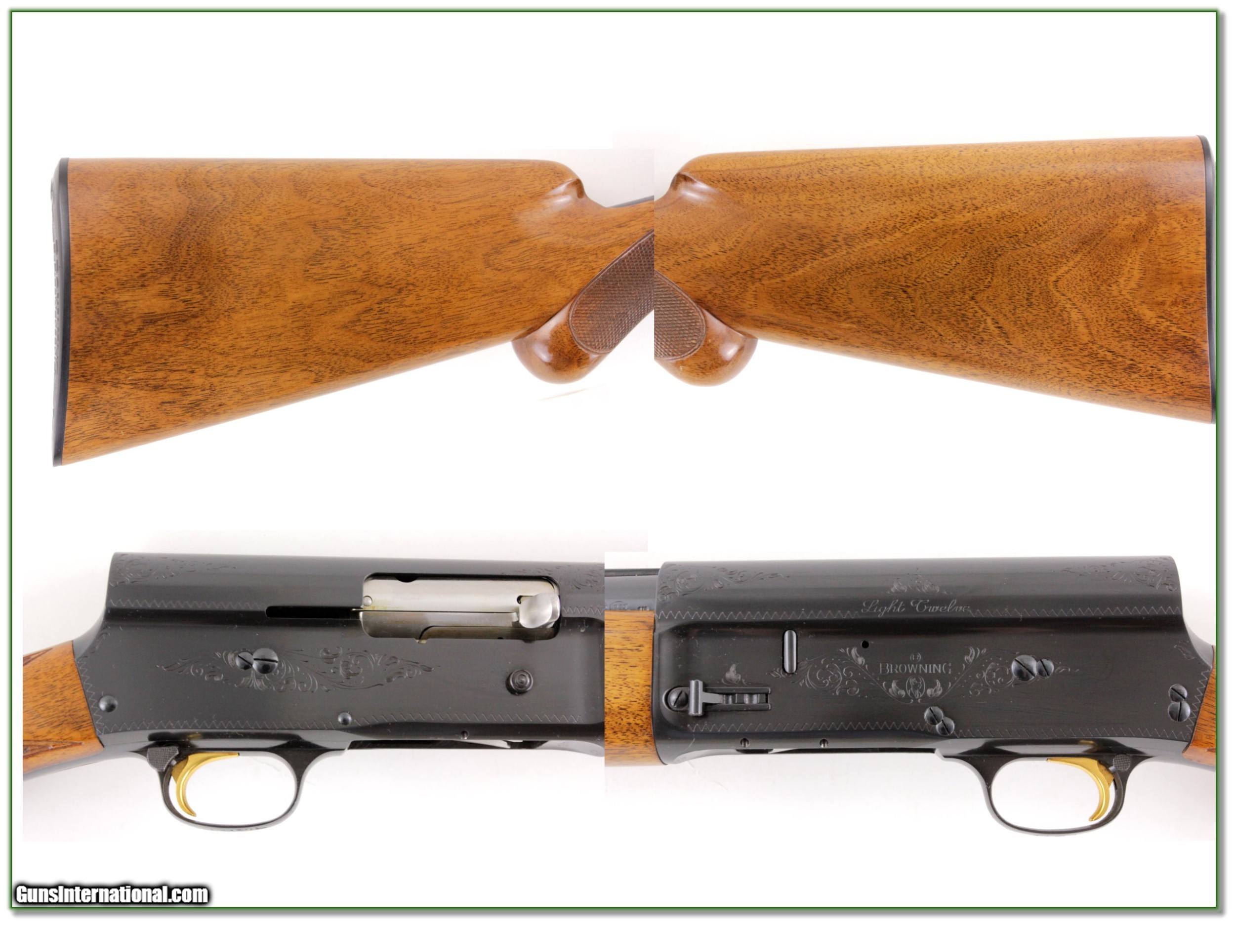 Description: Collectors, this is a 1966 Belgium made Browning A5 Light 12. It is the last year of the Belgium Round Knobs. From the bolt face I believe this one was never fired! It is in top collector condition with just the lightest of storage marks on the stock edge. It has beautiful honey blond wood and a 28in Vent Rib Modified barrel! It will make a fine addition to your collection! I am selling this one on consignment and as such lay-a-way can’t be used. It does of course have the standard 3-day inspection. Shipping and insurance is $39. Please email me with any questions or larger pictures. (Consign your quality firearms with Shooting Investments for only 12%! Let me know if you have any you would like to sell!) 19-0431 Payment: Payment is by Money Order, Cashiers Check or Personal Check. I can now also accept Credit Cards (MasterCard, Visa, Discover & American Express) with a 3% convenience fee. PayPal can be used for some items but never for firearms. Shipping: The shipping charge will be listed in each description. It is $39 for most firearms. Some heavy guns or those insured for over $2000 will be higher. Shipments to Alaska and Hawaii are higher because air shipment is required. Most firearms are shipped on Tuesday and Thursday and usually in 5 days of receipt of payment. We package all shipments carefully and insure them. Optics are shipped Priority Mail and most other non-firearm shipments are shipped First Class. Returns: Our return policy is simple. If for any reason you are not pleased with your purchase, you may return your item for a full refund of purchase price. Ammunition cannot be returned. It is important to us that you are happy. Guns cannot be fired or dissembled before returning them and they must be returned in the same condition as received. Notification of a return must occur with-in 3 days of receipt at your dealer. Shipping, convenience and dealer fees are not refundable and are the responsibility of the buyer. Lay-a-way: If needed, we offer a 60 day lay-a-way option on most firearms. It is 1/3 now, 1/3 in 30 days and 1/3 in 60 days. Lay-a-way firearm sales are final and if not completed the first payment cannot be returned. Consigning your firearms with Shooting Investments: We will help you get top dollar for your firearms. While most local guns shops charge 20% or more, our fee is only 12% with a minimum of $75. At your local gun shop it might take months to sell. Selling on-line provides instant access to thousands of interested buyers. You won’t find any other on-line dealer willing to sell your firearms for only 12% or listing every gun on 3 separate s. Selling through an House typically costs the seller 15% and the buyer an addition 15% (so 30%) and you have to wait several months to sell and longer to receive funds. If properly priced, we will sell your firearms in a few weeks. Send us an email or give us a call and we’ll explain how easy it is for you to get top dollar. Trading: Trading for use is really just buying your gun to re-sell. If you have a gun you want to trade, please email a picture and we will let you know what we can give or it. You will always get more if we sell it for you on consignment. Help for California Buyers: We are happy to ship to California. It is the buyer’s responsibility to make sure any item you buy is legal in your state. We are also happy to help with your purchase of a firearm from someone other than us. If you see a gun you would like to buy but the seller can’t or won’t ship to California they can ship to use and we’ll then ship it to your California dealer. The cost for this service is only $30 + shipping. Let us know if we can help! SOLD |