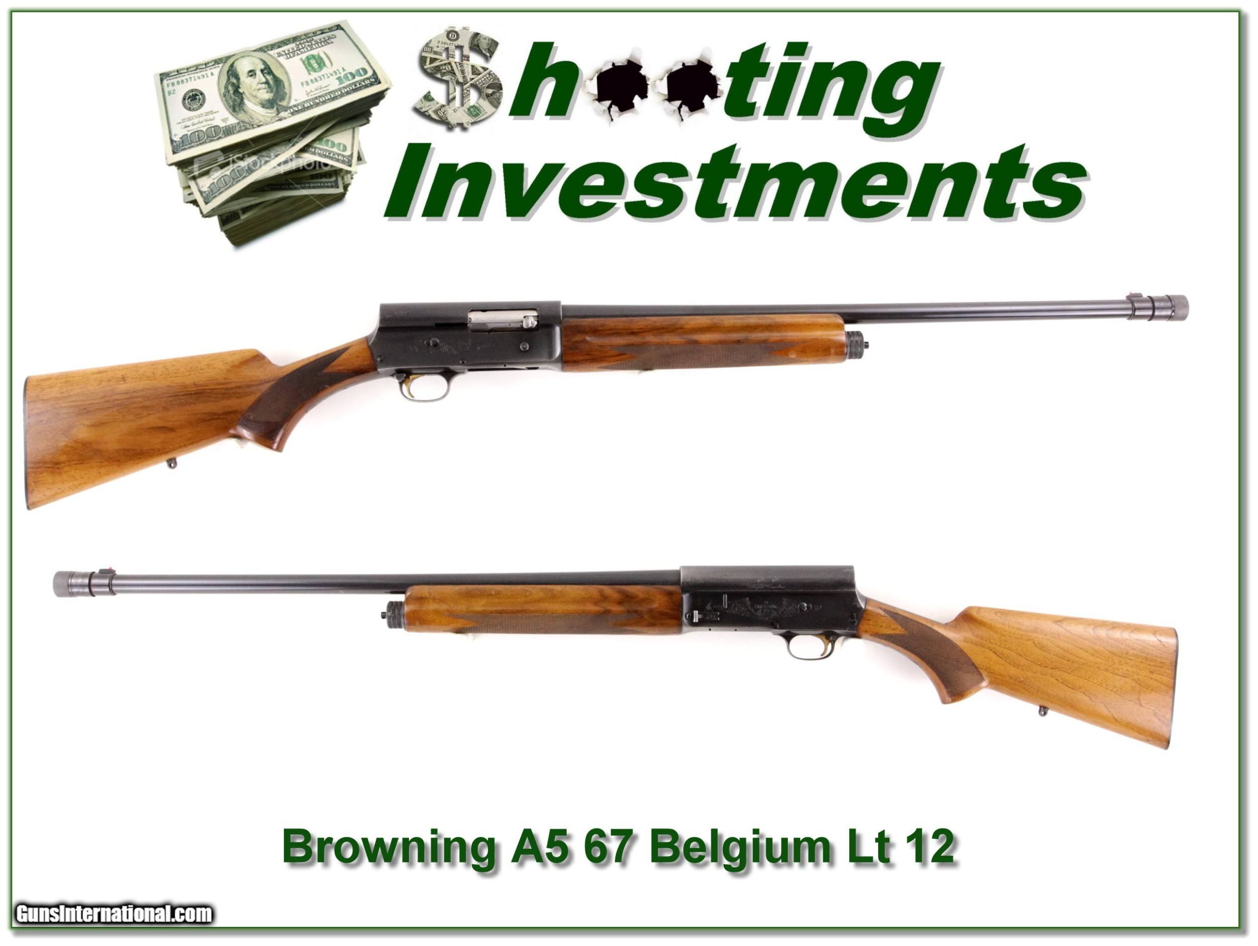 Description: This is a 1967 Belgium made Browning A5 Light 12. It has nicely figured honey blond wood. It is solid with some use as seen and has a 28in Modified barrel with added adjustable choke. It will make a classic hunting gun. Shipping with insurance is $39. Please email me with any questions or larger pictures. (Consign your quality firearms with Shooting Investments for only 12%! Let me know if you have any you would like to sell!) 17-1173 Payment: Payment is by Money Order, Cashiers Check or Personal Check. I can now also accept Credit Cards (MasterCard, Visa, Discover & American Express) with a 3% convenience fee. PayPal can be used for some items but never for firearms. Shipping: The shipping charge will be listed in each description. It is $39 for most firearms. Some heavy guns or those insured for over $2000 will be higher. Shipments to Alaska and Hawaii are higher because air shipment is required. Most firearms are shipped on Tuesday and Thursday and usually in 5 days of receipt of payment. We package all shipments carefully and insure them. Optics are shipped Priority Mail and most other non-firearm shipments are shipped First Class. Returns: Our return policy is simple. If for any reason you are not pleased with your purchase, you may return your item for a full refund of purchase price. Ammunition cannot be returned. It is important to us that you are happy. Guns cannot be fired or dissembled before returning them and they must be returned in the same condition as received. Notification of a return must occur with-in 3 days of receipt at your dealer. Shipping, convenience and dealer fees are not refundable and are the responsibility of the buyer. Lay-a-way: If needed, we offer a 60 day lay-a-way option on most firearms. It is 1/3 now, 1/3 in 30 days and 1/3 in 60 days. Lay-a-way firearm sales are final and if not completed the first payment cannot be returned. Consigning your firearms with Shooting Investments: We will help you get top dollar for your firearms. While most local guns shops charge 20% or more, our fee is only 12% with a minimum of $75. At your local gun shop it might take months to sell. Selling on-line provides instant access to thousands of interested buyers. You won’t find any other on-line dealer willing to sell your firearms for only 12% or listing every gun on 3 separate s. Selling through an House typically costs the seller 15% and the buyer an addition 15% (so 30%) and you have to wait several months to sell and longer to receive funds. If properly priced, we will sell your firearms in a few weeks. Send us an email or give us a call and we’ll explain how easy it is for you to get top dollar. Trading: Trading for use is really just buying your gun to re-sell. If you have a gun you want to trade, please email a picture and we will let you know what we can give or it. You will always get more if we sell it for you on consignment. Help for California Buyers: We are happy to ship to California. It is the buyer’s responsibility to make sure any item you buy is legal in your state. We are also happy to help with your purchase of a firearm from someone other than us. If you see a gun you would like to buy but the seller can’t or won’t ship to California they can ship to use and we’ll then ship it to your California dealer. The cost for this service is only $30 + shipping. Let us know if we can help! SOLD |