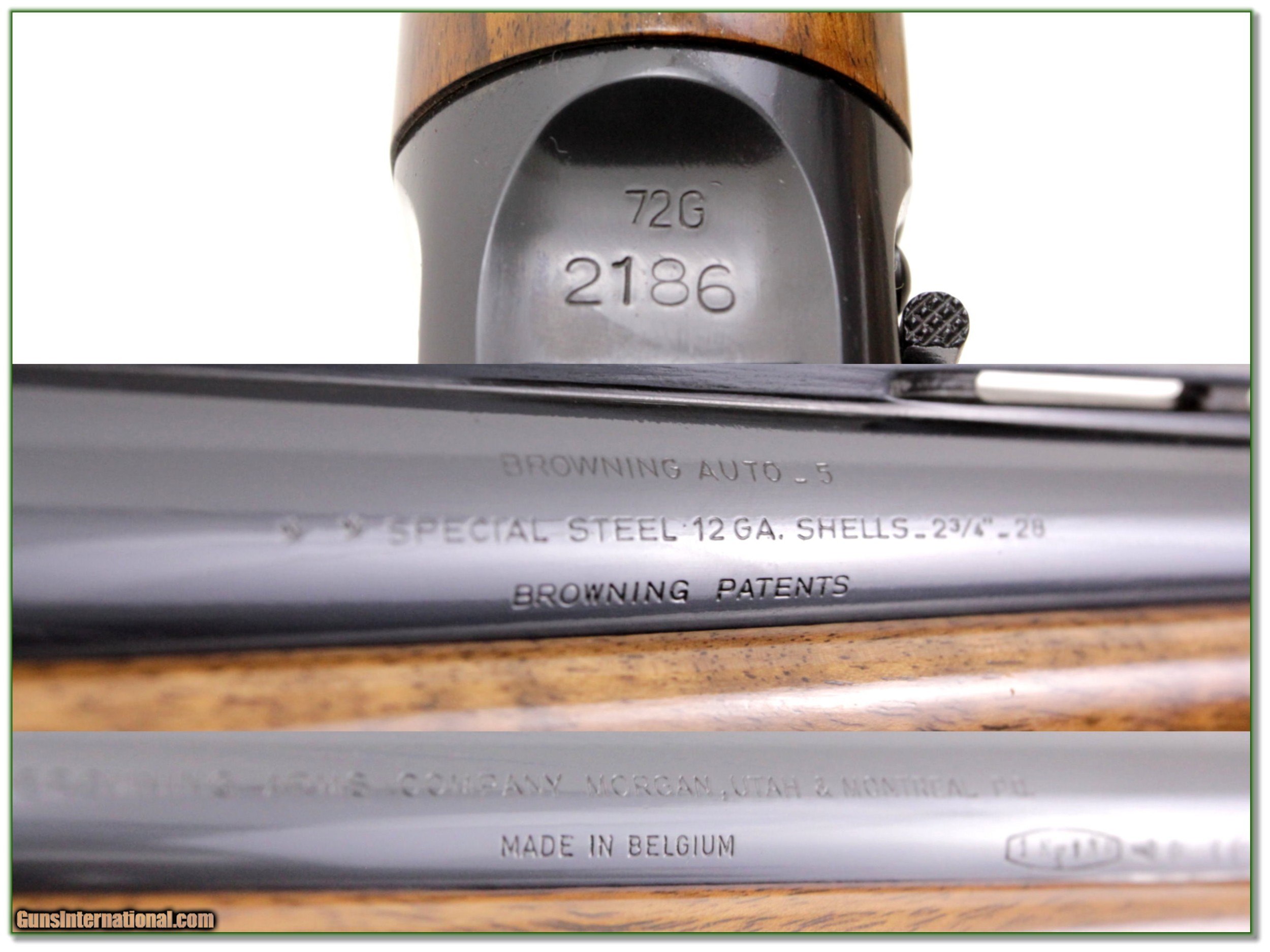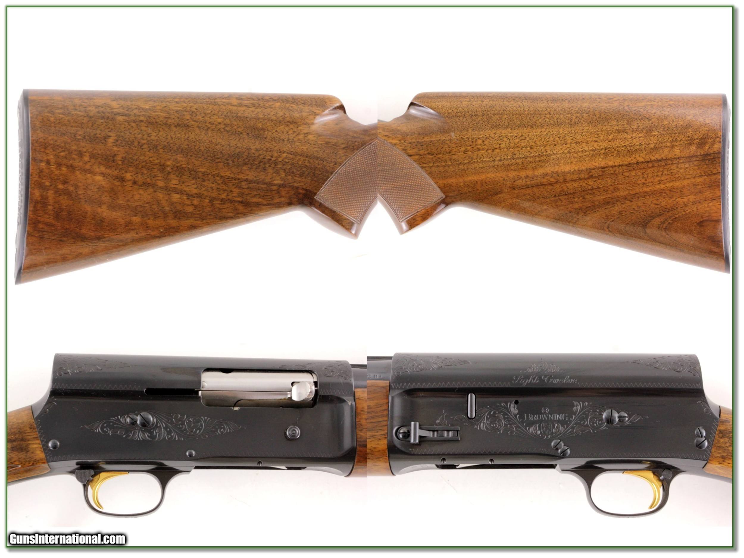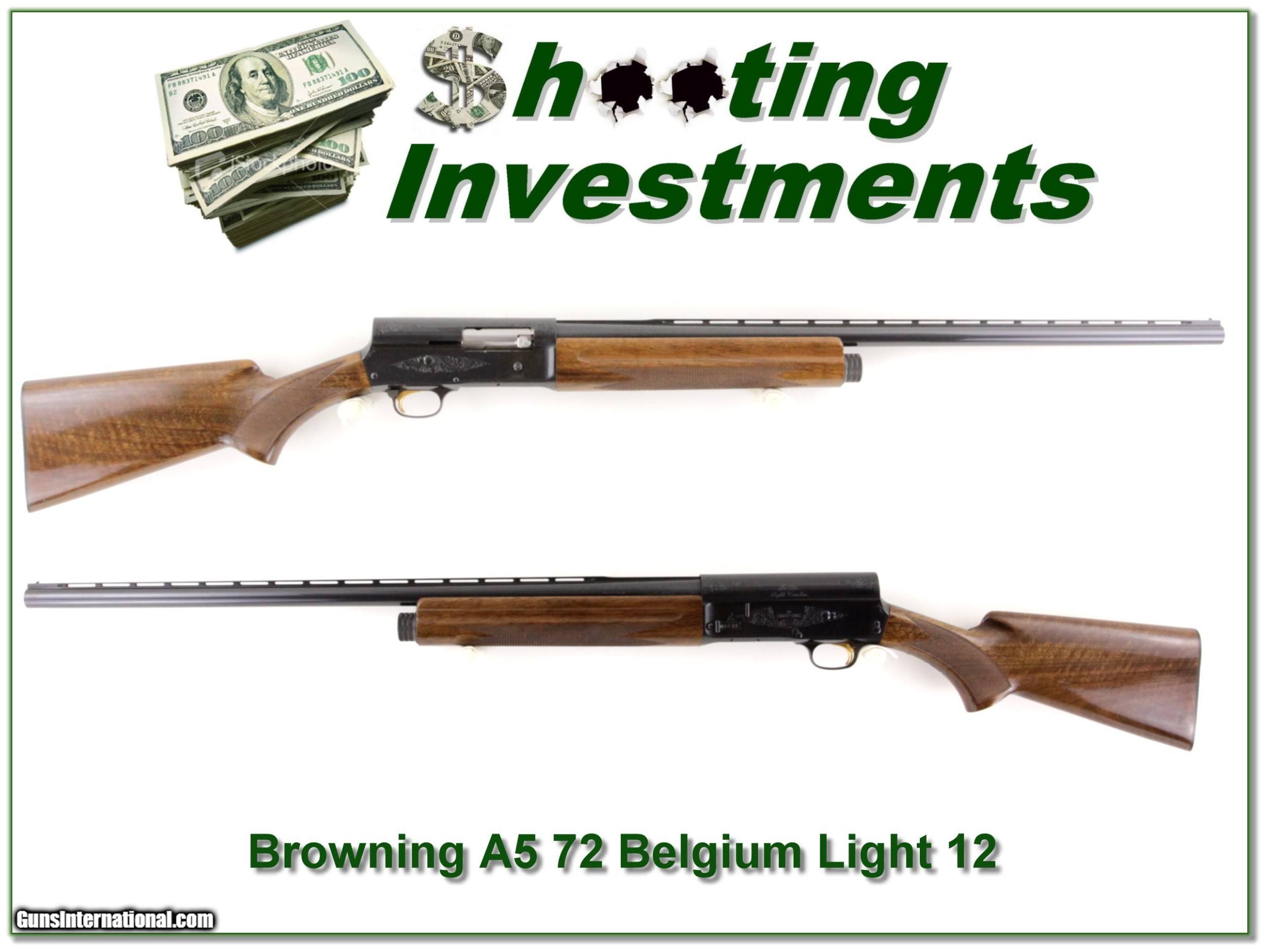 Description: This is an excellent condition Browning A5 Light 12. It was made in Belgium in 1972 and is in collector condition! It has a 28in Vent Rib Modified barrel and the blue is as new with no edge, recoil or gold trigger wear. I find only a couple insignificant handing marks. It will make a fine addition to your collection! I am selling this one on consignment and as such lay-a-way can’t be used. It does of course have the standard 3-day inspection. Shipping with insurance is $39. Please email me with any questions or larger pictures. (Consign your quality firearms with Shooting Investments for only 12%! Let me know if you have any you would like to sell!) 19-1072 Payment: Payment is by Money Order, Cashiers Check or Personal Check. I can now also accept Credit Cards (MasterCard, Visa, Discover & American Express) with a 3% convenience fee. PayPal can be used for some items but never for firearms. Shipping: The shipping charge will be listed in each description. It is $39 for most firearms. Some heavy guns or those insured for over $2000 will be higher. Shipments to Alaska and Hawaii are higher because air shipment is required. Most firearms are shipped on Tuesday and Thursday and usually in 5 days of receipt of payment. We package all shipments carefully and insure them. Optics are shipped Priority Mail and most other non-firearm shipments are shipped First Class. Returns: Our return policy is simple. If for any reason you are not pleased with your purchase, you may return your item for a full refund of purchase price. Ammunition cannot be returned. It is important to us that you are happy. Guns cannot be fired or dissembled before returning them and they must be returned in the same condition as received. Notification of a return must occur with-in 3 days of receipt at your dealer. Shipping, convenience and dealer fees are not refundable and are the responsibility of the buyer. Lay-a-way: If needed, we offer a 60 day lay-a-way option on most firearms. It is 1/3 now, 1/3 in 30 days and 1/3 in 60 days. Lay-a-way firearm sales are final and if not completed the first payment cannot be returned. Consigning your firearms with Shooting Investments: We will help you get top dollar for your firearms. While most local guns shops charge 20% or more, our fee is only 12% with a minimum of $75. At your local gun shop it might take months to sell. Selling on-line provides instant access to thousands of interested buyers. You won’t find any other on-line dealer willing to sell your firearms for only 12% or listing every gun on 3 separate s. Selling through an House typically costs the seller 15% and the buyer an addition 15% (so 30%) and you have to wait several months to sell and longer to receive funds. If properly priced, we will sell your firearms in a few weeks. Send us an email or give us a call and we’ll explain how easy it is for you to get top dollar. Trading: Trading for use is really just buying your gun to re-sell. If you have a gun you want to trade, please email a picture and we will let you know what we can give or it. You will always get more if we sell it for you on consignment. Help for California Buyers: We are happy to ship to California. It is the buyer’s responsibility to make sure any item you buy is legal in your state. We are also happy to help with your purchase of a firearm from someone other than us. If you see a gun you would like to buy but the seller can’t or won’t ship to California they can ship to use and we’ll then ship it to your California dealer. The cost for this service is only $30 + shipping. Let us know if we can help! SOLD |