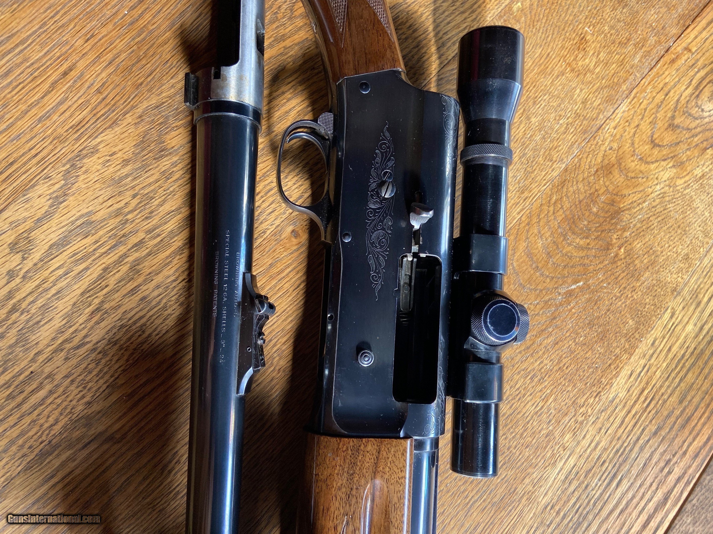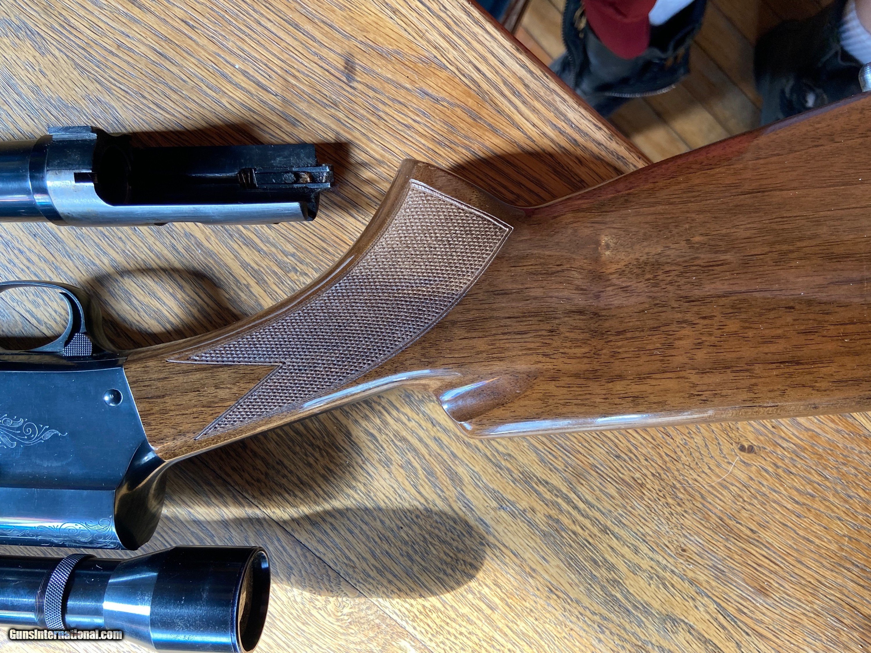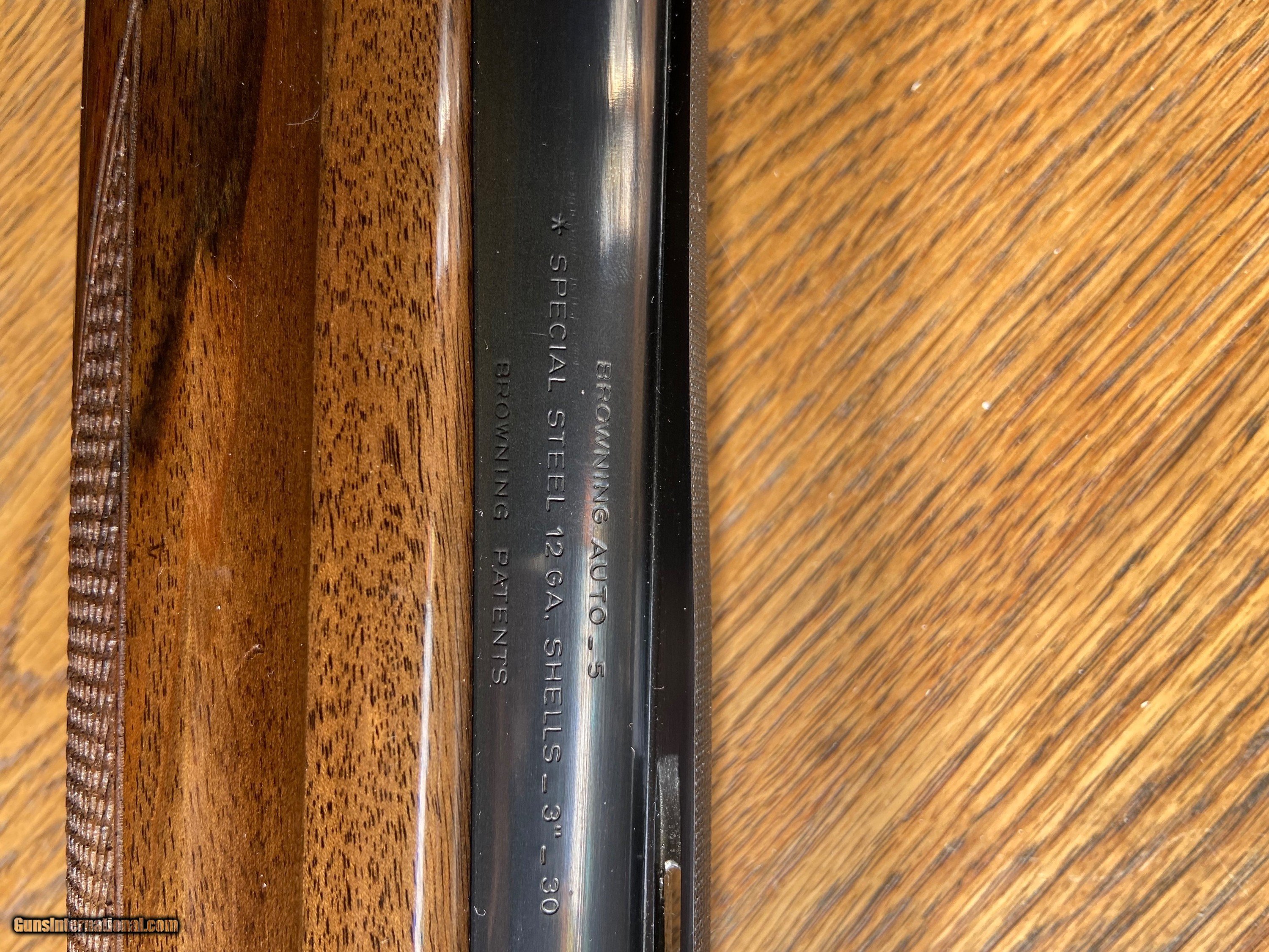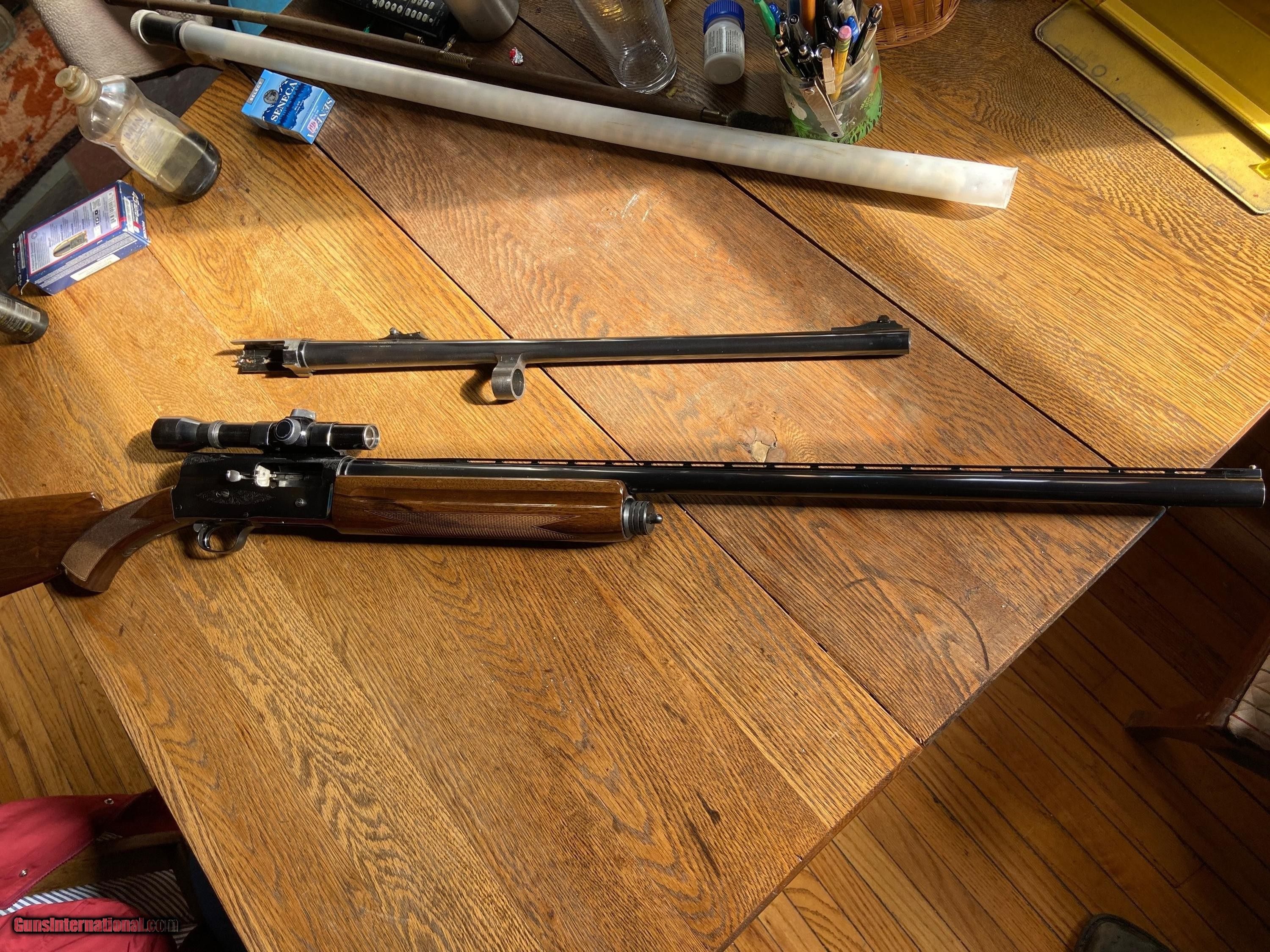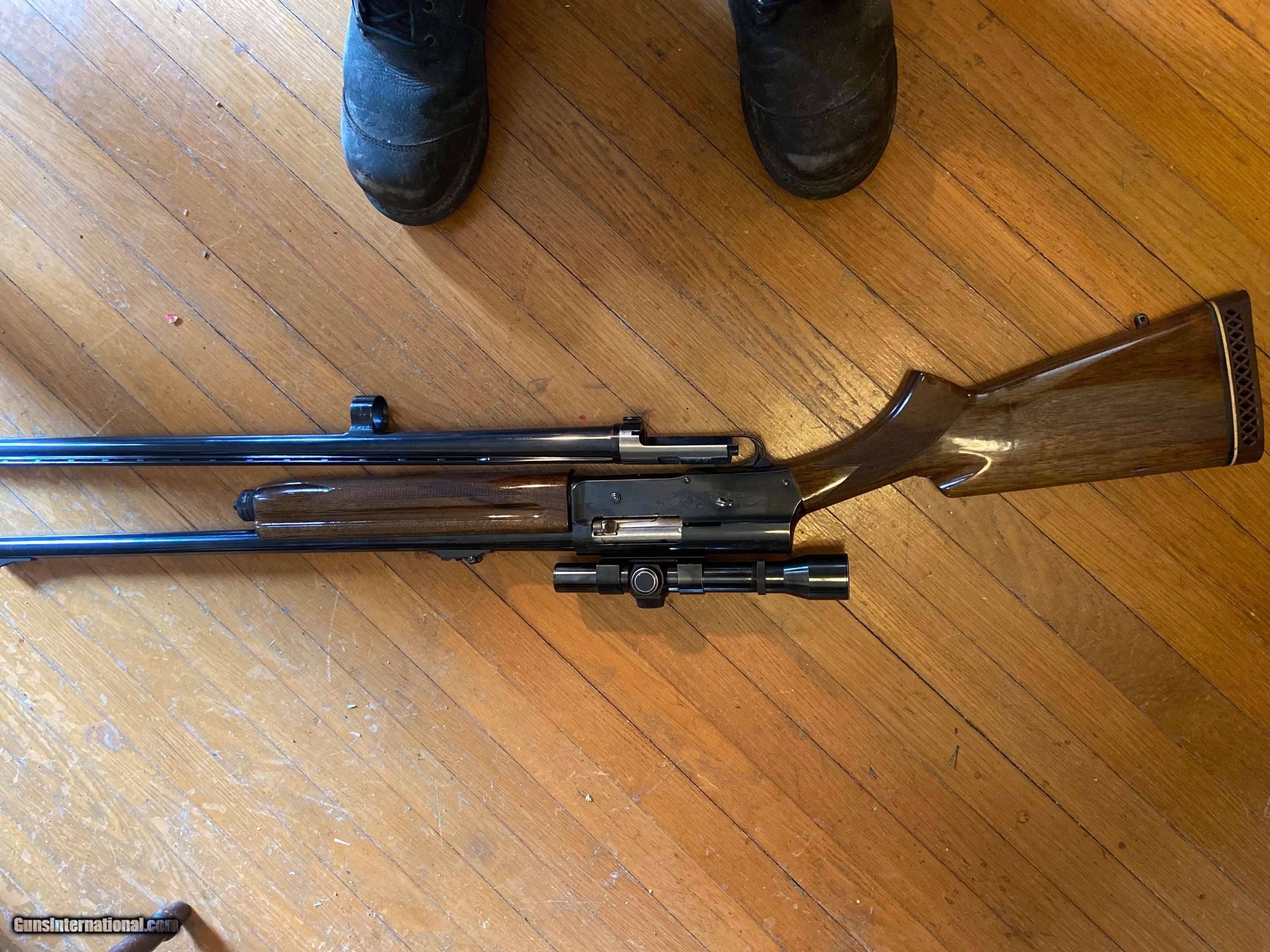 Description: A5 Browning 2 2/3"--3" Magnum in excellent condition xfull choke ? .685 vent rib 29.75"inches With rare Buck special Browning 23 .5" inch slug barrel with factory front and rear sites this Gone was drilled and tapped for a Weaver quick detached mount with Weaver El Paso. Correct two and three-quarter power scope..gun was manufactured in 1975 an interesting story is my friend shot New York State record nontypical buck in 1985 with that shotgun . Been hunted but you would never know ..this above 95% condition overall Barrels are non-matching (Wood metal condition excellent) buyer pays shipping And sent to his FFL dealer Any questions or additional photos contact Jeff 716-883-9527 SOLD Curio/Relic: Yes Manufacturer: FN Browning Model: FN Browning a-5 magnum With buck Special barrel Chambers: 3” Condition: Excellent Metal Condition: Excellent Wood Condition: Excellent Bore Condition: Mirror |