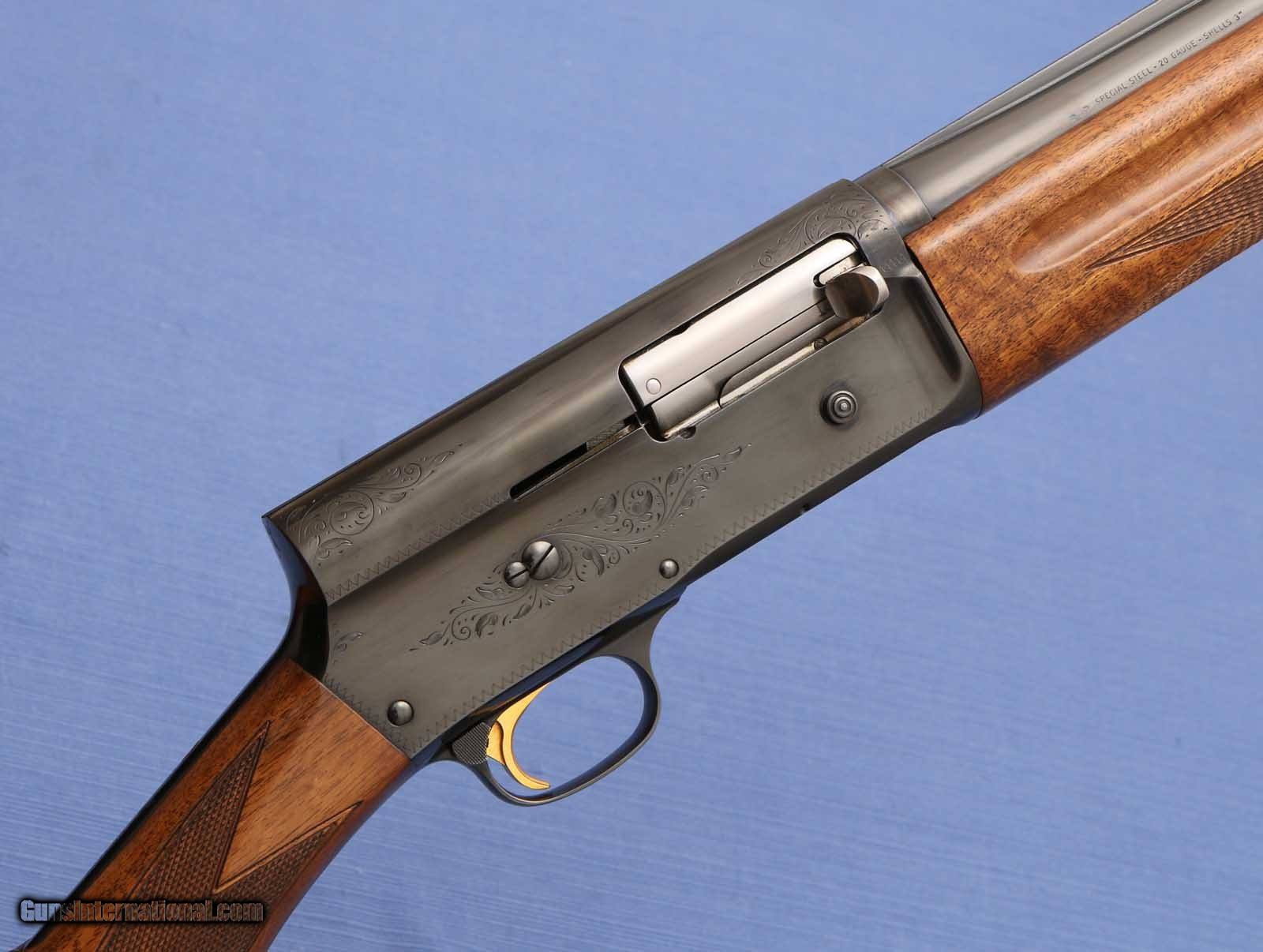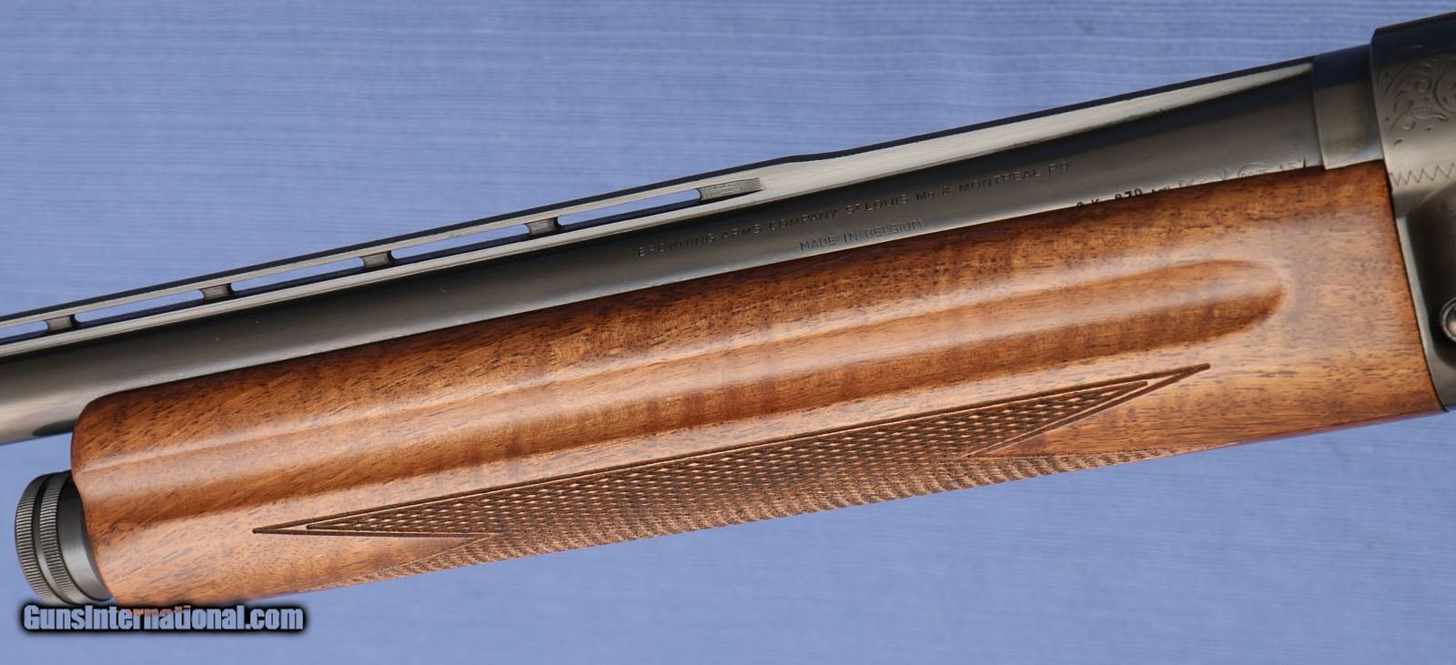 Description: 1969 - Browning A-5 - Magnum Twenty - 20ga, 3", 26" Modified Choke, Vent Rib. Barrel is proofed 1969. Looks and Feels like a BRAND NEW GUN! Seriously appears unfired! Metal is 99++% - I can't find a mark anywhere! Forearm is FLAWLESS! Butt Stock has a couple of minor handling marks on it - depressions in the finish. If you want one of these to shoot, you'll never find a better one to start with. If it were any better, you wouldn't want to shoot it!