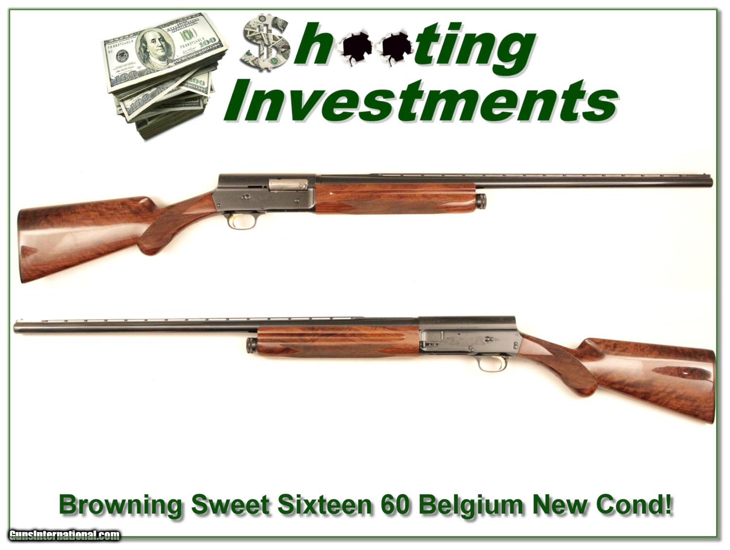 Description: This is a Browning Sweet Sixteen with wood that is MUCH nicer than most and you will look a long time to find one as nice. This one was made in Belgium in 1960 and has a 28in Vent Rib Modified. This one was fully restored years ago by Arts and has no wear or use since. There is no loss of engraving and the rust blue is perfect. The checkering is perfect. This one will make a prized addition to your collection. I am selling it on consignment and as such lay-a-way can’t be used. It does of course have the standard 3 day inspection. Shipping and insurance is $40 or $18 more if you want it shipped in a new Plano hard case. Please email me with any questions or larger pictures. (I now consign quality firearms only 10%! Let me know if you have any you would like to sell!) [15-0931] Terms & Conditions Payment: Payment is by Money Order, Cashiers Check or Personal Check. I can now also accept MasterCard and Visa with a 3% convenience fee. PayPal can be used for some items but never firearms. Please let us know if you would like to pay via PayPal. Shipping: The shipping charge will be listed in each description. It is $30 for most guns. Some heavy guns or those insured for over $2000 may be higher. Shipments to Alaska and Hawaii are higher because air shipment is required. Most firearms are shipped within 5 days of receipt of payment. We prefer shipping at the beginning of the week to avoid firearms in transit over weekends. We package all shipments carefully and insure them for the full purchase price, rounded up to the next $100. In the unlikely event that damage occurs, it is important that you save all packaging material for the claims process. Optics are shipped Priority Mail and most other non-firearm shipments are shipped First Class. Returns: Our return policy is simple. If for any reason you are not pleased with your purchase, you may return your item for a refund. The only exception is ammunition, it cannot be returned. It is important to us that you are happy. Guns cannot be fired or dissembled before returning them and must be returned in the same condition as received. Notification of a return must occur with-in 3 days of receipt at your dealer. Shipping, convenience and dealer fees are not refundable and are the responsibility of the buyer. Lay-a-way: If needed, we offer a 60 day lay-a-way option on most firearms. It is 1/3 now, 1/3 in 30 days and 1/3 in 60 days. Lay-a-way firearm sales are final. Consigning your firearms with Shooting Investments: We will help you get top dollar for your firearms. While most local guns shops charge 20% or more, our fee is only 10% with a minimum of $50. At your local gun shop it might take months to sell. Selling on-line provides instant access to thousands of interested buyers. You won’t find any other on-line dealer willing to sell your firearms for only 10% or listing every gun on 4 separate s. Selling through an House typically costs 15% and you have to wait several months to sell and longer to receive funds. If properly priced, we will sell your firearms in a week or two. Send us an email or give us a call and we’ll explain how easy it is for you to get top dollar. Trading: We collect guns and usually just trade for guns we want to add to our collections. We often sell guns for others wanting to purchase one of ours. We find this the most fair to both of us. Our Commission is only 10% and we hold the gun you want until yours sells. Please contact us if you want to sell one of yours to buy one of ours. Help for California Buyers: We are happy to ship to California. It is the buyer’s responsibility to make sure any item you buy is legal in your state. We are also happy to help with your purchase of a firearm from someone other than us. If you see a gun you would like to buy but the seller can’t or won’t ship to California we can help. You buy the gun and have it shipped to us. We’ll then ship it to your California dealer. The cost for this service is only $30 + shipping. Let me know if we can help! SOLD |