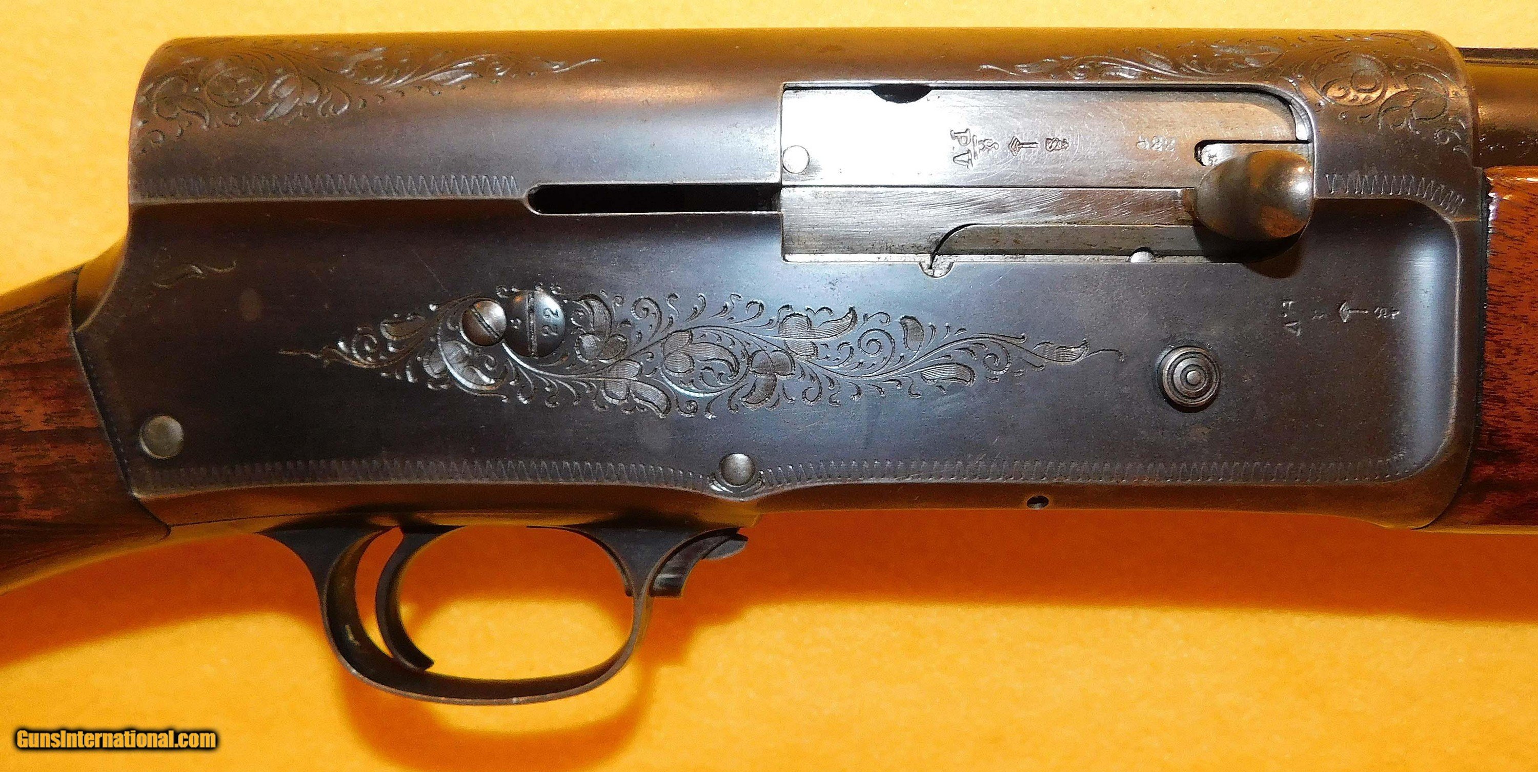 Description: BROWNING A5 IN 12 GA.CAL., WITH 26" BARREL. COLOR BLUE. CONDITION 75%. SERIAL NUMBER 185822. BROWNING MODEL A5 IN 12 GAUGE CALIBER, SINGLE BEAD ROLLED RIB SHINY BORE BARREL WITH A POLY CHOKE ADDED, WOOD IS GOOD, COSMETICALLY CHALLENGED MECHANICALLY SOUND, 75% OVERALL CONDITION, OUR STOCK # D1098 SOLD |