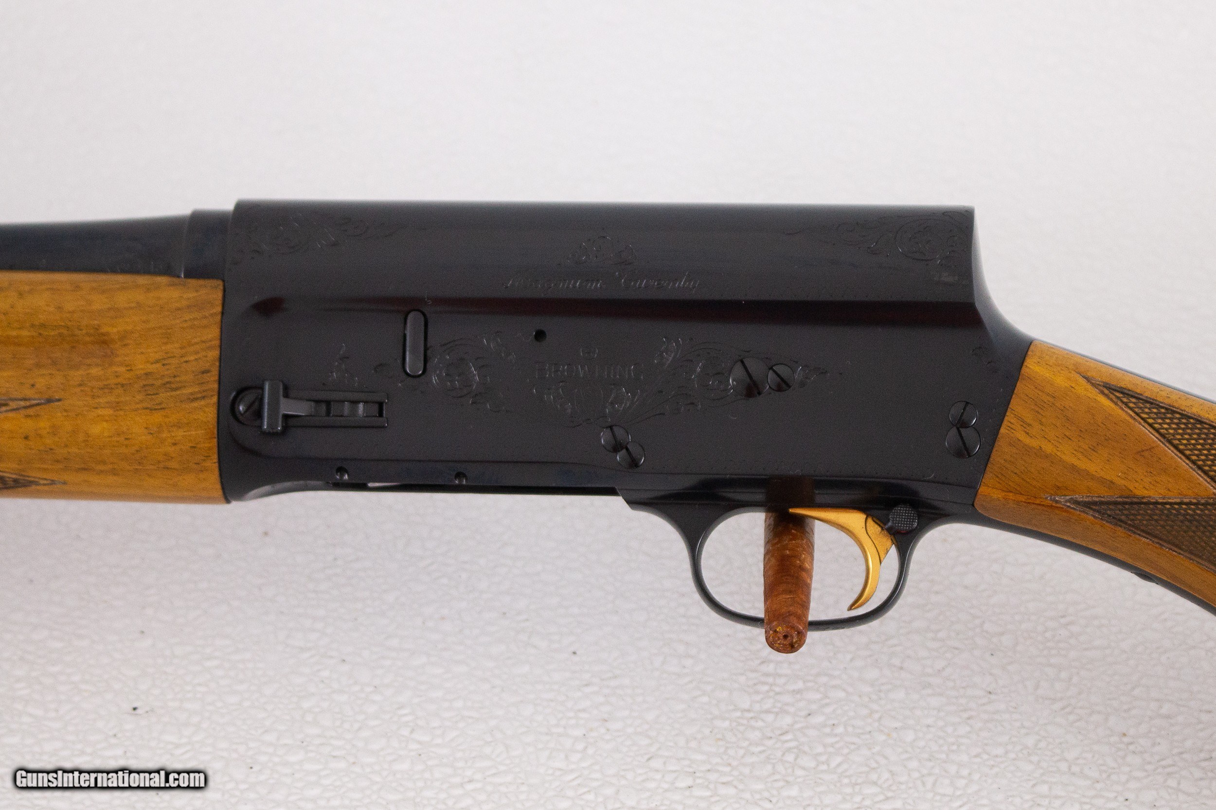 Description: MADE IN BELGIUM IN 1971. BARREL IS 28'' WITH A MATTE RIB AND CHOKED FULL. FULL RESTORATION. PLEASE ADD $50 FOR SHIPPING. SOLD Curio/Relic: Yes Shotgun Gauge: 20 Gauge Manufacturer: BROWNING Model: AUTO 5 Condition: EXCELLENT Metal Condition: EXCELLENT Wood Condition: EXCELLENT Bore Condition: EXCELLENT Action: SEMI Triggers: SINGLE/GOLD LOP: 14 1/4'' Extras: NONE |