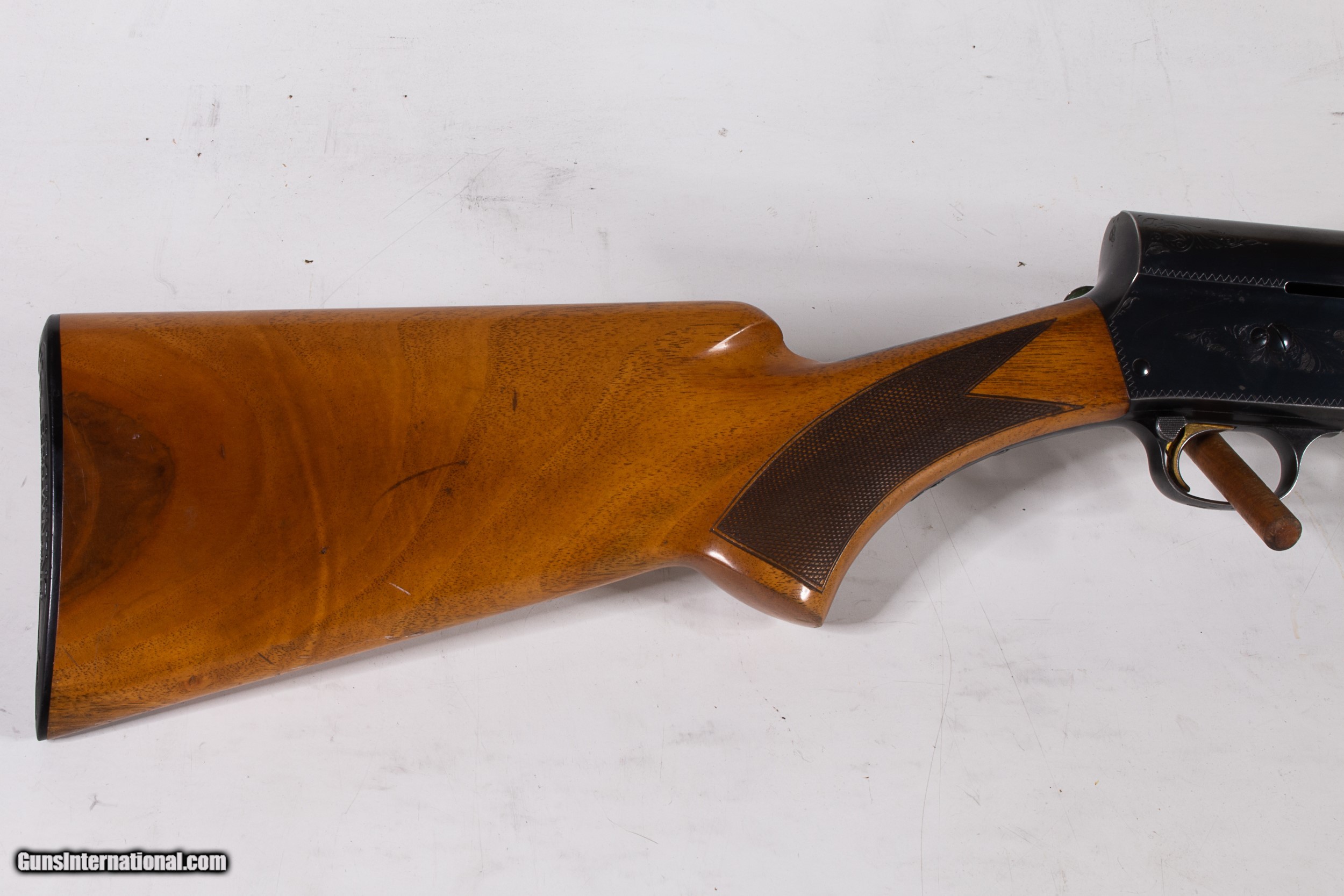 Description: MADE IN BELGIUM IN 1967. FIRST YEAR WITH A VERY LOW SERIAL OF 866. TEST FIRED. BARREL IS 28'' WITH A VENT RIB AND CHOKED FULL. 90% AND ALL FACTORY. PLEASE ADD $40 FOR SHIPPING. SOLD Curio/Relic: Yes Manufacturer: BROWNING Model: AUTO 5 Condition: USED Metal Condition: USED Wood Condition: USED Bore Condition: GOOD Action: SEMI Triggers: SINGLE/GOLD Stock Comb: 1 1/2 '' Stock Heel: 2 1/2'' LOP: 14 1/4'' Extras: NONE |