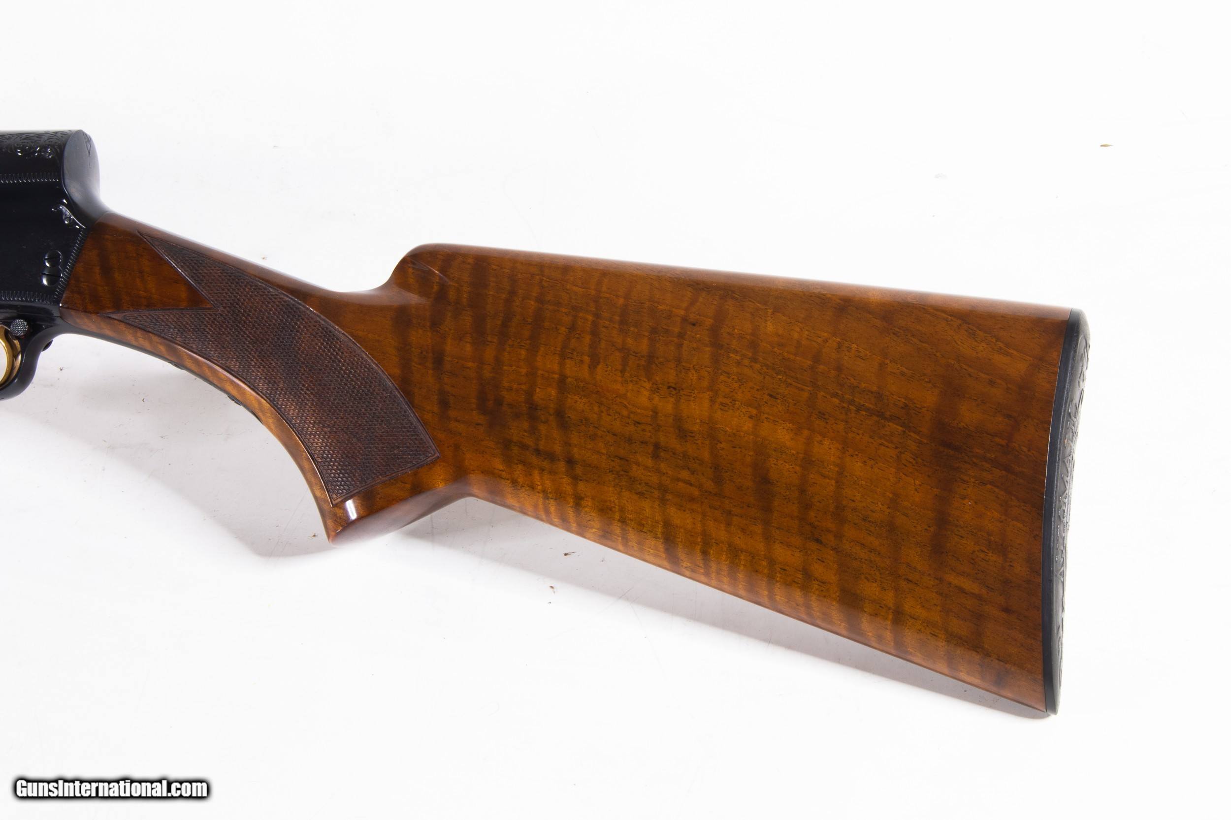 Description: MADE IN BELGIUM IN 1971. BARREL IS 26'' WITH A VENT RIB AND CHOKED MOD. FULL RESTORATION. PLEASE ADD $40 FOR SHIPPING. SOLD Shotgun Gauge: 20 Gauge Manufacturer: BROWNING Model: AUTO 5 Condition: EXCELLENT Metal Condition: EXCELLENT Wood Condition: EXCELLENT Bore Condition: EXCELLENT Action: SEMI Triggers: SINGLE/GOLD Stock Comb: 1 3/4'' Stock Heel: 2 1/2'' LOP: 14 1/4'' Weight: 6 LB 10 OZ Extras: NONE |