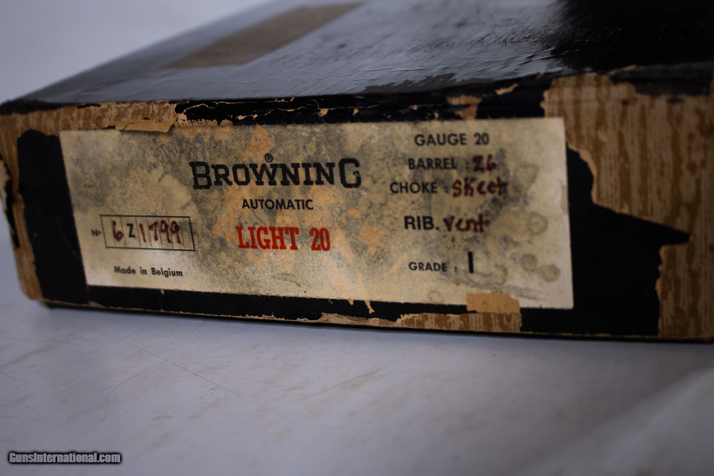 Description: MADE IN BELGIUM IN 1966. BARREL IS 26'' WITH A VENT RIB AND CHOKED SKEET. 100% CONDITION. PLEASE ADD $40 FOR SHIPPING. SOLD Curio/Relic: Yes Manufacturer: BROWNING Condition: EXCELLENT Metal Condition: EXCELLENT Wood Condition: EXCELLENT Bore Condition: EXCELLENT Action: SEMI Stock Comb: 1 1/2'' Stock Heel: 2 1/2'' LOP: 14 1/4'' Extras: NONE |