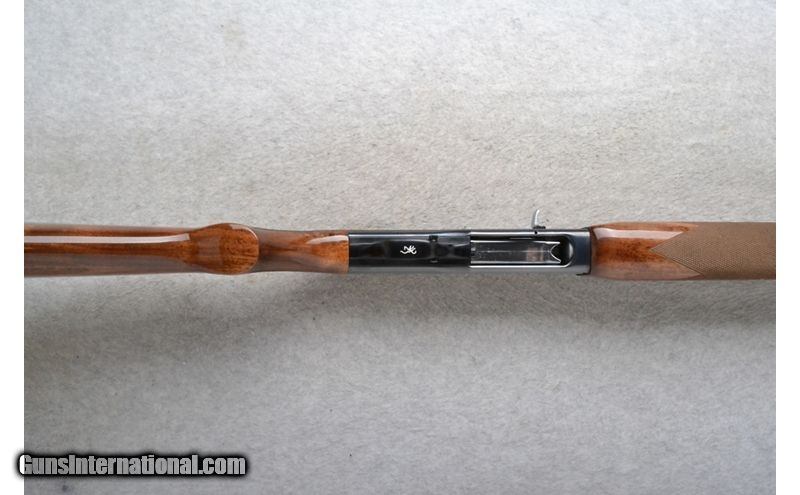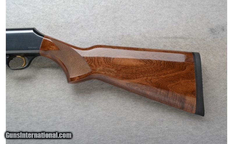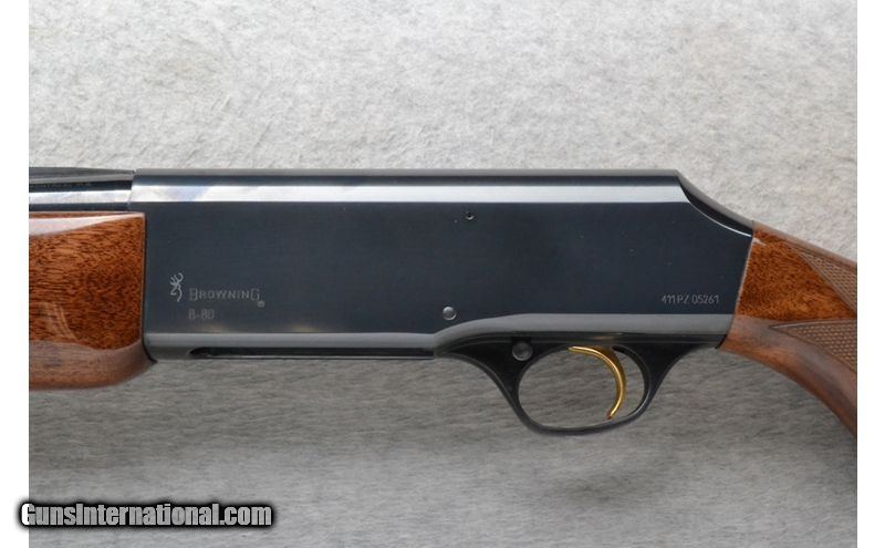 Description: This Browning Model B-80 is a right hand semi-auto shotgun in 12 Ga. It has a 29.5 inch barrel with a ventilated rib. A metal front bead sight. With a 3 inch chamber it has a fixed Full choke. The butt stock is a checkered grip walnut pistol grip. The forearm is a checkered grip walnut with finger grooves. Made in Portugal. 12 Gauge SOLD Chambers: 3 inch. Metal Condition: Excellent. Wood Condition: Excellent with a couple of minor handling marks. Bore Condition: "Clean, bright and shiny. Barrels: 29.5 inch barrel with a ventilated rib. Stock Dimensions: LOP 14 1/8 inches. Fore End: Checkered grip walnut with finger grooves. Butt Pad: Browning black rubber pad. Weight: 7 lb. 12 oz. Sights: Metal front bead. Chokes: Fixed Full. Item Location: Richfield, WI |