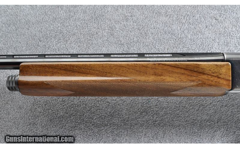 Description: This Browning Model 2000 was manufactured in 1979. It is a gas operated shotgun with extra 2 3/4" chambered barrel. Also, features a left side loading port. Browning manufactured in Belgium. 20 Gauge SOLD Chambers: 3" & 2 3/4 Metal Condition: Blue wear at the carry points and small scratches on the receiver otherwise good condition Wood Condition: Few small marks only Bore Condition: Bright Barrels: 28" vented rib Stock Dimensions: 14 1/4" LOP Fore End: Checkered with grasping grooves Butt Pad: Browning composite with logo Weight: 7 lbs. Sights: Metallic bead & Fiber optic pipe Chokes: Fixed chokes Full & Improved Modified Item Location: Grand Junction, CO |