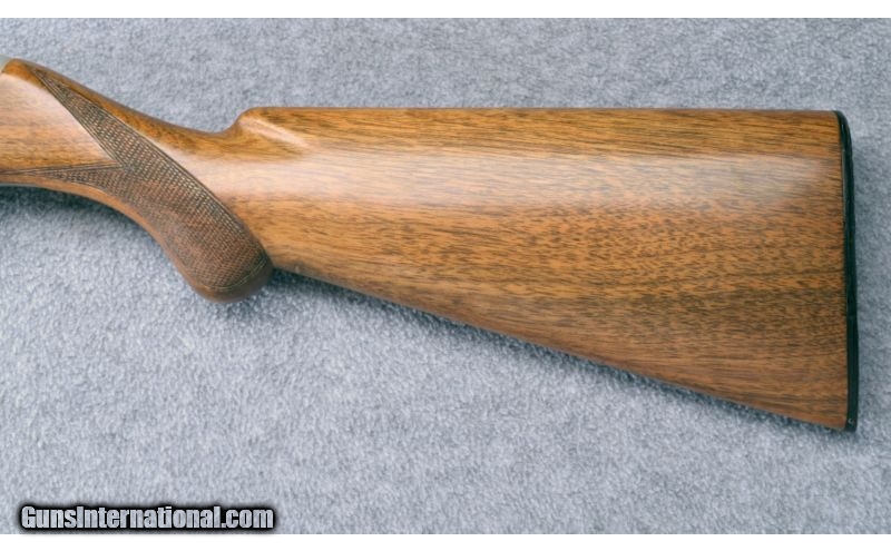 Description: Excellent overall condition showing only light use marks. Butt plate has a few marks but remains solid. No box. SOLD Manufacturer: S/N A35XXX Caliber Info: 12 GA Chambers: 2 3/4 Metal Condition: Excellent Wood Condition: Excellent Bore Condition: Excellent Barrels: 27" Raised Rib Triggers: Factory Stock: Checkered Walnut Round Knob Stock Dimensions: 14 1/4" LOP Fore End: Checkered Walnut Butt Pad: Black Browning Butt Plate Weight: 7 LB Sights: Single Front Bead Chokes: Modified - Fixed Item Location: Wheeling, WV |