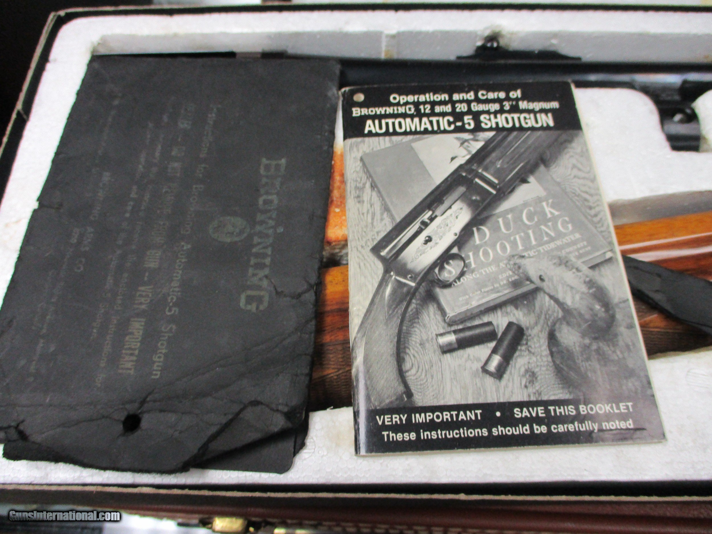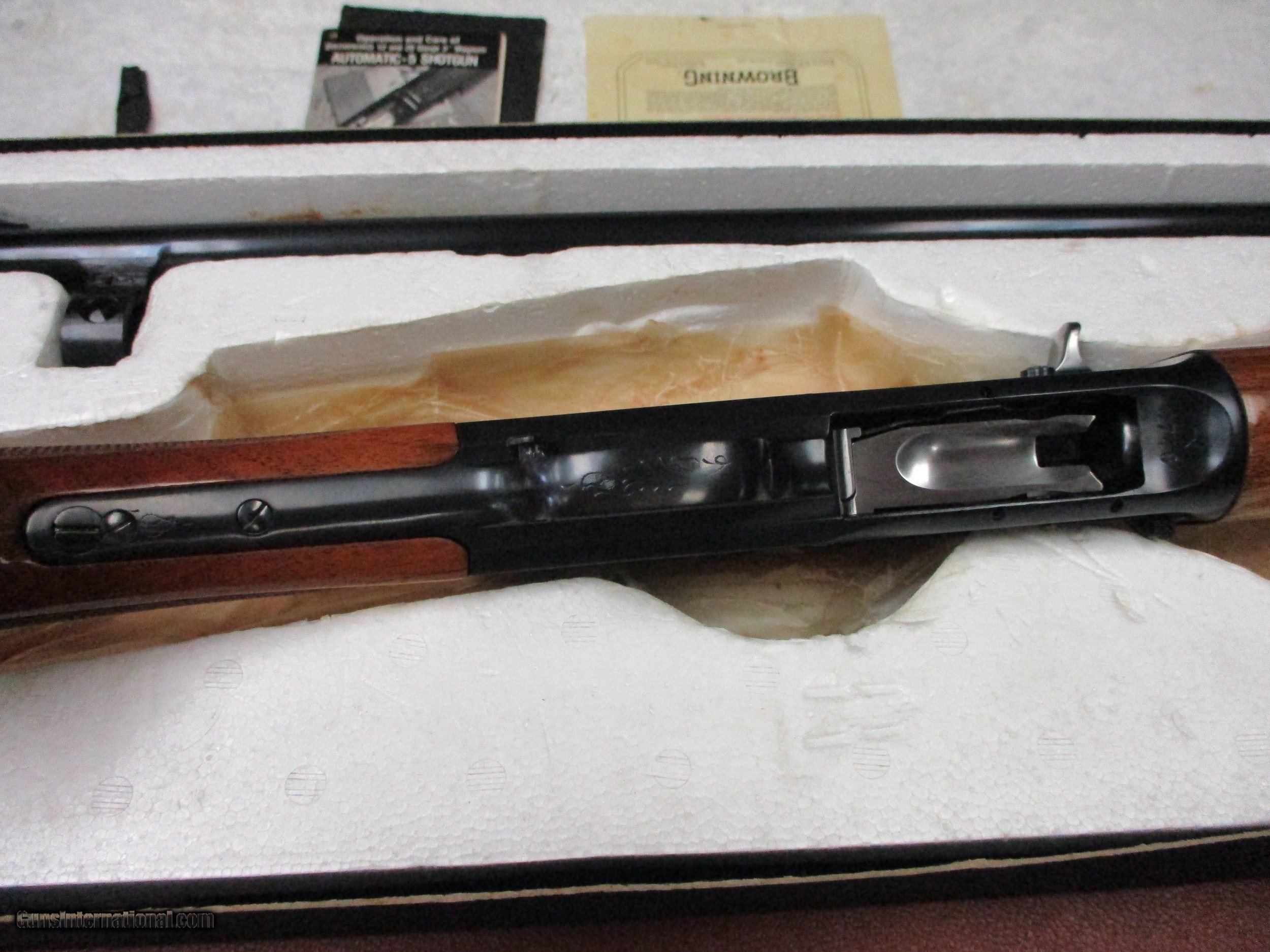 Description: Folks, In this listing we are offering a Browning Belgium A5 Magnum 20 Gauge with the Big Game Barrel , New in the box from 1970 and very rare! . This shotgun features a 3 inch chamber, 24 inch barrel with front and rear iron sights. The shotgun is in unifred condition with the original owners manuel and comes in the original box. The shotgun is in 100% condition, perfect finish, perfect wood and mechincally flawless. Please feel free to ask any questions. We do charge 3% for credit cards. No Cailfornia Sales. SOLD Shotgun Gauge: 20 Gauge Manufacturer: Browning Model: A5 Serial Number: 7X8748 Barrel Length: 24 inch Chambers: 3 inch Condition: New Old Stock Metal Condition: 100% Wood Condition: 100% Bore Condition: 100% Barrel Type: Slug Barrel Action: Semi-Auto Rib: Plain Manufacture Date: 1970 Chokes: Slug Barrel |