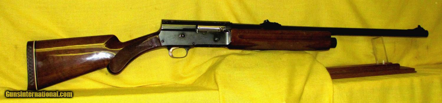 Description: BROWNING (BELGIUM) model AUTO-5 MAGNUM 12 in 12 GA. CAL., with 24" barrel. Color BLUE. BROWNING BELGIUM MAGNUM-12 BUCK SPECIAL AUTO-5, TAKES 3” MAGNUM SHELLS, ROUND SLUG BARREL WITH MIRROR BORE AND RIFLE SIGHTS, SLIGHT HANDLING MARKS ON FORE ARM WOOD 98% WOOD, 98%+ FACTORY ORIGINAL BLUE, OUT STANDING CONDITION. OUR NEW STOCK # D31125 Condition 98%+. Serial number 43895PP151. SOLD |