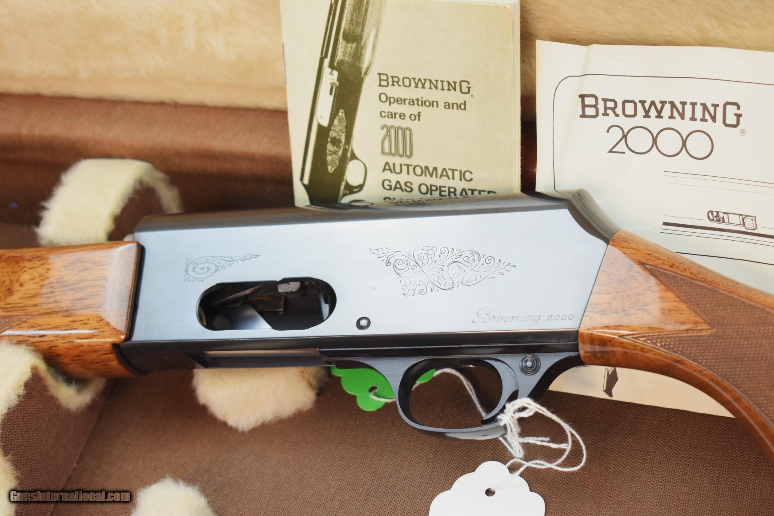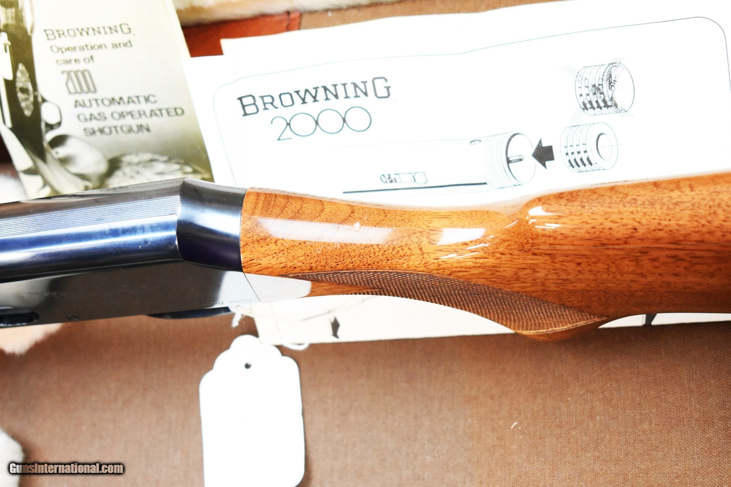 Description: This is a very fine condition Belgium made Browning 2000 in 20 ga in a nice Browning fitted hard case. This shotgun comes with it's original owners manual and instruction sheet. It is in mint condition with the exception of a small ding on the end of the rib. and two small ding on the stock at the top of the grip. This is truly amazing since this has sugh a high luster finish. This shotgun is truly a rare find. This was manufactured the last year of production in 1980 Has a vented ribbed barrel with a mid and high vis end bead. Maine Residents add 5.5% sales Tax Price Reflects a cash discount of 3.5% ($41.96) for this item Please call for any questions. Please utilize the "Buy Now" button for final purchase. SOLD Shotgun Gauge: 20 Gauge Manufacturer: Browning Model: 2000 Serial Number: 631PM03677 Condition: Excellent Metal Condition: Excellent Wood Condition: Excellent Bore Condition: Excellent Action: Semi Automatic Rib: Yes Vented Finish: Blued high gloss Manufacture Date: 1980 Last year of pr Chokes: Fixed measures between improved and modified Engraving: Yes Item Location: Buxton Maine |