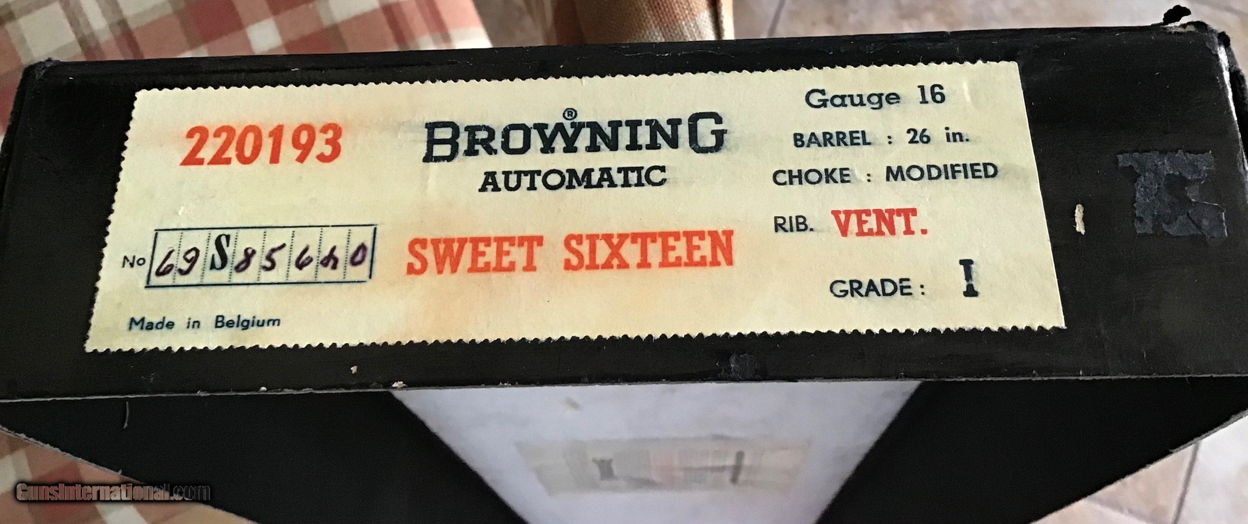 BROWNING BELGIUM “SWEET-16” 26” MOD. VENT RIB, RARE BARREL, MFG. 1969, NEW UNFIRED, 100% COND. IN THE BOX