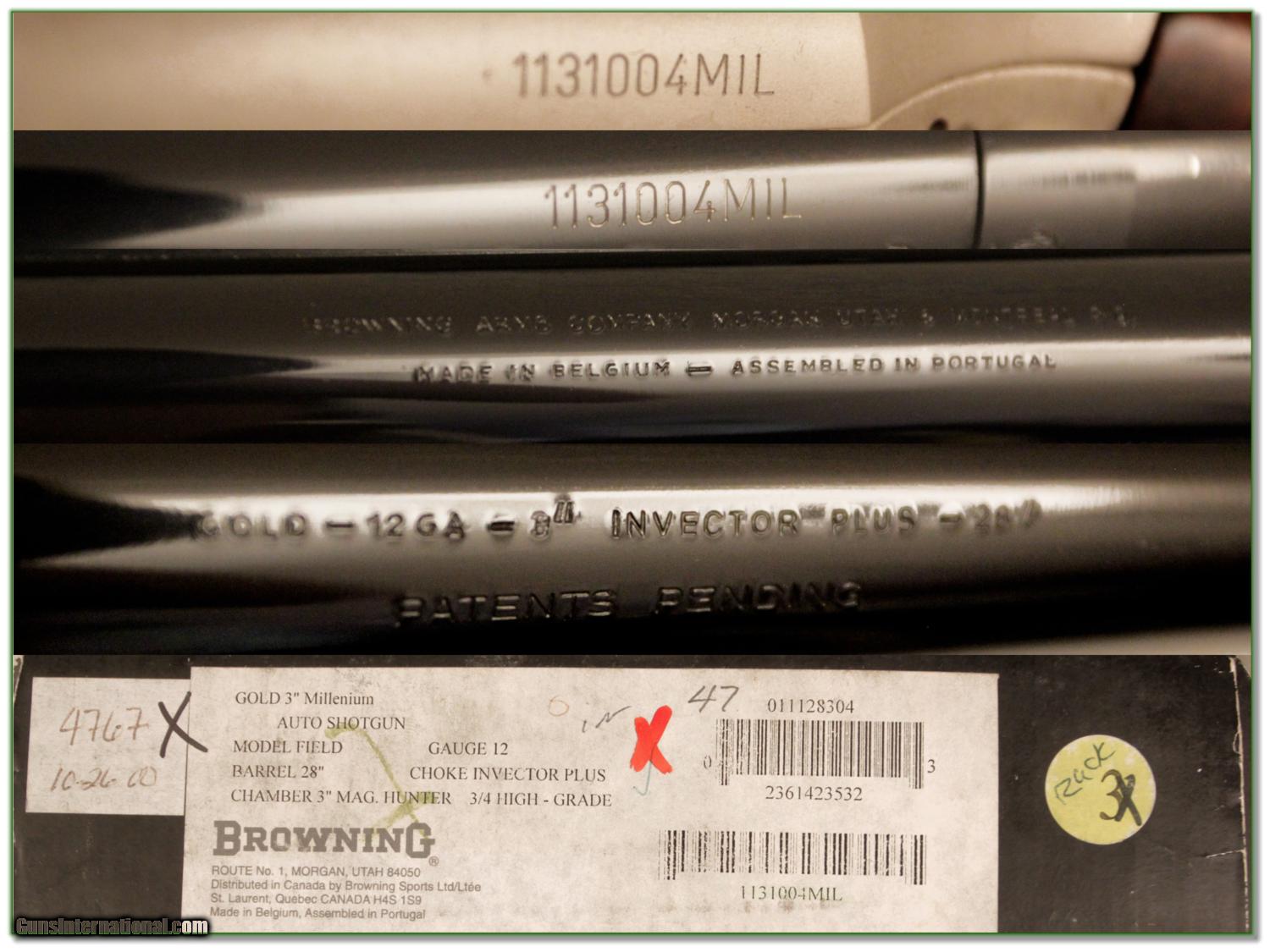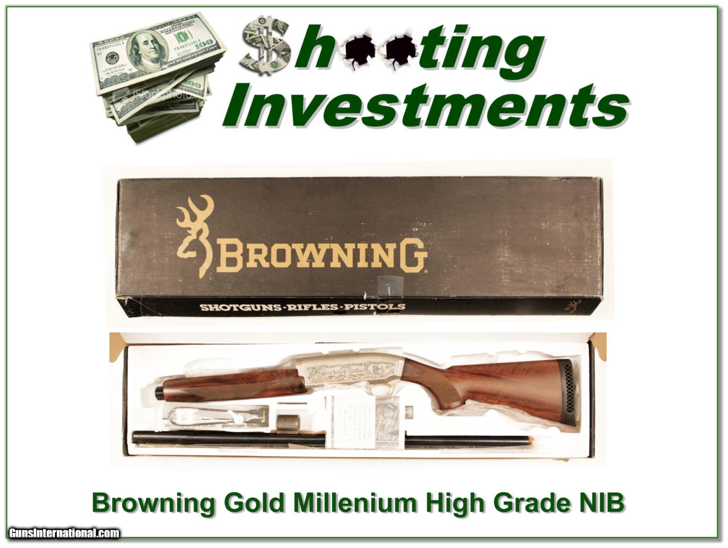 Description: Collectors, this is a VERY nice Browning Gold Millennium edition 120 Gauge. Only 1000 were made! This is #4. These were made in Belgium. This is a real Shooting Investment and will make a nice addition to your collection. I am selling this one on consignment and as such lay-a-way can’t be used. It does of course have the standard 3 day inspection. Shipping and insurance is $35. Please email me with any questions or larger pictures. (I now consign quality firearms only 10%! Let me know if you have any you would like to sell!) [15-0581] Terms & Conditions Payment: Payment is by Money Order, Cashiers Check or Personal Check. I can now also accept MasterCard and Visa with a 3% convenience fee. PayPal can be used for some items but never firearms. Please let us know if you would like to pay via PayPal. Shipping: The shipping charge will be listed in each description. It is $35 for most guns. Some heavy guns or those insured for over $2000 may be higher. Shipments to Alaska and Hawaii are higher because air shipment is required. Most firearms are shipped within 5 days of receipt of payment. We prefer shipping at the beginning of the week to avoid firearms in transit over weekends. We package all shipments carefully and insure them for the full purchase price, rounded up to the next $100. In the unlikely event that damage occurs, it is important that you save all packaging material for the claims process. Optics are shipped Priority Mail and most other non-firearm shipments are shipped First Class. Returns: Our return policy is simple. If for any reason you are not pleased with your purchase, you may return your item for a refund. The only exception is ammunition, it cannot be returned. It is important to us that you are happy. Guns cannot be fired or dissembled before returning them and must be returned in the same condition as received. Notification of a return must occur with-in 3 days of receipt at your dealer. Shipping, convenience and dealer fees are not refundable and are the responsibility of the buyer. Lay-a-way: If needed, we offer a 60 day lay-a-way option on most firearms. It is 1/3 now, 1/3 in 30 days and 1/3 in 60 days. Lay-a-way firearm sales are final. Consigning your firearms with Shooting Investments: We will help you get top dollar for your firearms. While most local guns shops charge 20% or more, our fee is only 10% with a minimum of $50. At your local gun shop it might take months to sell. Selling on-line provides instant access to thousands of interested buyers. You won’t find any other on-line dealer willing to sell your firearms for only 10% or listing every gun on 4 separate s. Selling through an House typically costs 15% and you have to wait several months to sell and longer to receive funds. If properly priced, we will sell your firearms in a week or two. Send us an email or give us a call and we’ll explain how easy it is for you to get top dollar. Trading: We collect guns and usually just trade for guns we want to add to our collections. We often sell guns for others wanting to purchase one of ours. We find this the most fair to both of us. Our Commission is only 10% and we hold the gun you want until yours sells. Please contact us if you want to sell one of yours to buy one of ours. Help for California Buyers: We are happy to ship to California. It is the buyer’s responsibility to make sure any item you buy is legal in your state. We are also happy to help with your purchase of a firearm from someone other than us. If you see a gun you would like to buy but the seller can’t or won’t ship to California we can help. You buy the gun and have it shipped to us. We’ll then ship it to your California dealer. The cost for this service is only $35 + shipping. Let me know if we can help! SOLD |