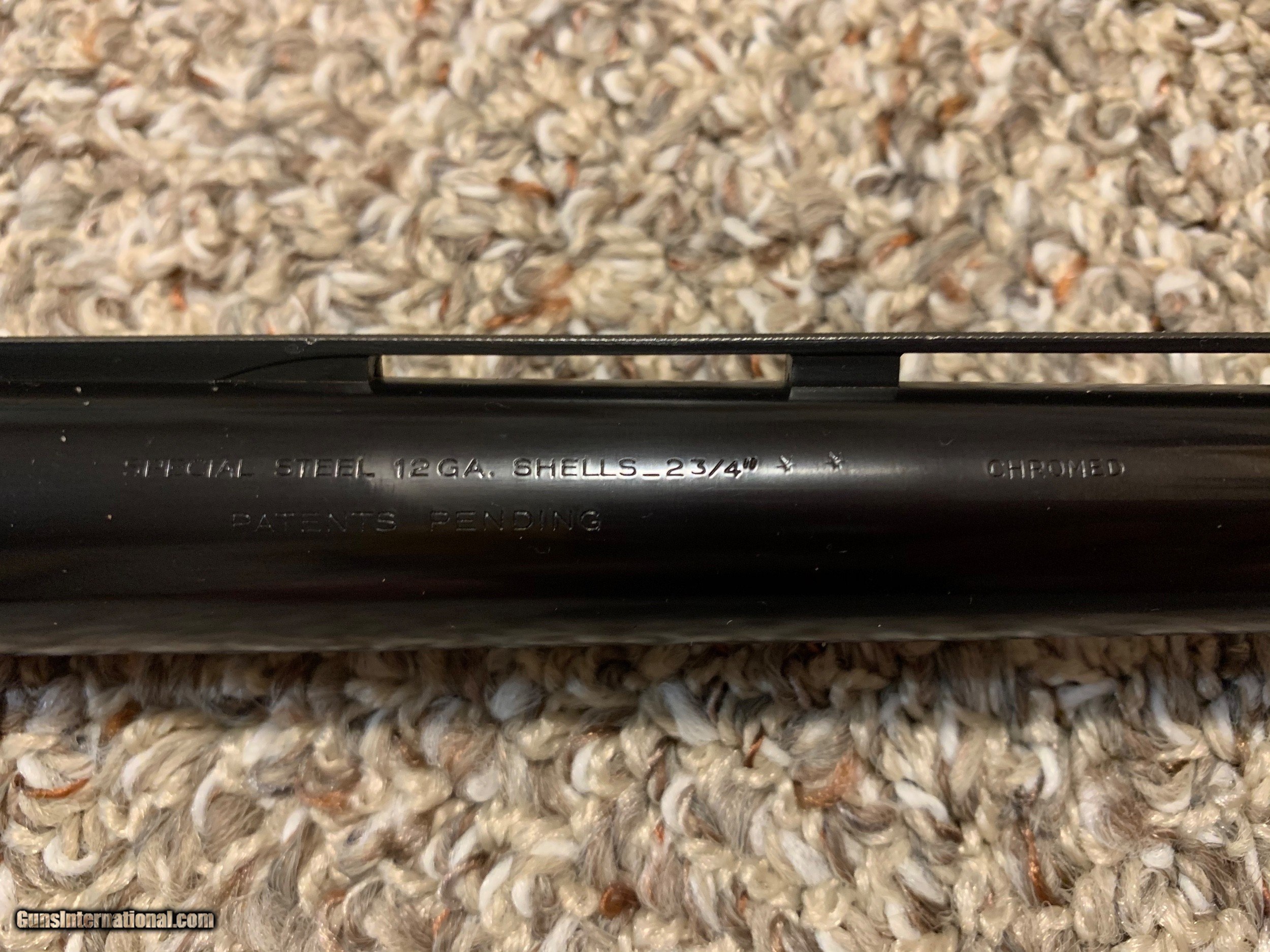 Description: For sale is my trusty Browning 2000 semi-automatic 12 gauge. It comes with 2 barrels: a 28" Modified-choke 2 3/4" chamber vent rib barrel and a 32" Full-choke 3" chamber vent rib barrel. Also included is a vintage Browning automatic shotgun 2 barrel case (~$300 value), original gun manual paperwork and wood magazine plug. Overall gun is used but is in good condition and has never failed to function correctly for me. It is a proven winner has taken a fair number of ducks, geese, and grouse. Receiver has freckling that can be seen in pictures. Overall bluing is 95%+. Wood has some handling marks as well. The B-2000 is unique in the semiautomatic shotgun world in that the magazine can be unloaded without racking each cartridge through the chamber. This is a great shotgun as any Model 2000 owner will tell you. Don't miss this nice opportunity. SOLD |