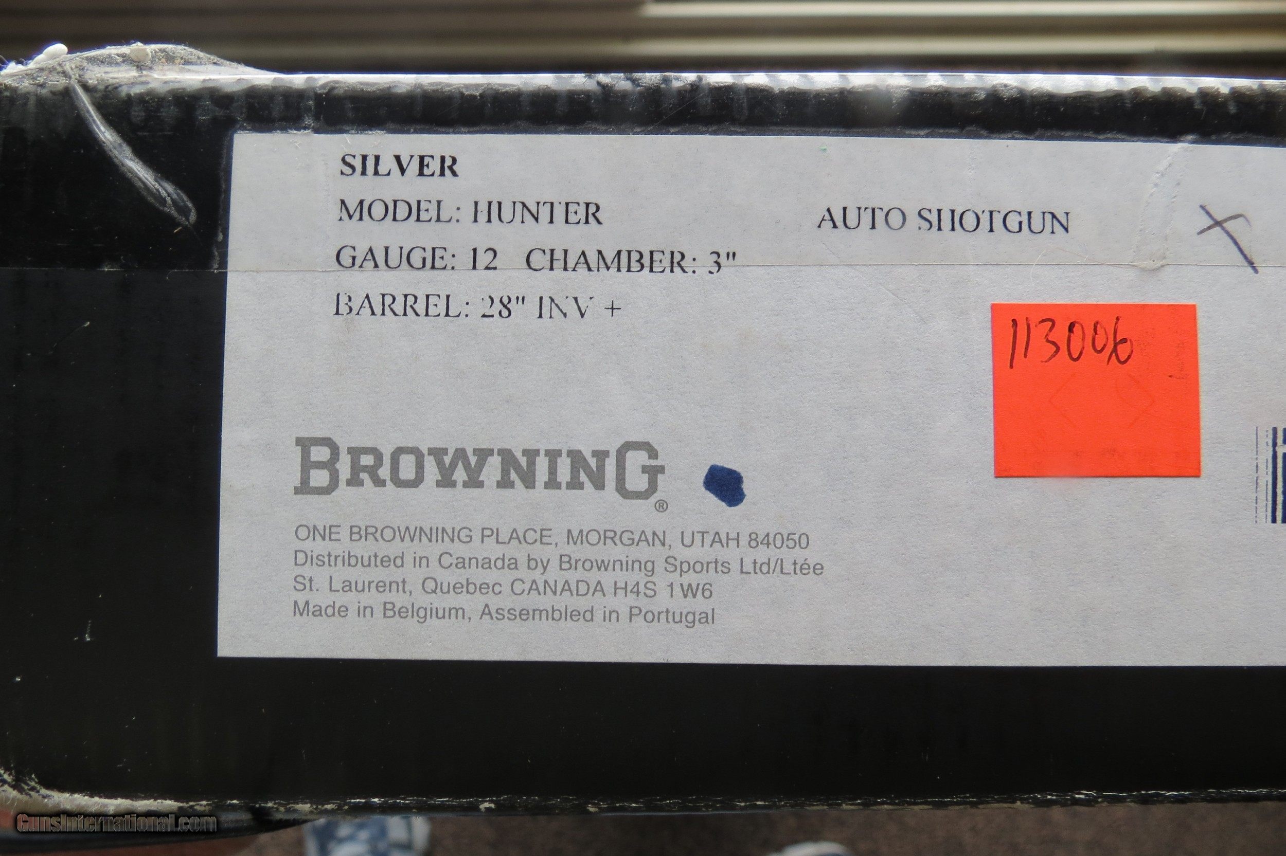 Description: Browning Silver Hunter in 12 gauge, 3" chamber, 28" vent ribbed barrel, includes three Invector-Plus choke tubes & wrench, silver finished aluminum alloy receiver, semi-humpback design, checkered satin finished stock and forearm with Infles recoil pad. Shotgun shows to be in very good condition. Sling swivel stud added to stock w/cap having sling studs also. Comes with box. Shipping/Insurance $40 SOLD Shotgun Gauge: 12 Gauge Manufacturer: Browning Model: Silver Hunter Barrel Length: 28 Condition: Very Good w/Box |