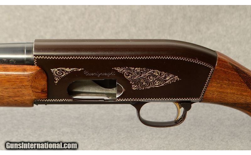 Description: Browning Twentyweight Double Auto is similar to Twelvette, but 3/4 pound lighter, jet black finish with engraving accented with gold foil, "Twentyweight" stamped above loading port. Mfg. 1957. Made in Belgium. No Box. C&R Eligible. 12 Gauge SOLD Chambers: 2 3/4 Metal Condition: Very Good Wood Condition: Very Good Bore Condition: Excellent, Bright and Shiny Barrels: 26 1/2 Triggers: Factory Stock Dimensions: 13 7/8" Length of Pull Fore End: Checkered Walnut Butt Pad: Pachmayr White Line recoil pad Weight: 6 lb. 8 oz. Sights: Ventilated rib with white Brady bead front sight Chokes: Improved Cylinder Item Location: Garner, NC |