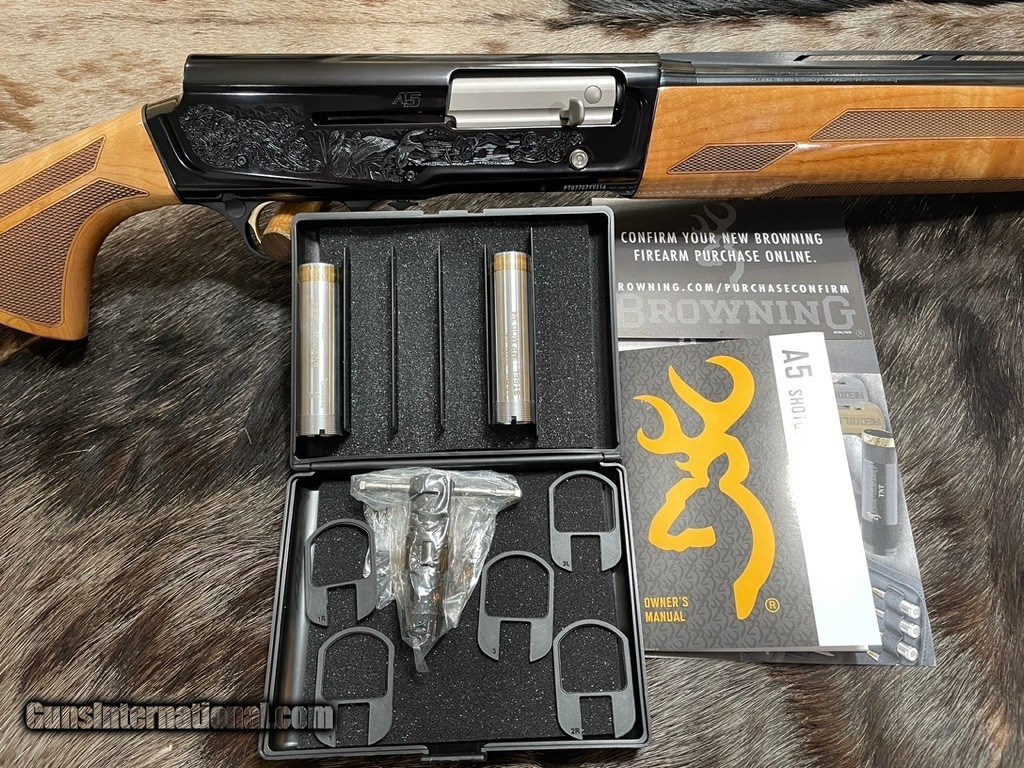 Description: NEW BROWNING A5 HIGH GRADE HUNTER MAPLE DELUXE ENGRAVED SEMI-AUTO 12GA SHOTGUN DESIGNED IN BELGIUM - LAYAWAY AVAILABLE DON'T BE FOOLED BY OTHER SELLERS USING STOCK, GENERIC PHOTOS. THE SHOTGUN SHOWN IS THE SHOTGUN YOU WILL RECEIVE! FEATURES OF THIS GREAT NEW SHOTGUN INCLUDE: