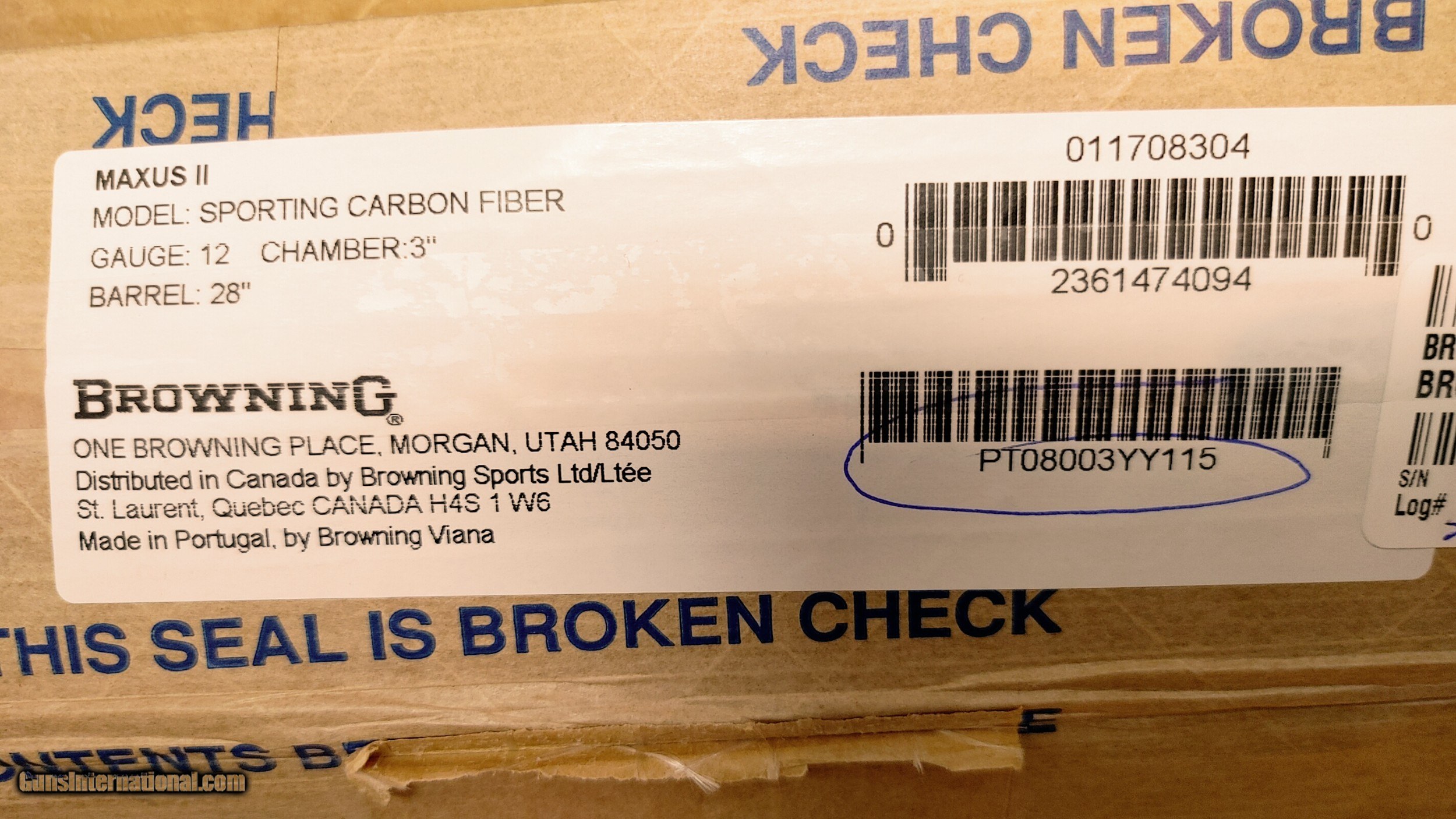 Description: New Browning MAXUS II SPORTING CF 12/28 3 CARBON FIBER 5 INV+ CHOKES (MODEL:MAXUS II SPORTING CF); (ACTION:SEMI-AUTO); (BARREL LENGTH:28); (CAPACITY:4); (OVERALLLENGTH:49.13); (SIGHTS:HIVIZ TRICOMP FRONT SIGHT); (STOCKFRAMEGRIPS:SYNTHETIC STOCK HYDROGRAPHIC CARBON FIBER DIP); (WEIGHT:7 LBS. 2 OZ.); (CHAMBER:3); (DRILL-TAPPED:FALSE); (SHOTGUN:SHOTGUN) Buyer pays shipping Millers Gun Center Located in New Castle, Delaware "Home of TAX-Free shopping" No Credit Card Fees Send Gun international inquiry and then call 302-328-9747 to complete your purchase SOLD Serial Number: PT08003YY115 |