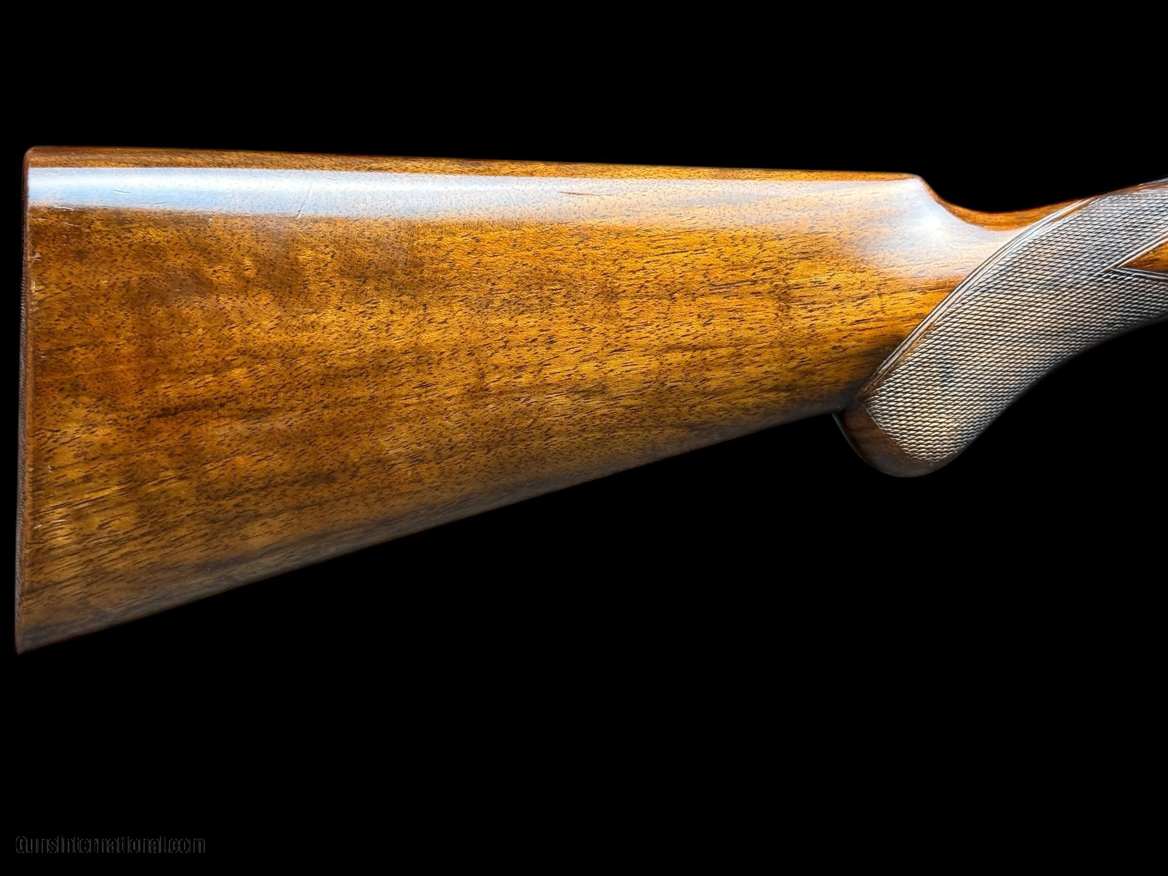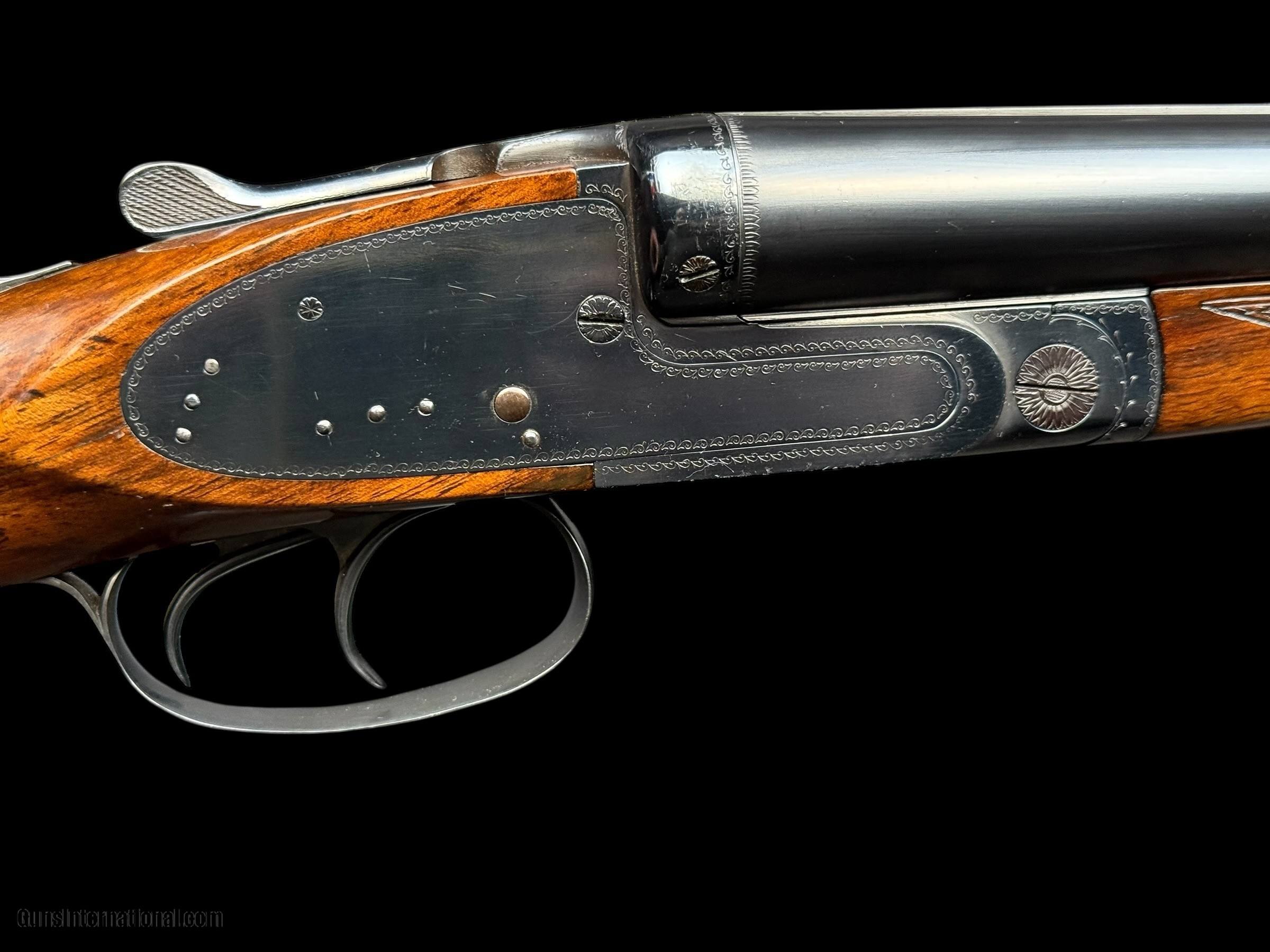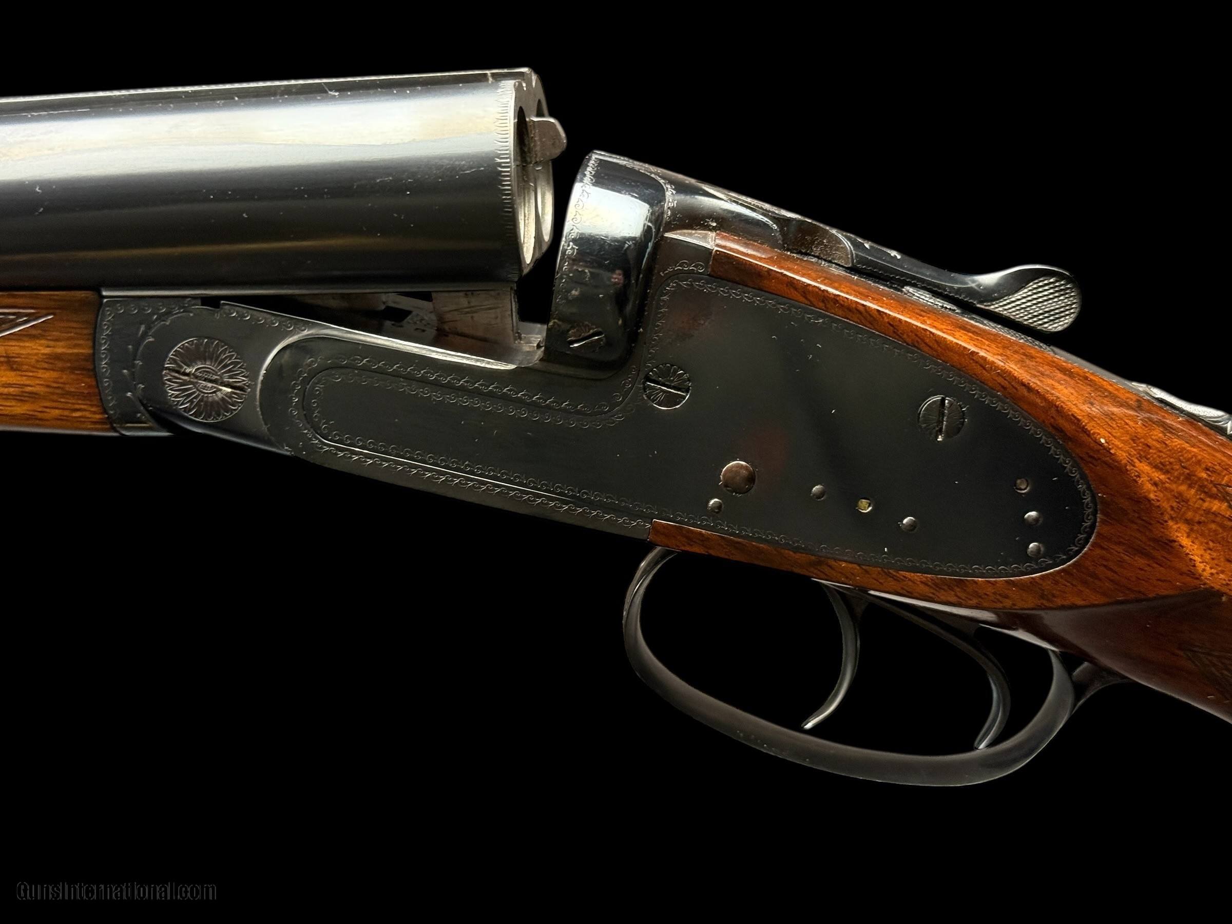 Description: FN (BROWNING) - HERSTAL, BELGIUM - SIDE BY SIDE SIDELOCK GAME GUN - "FN" INSIGNIA ON TOP LEVER. - 12GA - 2 3/4" - 30" BARRELS - DEMI-BLOC - HIDDEN THIRD FASTENER - CHOKES: .016 / .028 - DOUBLE TRIGGERS - NON-AUTO SAFETY - EJECTORS - PRINCE OF WALES WALNUT STOCK AND SPLINTER FOREND - CHECKERED BUTT - DIMS: LOP; 14 1/4" | DAC: 1 1/2" | DAH: 2 1/4" | CAST: SLIGHT CAST-OFF - WEIGHT: 7LBS 4OZ - LOW SERIAL NUMBER: 683 CONDITION: GUN IS IN EXCELLENT OVERALL CONDITION AS EUROPEAN QUALITY RESTORED. ACTION TIGHT AND ON-FACE. TRIGGERS CRISP. BORES CLEAR. EJECTORS STRONG. BLUING AND WOOD FINISHES EXCELLENT. GENTLEMEN, THIS IS A RARELY SEEN SIDELOCK SXS GAME GUN FROM FN BELGIUM. A BLACK BEAUTY AND READY FOR YOUR NEXT TRIP AFIELD. MADE FOR THE EUROPEAN MARKETS. YOU WILL LIKE THIS GUN! FLAT $50 S/H/I - FFL REQUIRED - CARD FEE APPLIES - Shotgun Gauge: 12 Gauge Manufacturer: FN BROWNING Model: SIDELOCK GAME GUN Serial Number: 683 Barrel Length: 30 Chambers: 2.75 OR 70MM Ejectors: YES Condition: EXC Metal Condition: EXC Wood Condition: EXC Bore Condition: EXC Action: SLE Triggers: DOUBLE Price: $3,900.00 Contact Seller |