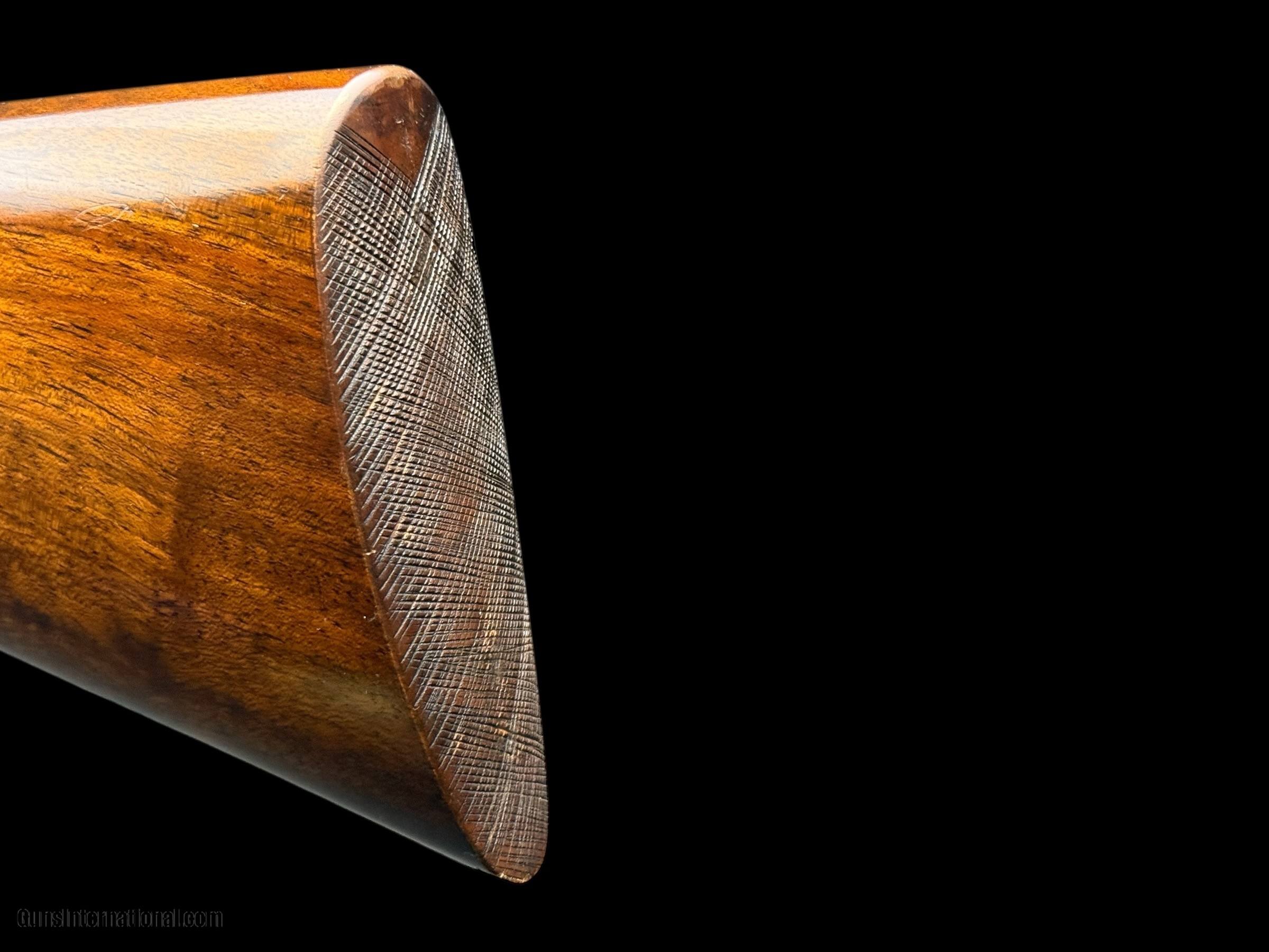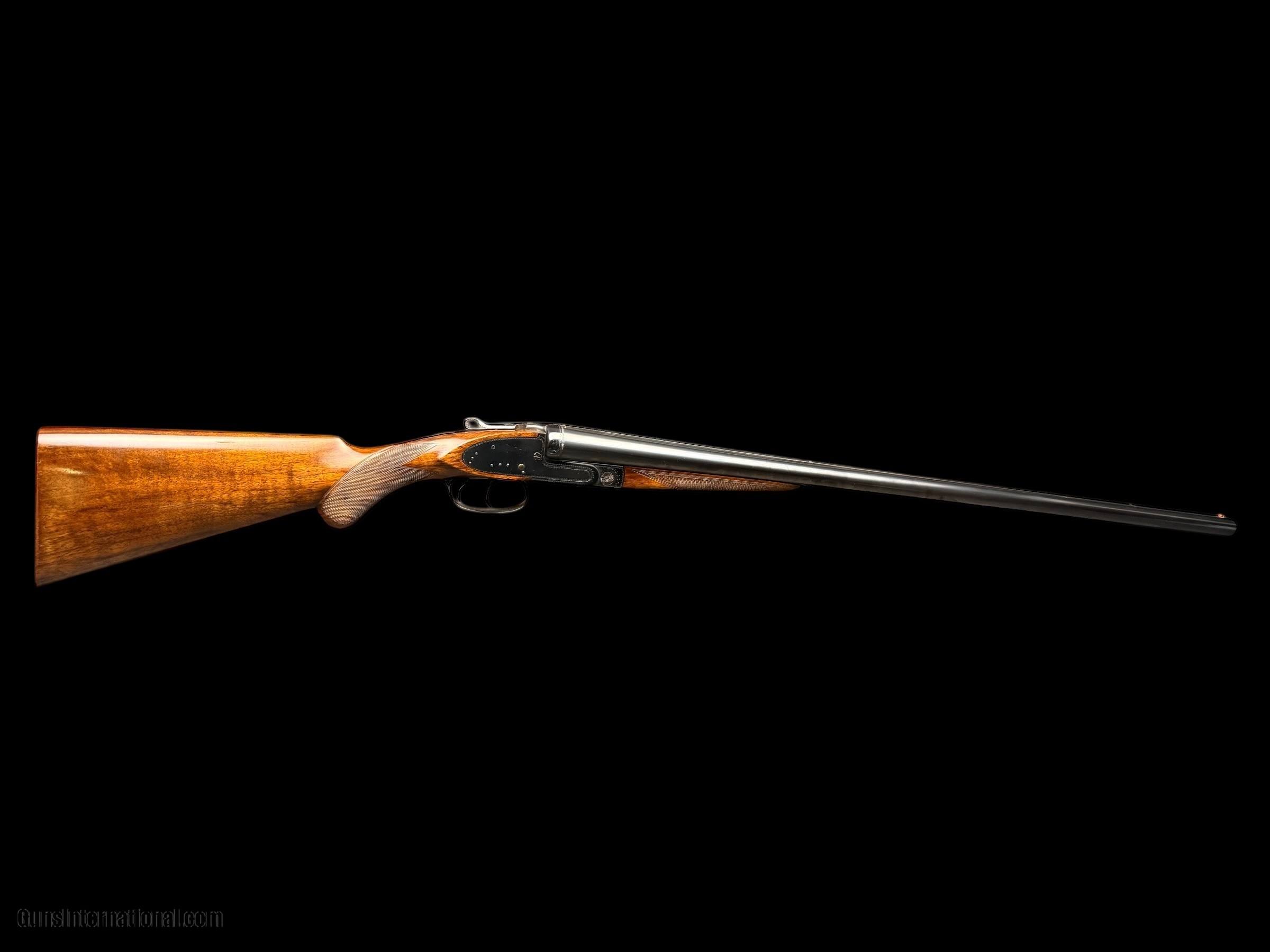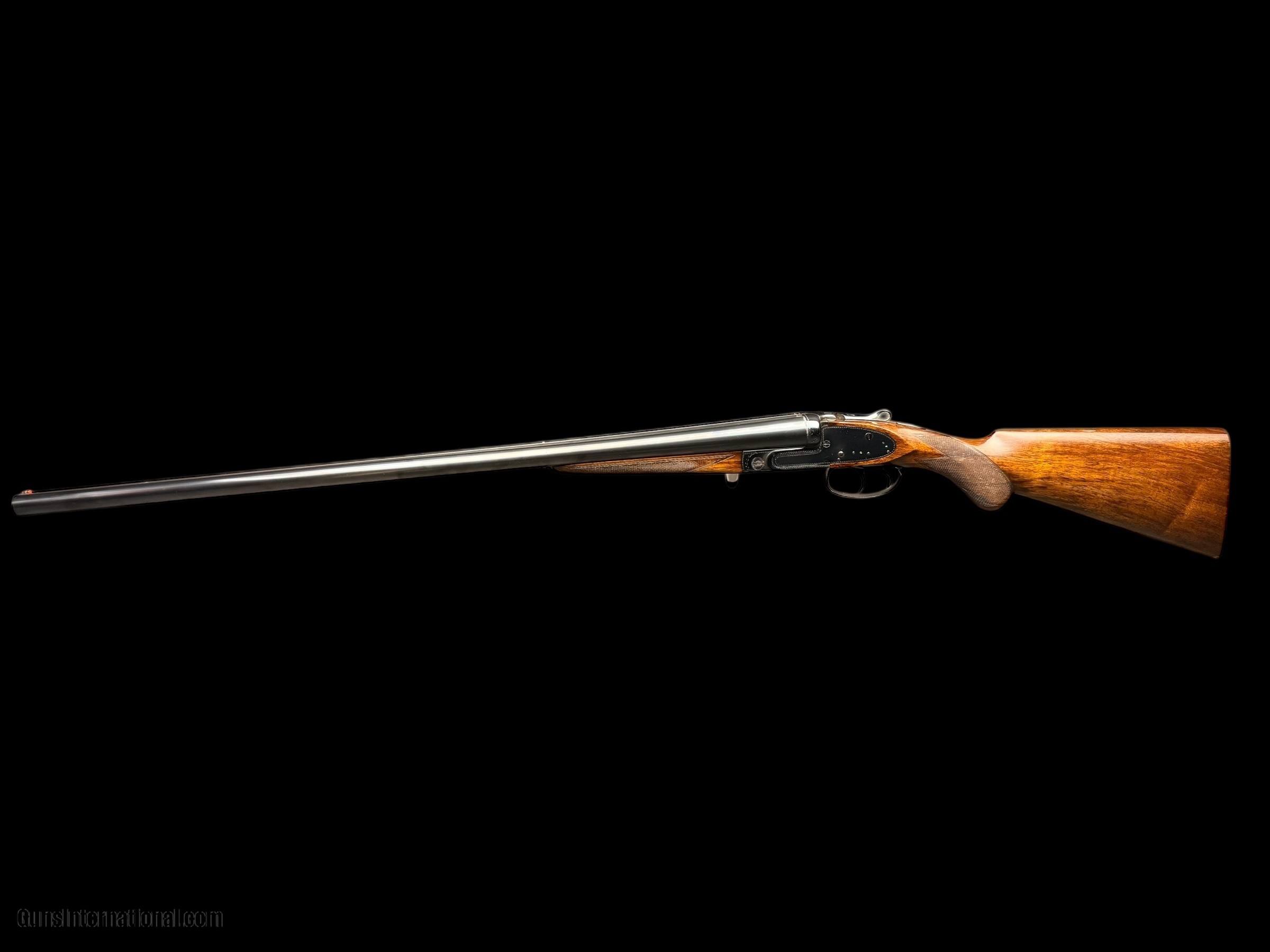 Description: FN (BROWNING) - HERSTAL, BELGIUM - SIDE BY SIDE SIDELOCK GAME GUN - "FN" INSIGNIA ON TOP LEVER. - 12GA - 2 3/4" - 30" BARRELS - DEMI-BLOC - HIDDEN THIRD FASTENER - CHOKES: .016 / .028 - DOUBLE TRIGGERS - NON-AUTO SAFETY - EJECTORS - PRINCE OF WALES WALNUT STOCK AND SPLINTER FOREND - CHECKERED BUTT - DIMS: LOP; 14 1/4" | DAC: 1 1/2" | DAH: 2 1/4" | CAST: SLIGHT CAST-OFF - WEIGHT: 7LBS 4OZ - LOW SERIAL NUMBER: 683 CONDITION: GUN IS IN EXCELLENT OVERALL CONDITION AS EUROPEAN QUALITY RESTORED. ACTION TIGHT AND ON-FACE. TRIGGERS CRISP. BORES CLEAR. EJECTORS STRONG. BLUING AND WOOD FINISHES EXCELLENT. GENTLEMEN, THIS IS A RARELY SEEN SIDELOCK SXS GAME GUN FROM FN BELGIUM. A BLACK BEAUTY AND READY FOR YOUR NEXT TRIP AFIELD. MADE FOR THE EUROPEAN MARKETS. YOU WILL LIKE THIS GUN! FLAT $50 S/H/I - FFL REQUIRED - CARD FEE APPLIES - Shotgun Gauge: 12 Gauge Manufacturer: FN BROWNING Model: SIDELOCK GAME GUN Serial Number: 683 Barrel Length: 30 Chambers: 2.75 OR 70MM Ejectors: YES Condition: EXC Metal Condition: EXC Wood Condition: EXC Bore Condition: EXC Action: SLE Triggers: DOUBLE Price: $3,900.00 Contact Seller |
